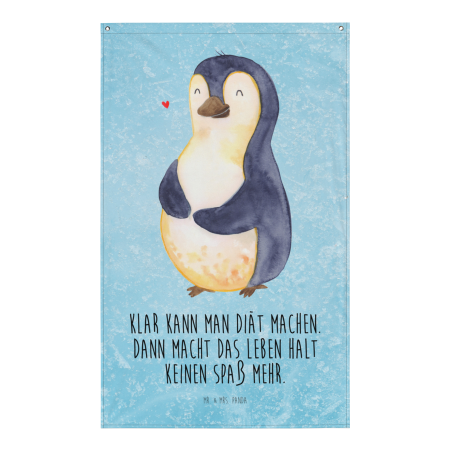 Wandteppich Pinguin Diät - mit Spruch - Eisblau