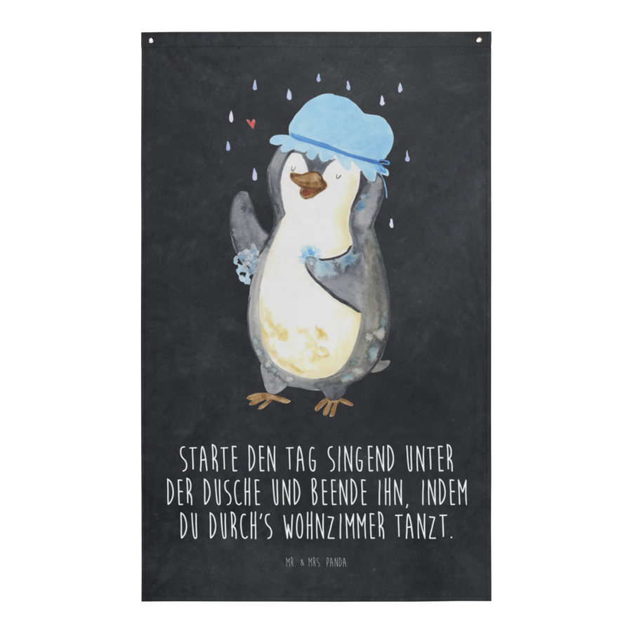 Wandteppich Pinguin duscht - mit Spruch - Kreidetafel