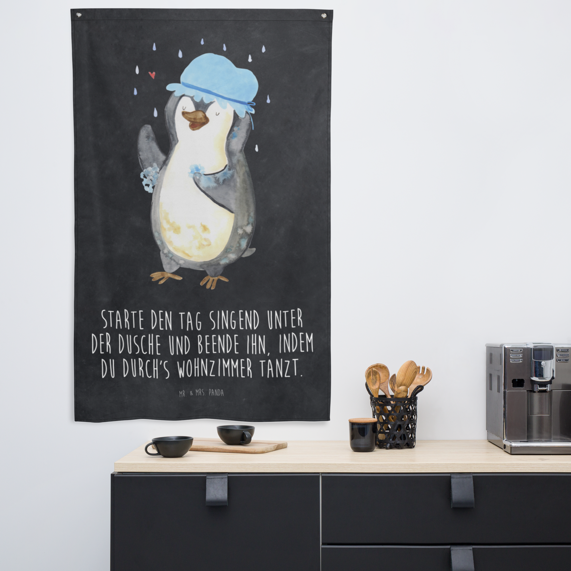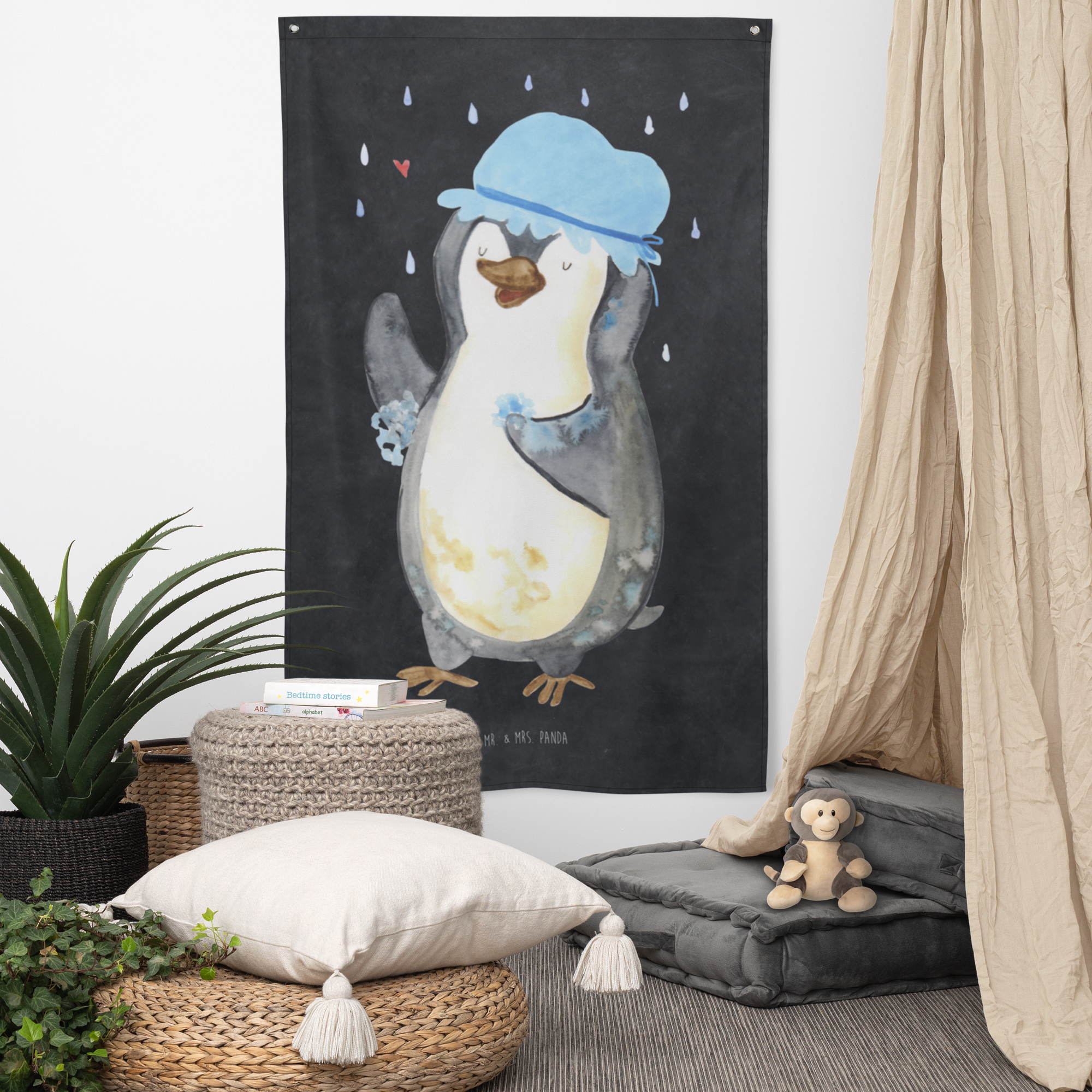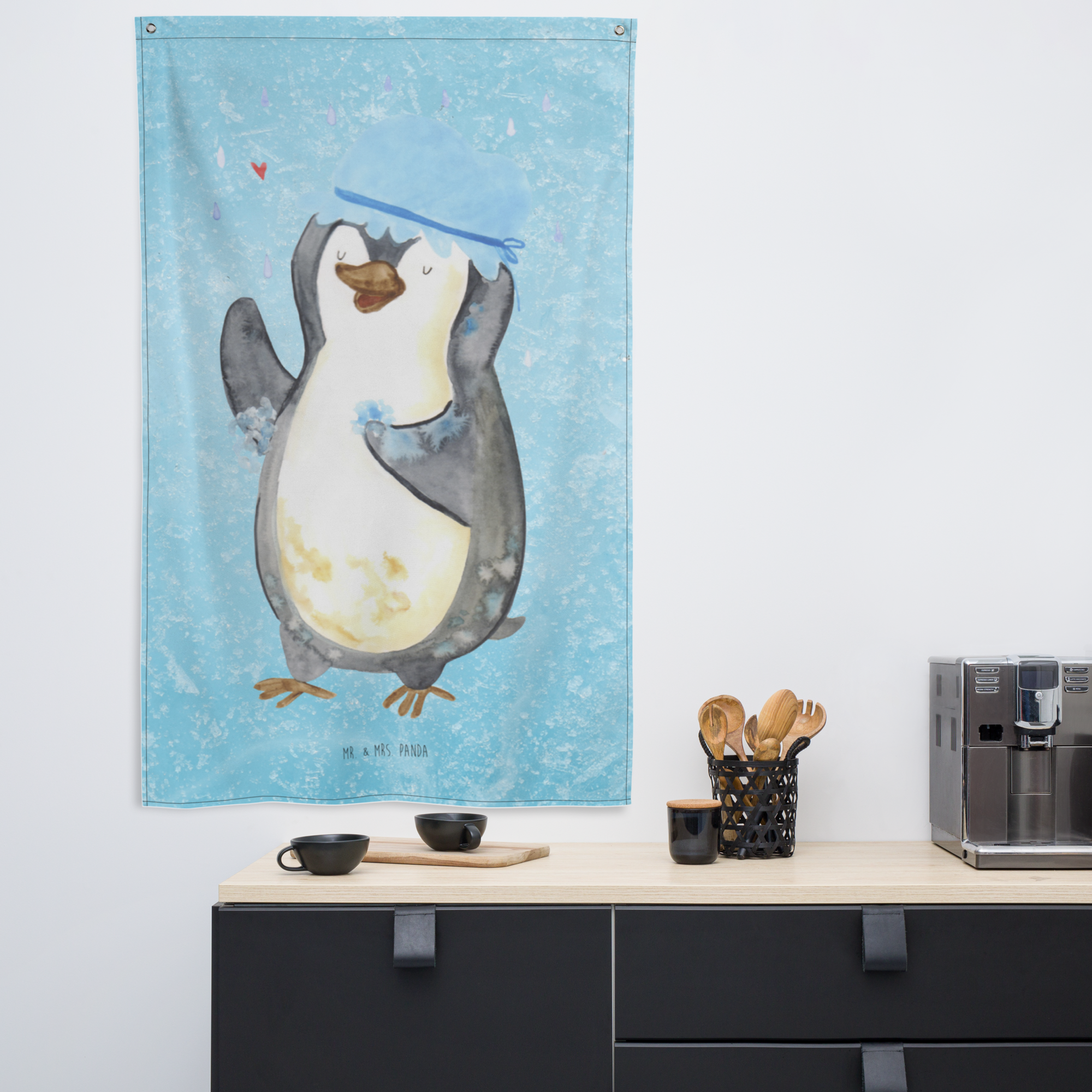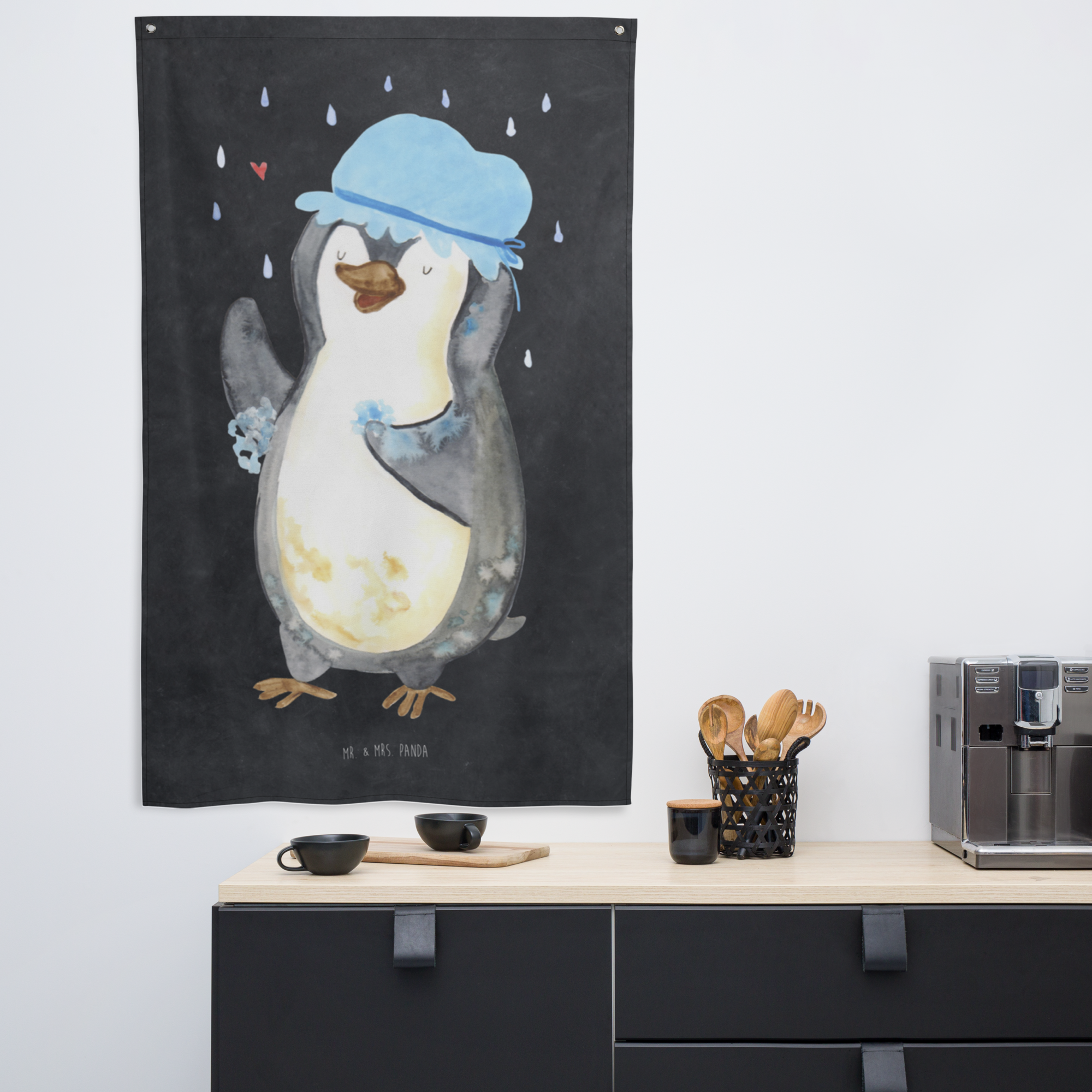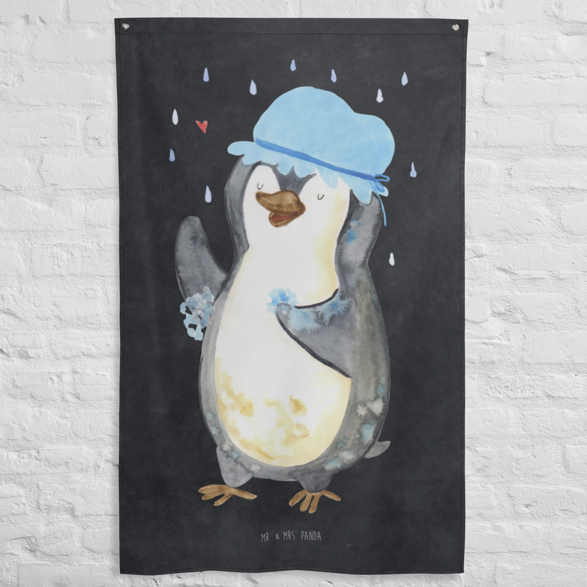 Unser zauberhaftes Motiv - Pinguin duscht - bringt nicht nur Kinderherzen zum Schmelzen. Der witzige Pinguin, der trotz schlechten Wetters fröhlich unter dem Regenschauer steht und eine Duschhaube trägt, ist ein absoluter Hingucker und verbreitet gute Laune in jedem Raum. Mr. & Mrs. Panda sind bekannt für ihre außergewöhnlichen und herzerwärmenden Designs. Lass dich von unserer Liebe zum Detail verzaubern.