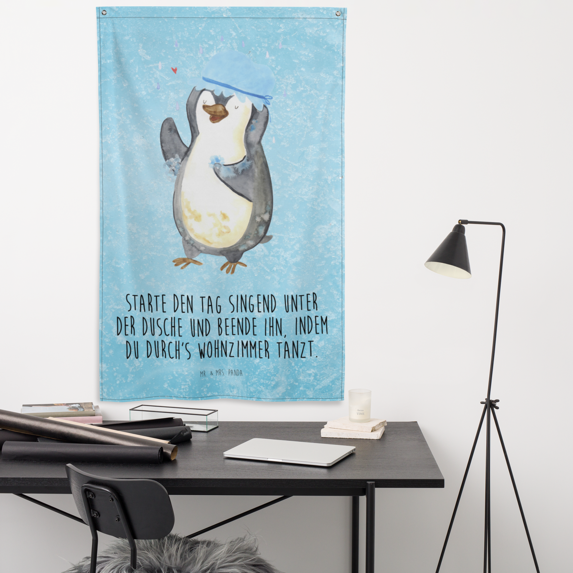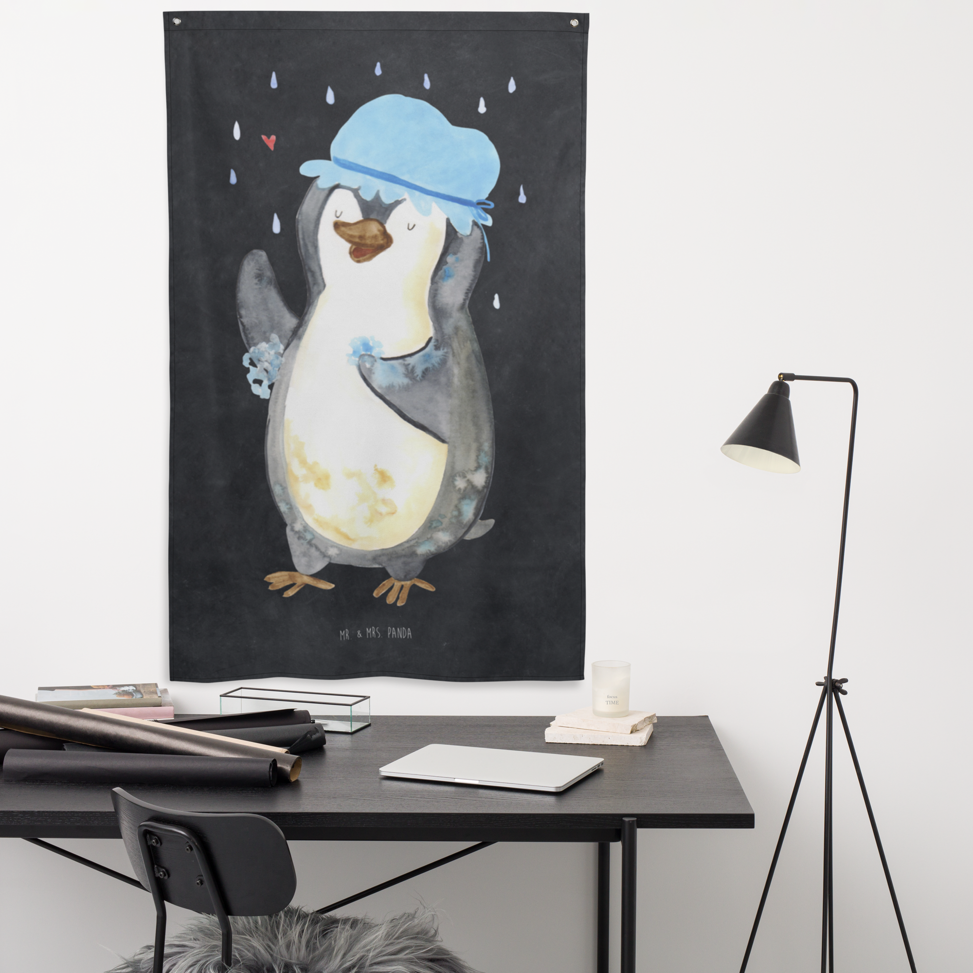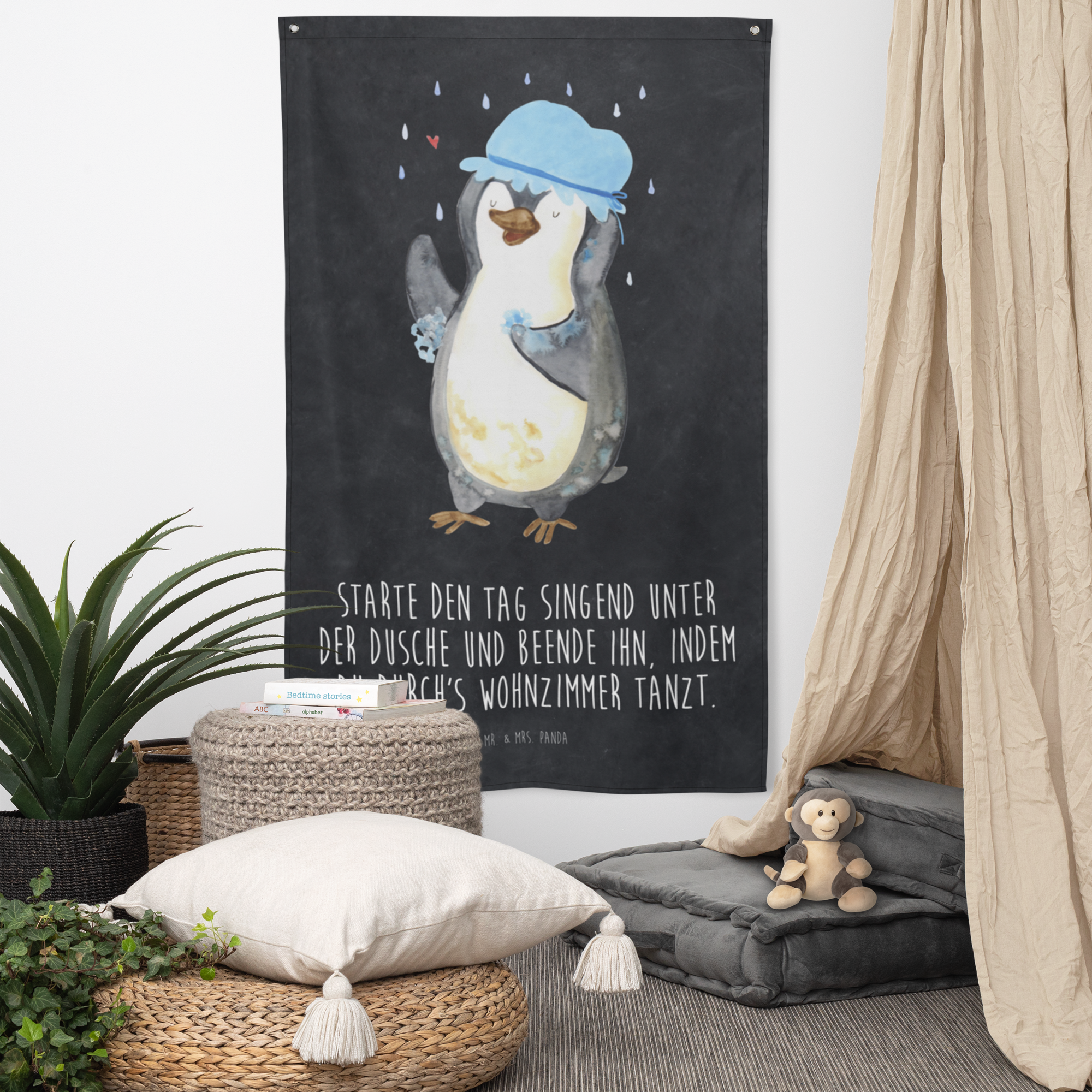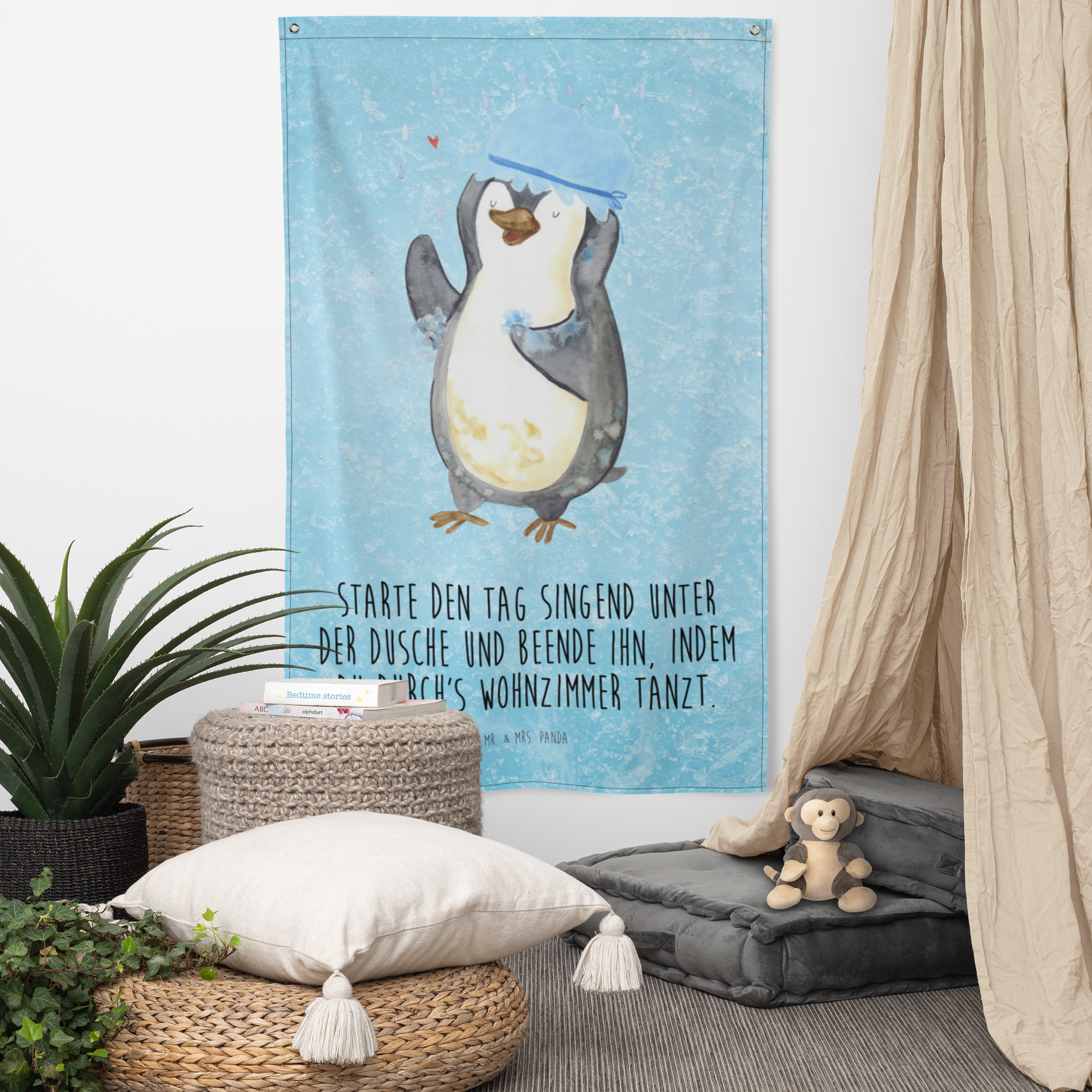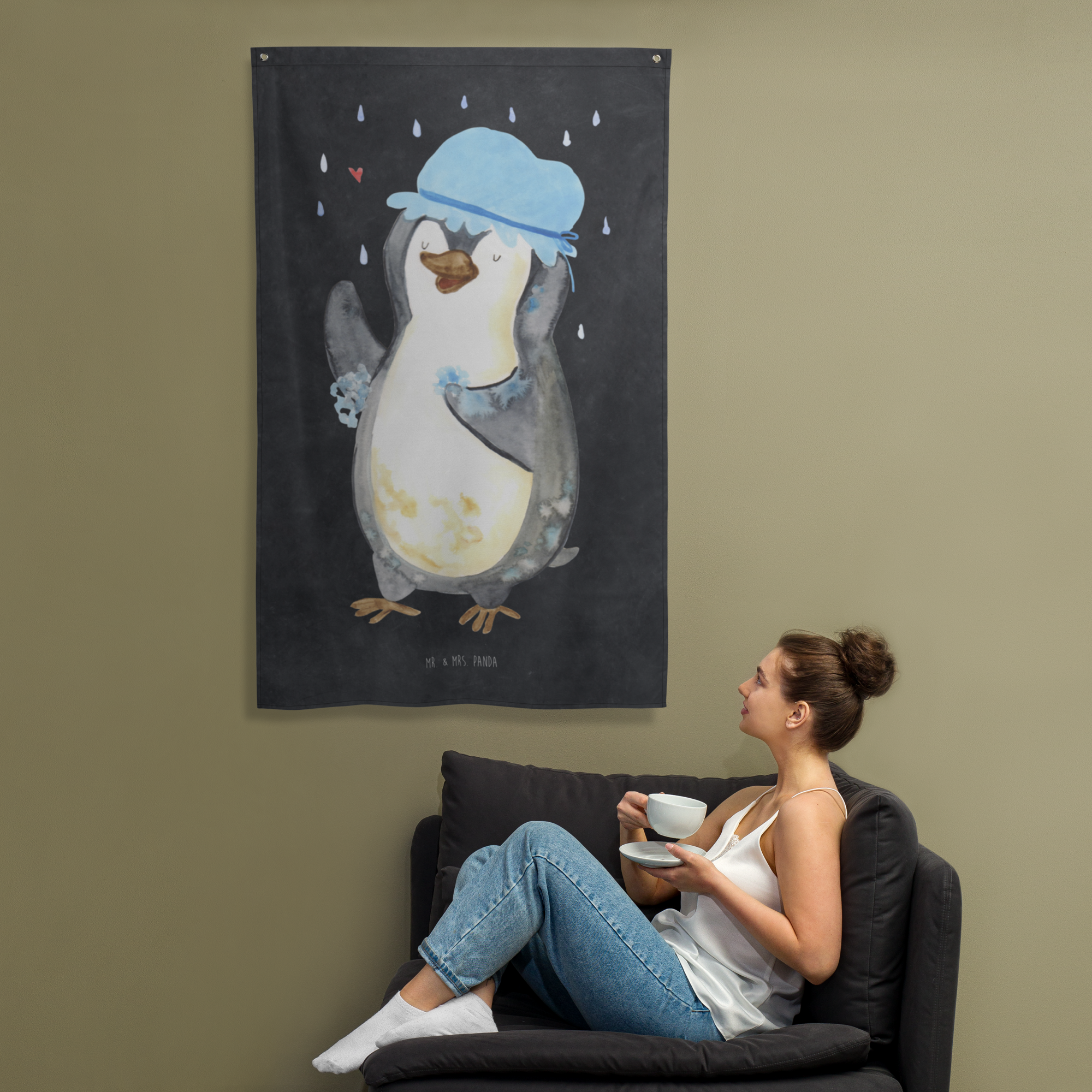 Unser zauberhaftes Motiv - Pinguin duscht - bringt nicht nur Kinderherzen zum Schmelzen. Der witzige Pinguin, der trotz schlechten Wetters fröhlich unter dem Regenschauer steht und eine Duschhaube trägt, ist ein absoluter Hingucker und verbreitet gute Laune in jedem Raum. Mr. & Mrs. Panda sind bekannt für ihre außergewöhnlichen und herzerwärmenden Designs. Lass dich von unserer Liebe zum Detail verzaubern.