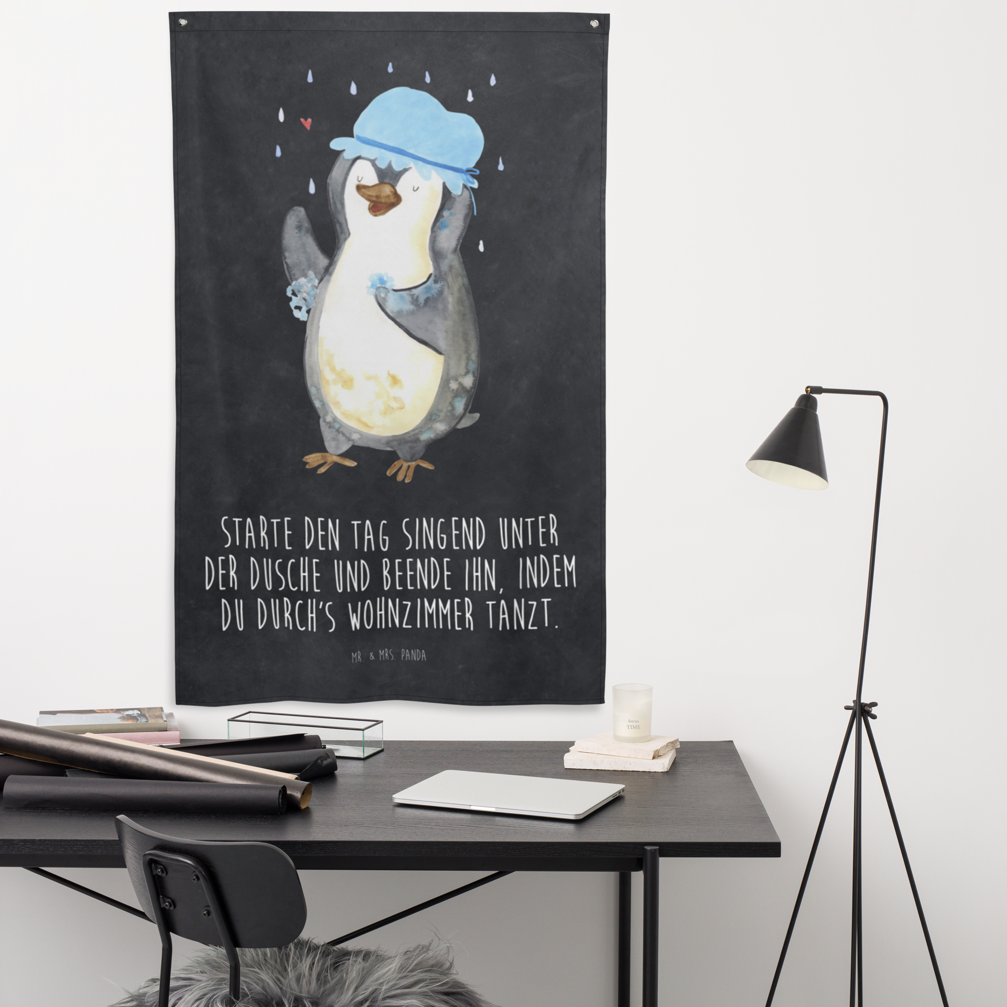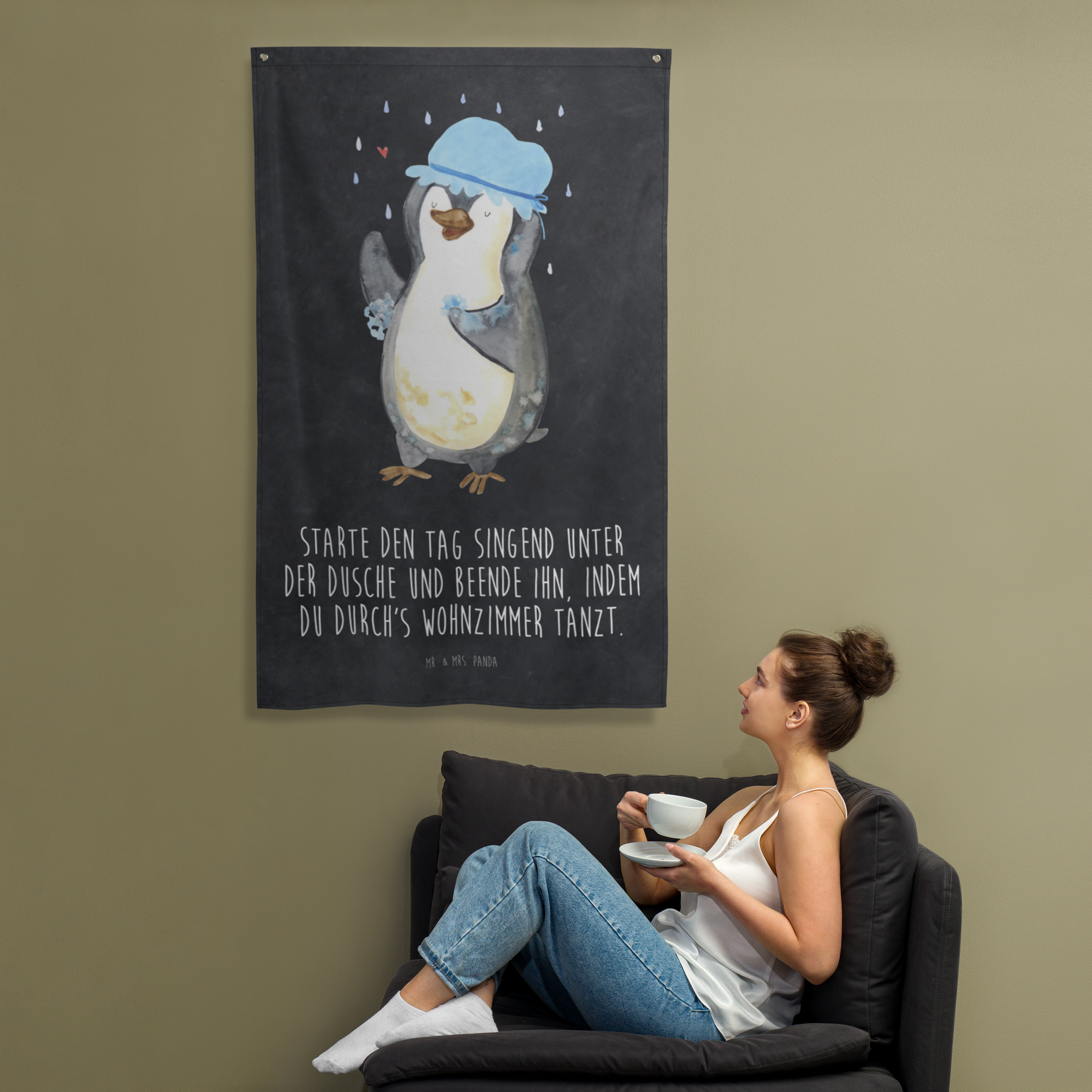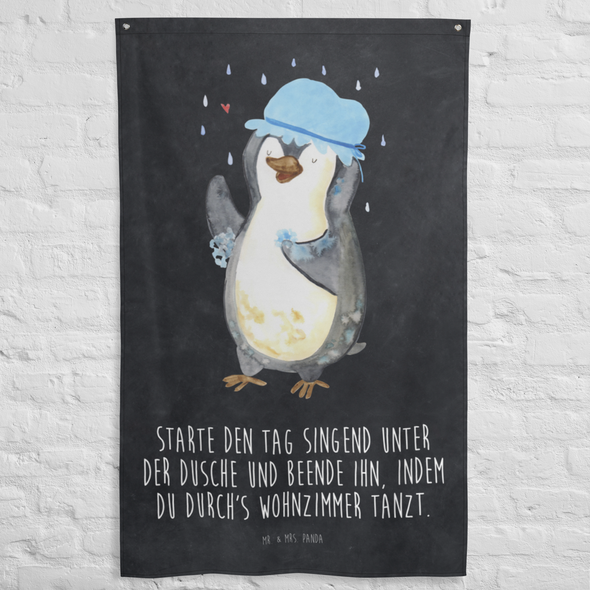Wandteppich Pinguin duscht - ohne Spruch - Kreidetafel