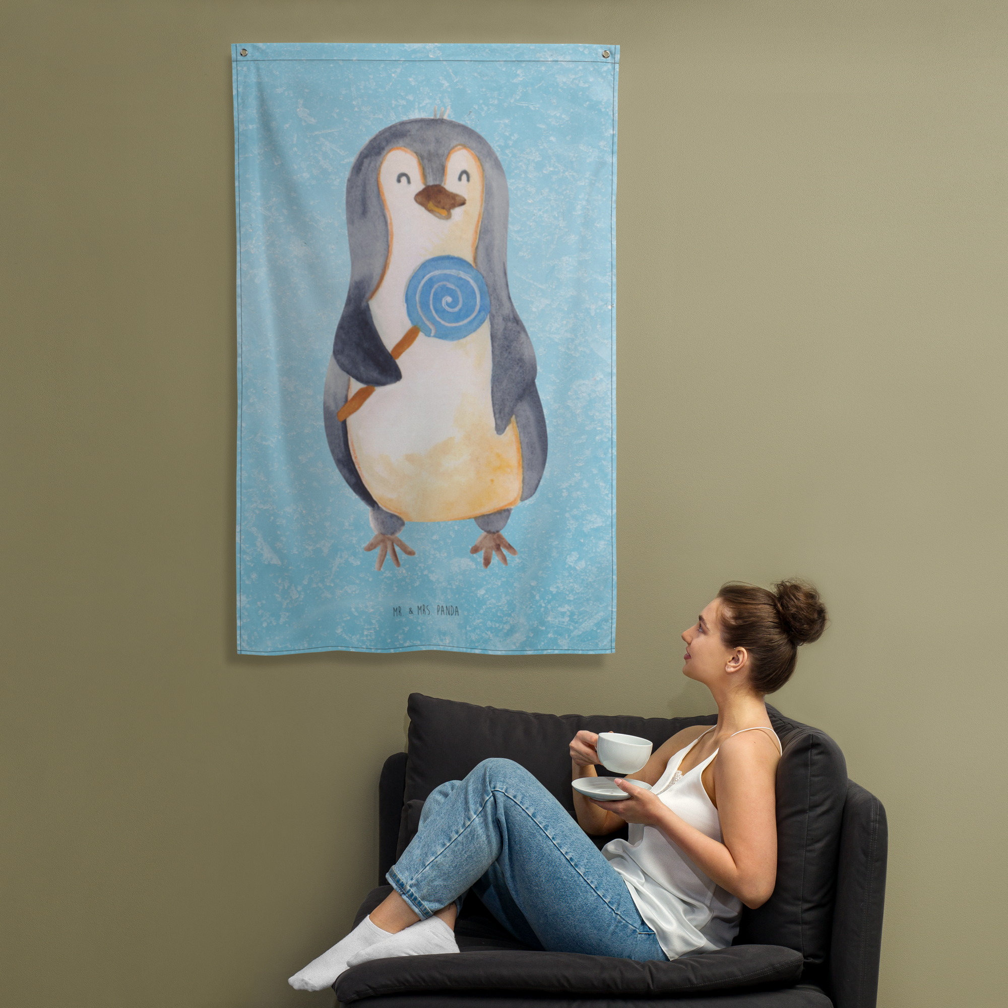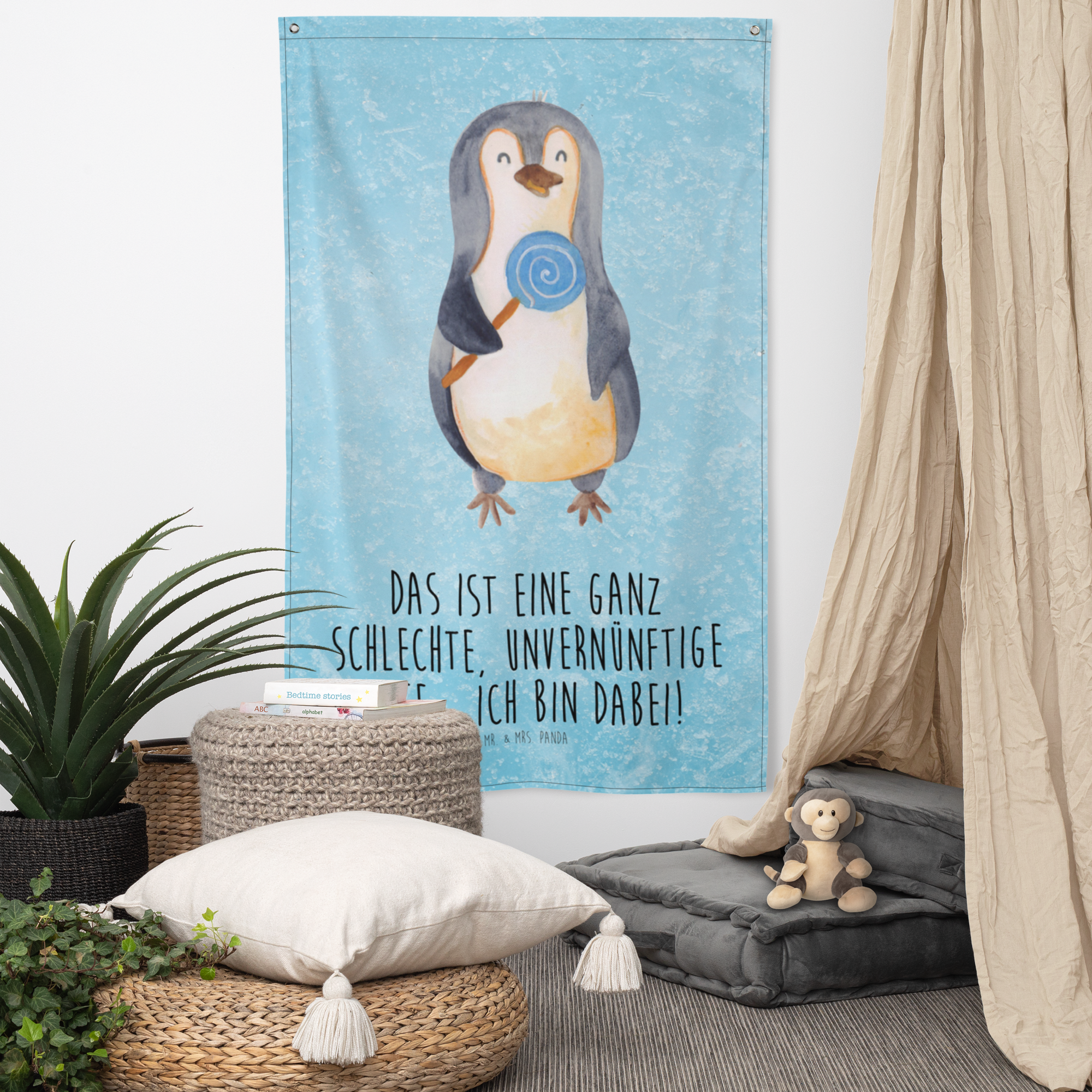 Wandteppich Pinguin Lolli Wandbehang, Dekoration, Boho, Wandteppich, Wandtuch, Wanddeko, Tapisserie, Tapestry, Wandbild, Textil-Kunst, Schmuck-Wandbehang, Wand Deko, Kinderzimmer, Kinderzimmer Wand, Kinderzimmer Deko, Kinderzimmer Wanddeko, Pinguin, Pinguine, Lolli, Süßigkeiten, Blödsinn, Spruch, Rebell, Gauner, Ganove, Rabauke