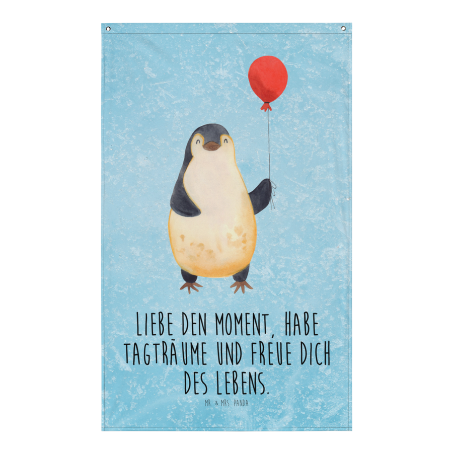 Wandteppich Pinguin Luftballon - mit Spruch - Eisblau