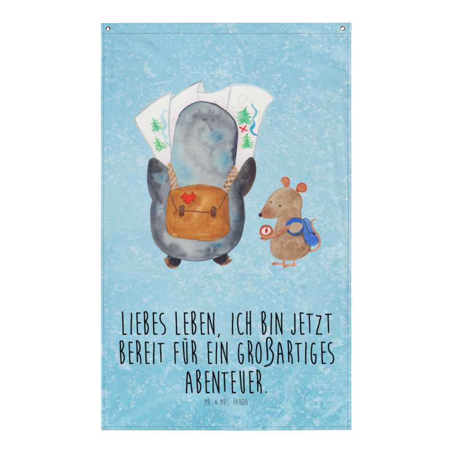 Wandteppich Pinguin & Maus Wanderer - mit Spruch - Eisblau