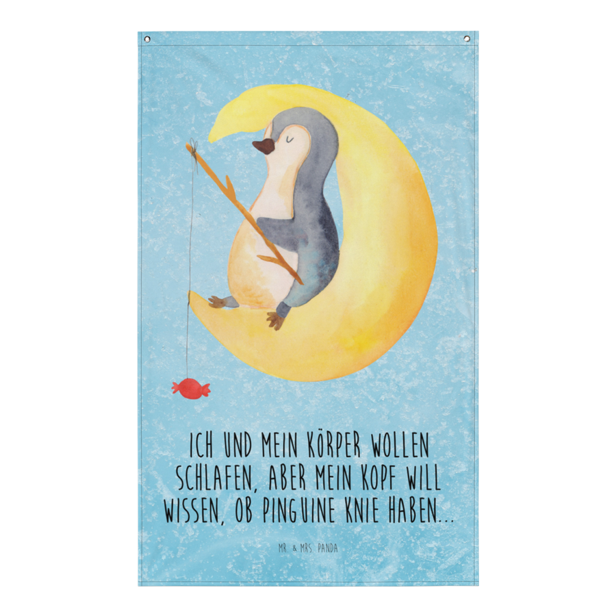 Wandteppich Pinguin Mond - mit Spruch - Eisblau