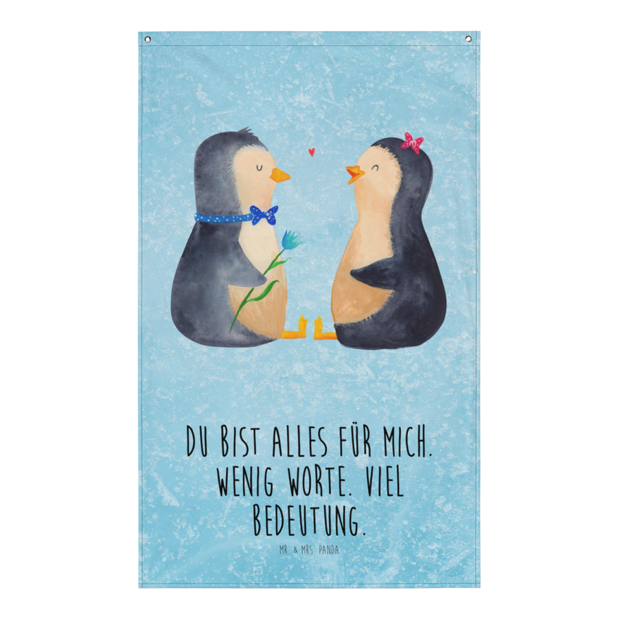 Wandteppich Pinguin Pärchen - mit Spruch - Eisblau