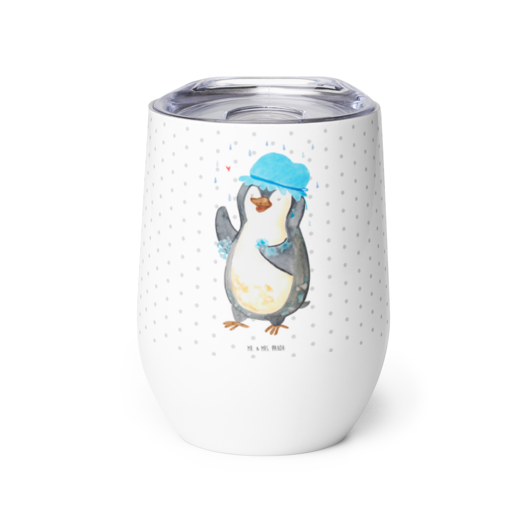 Weinbecher Pinguin duscht - mit Spruch