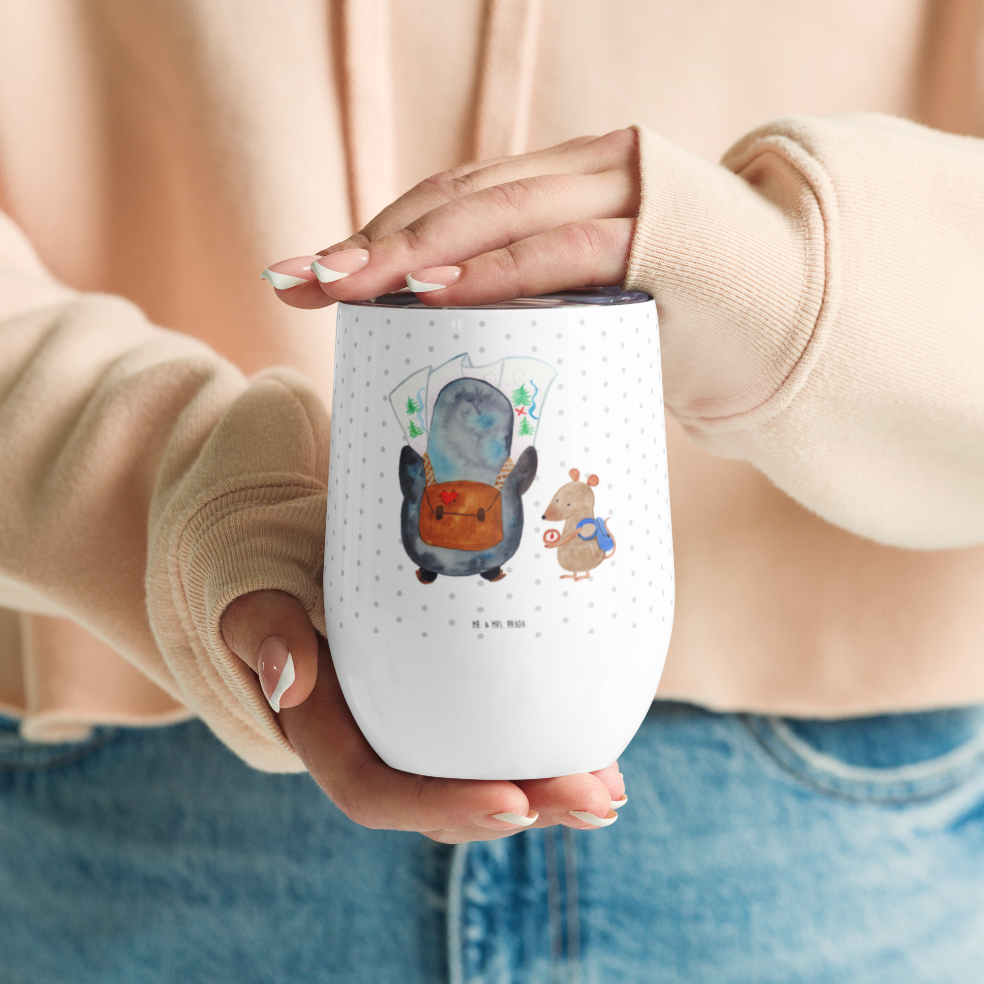 Weinbecher Pinguin & Maus Wanderer - mit Spruch