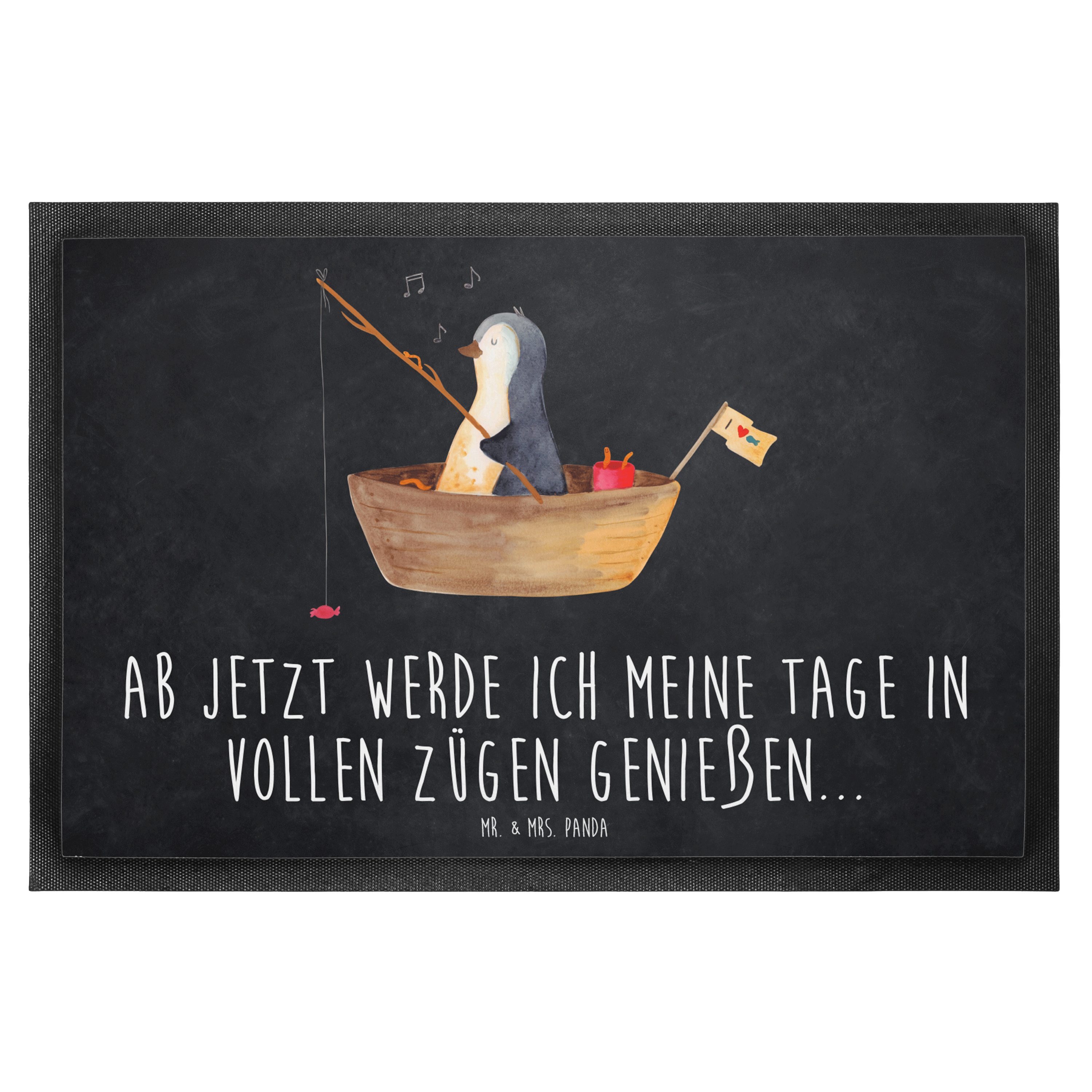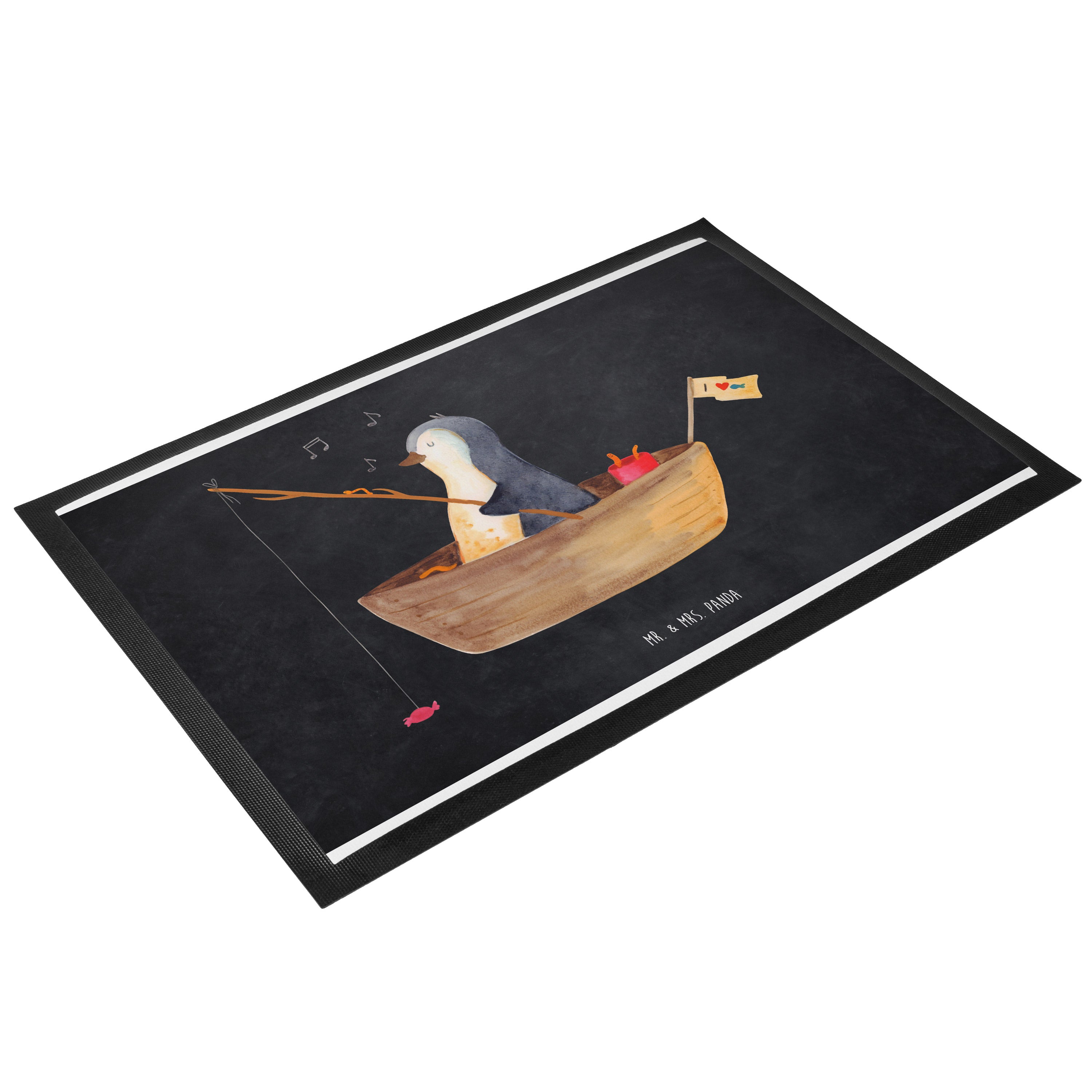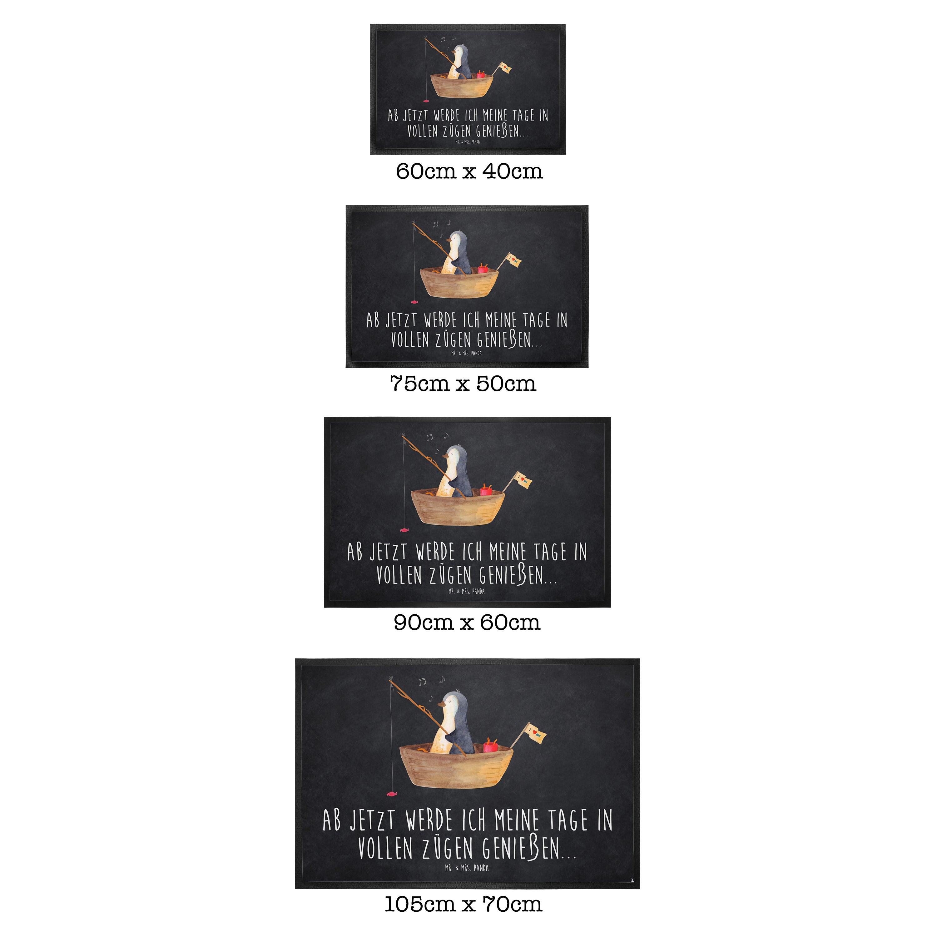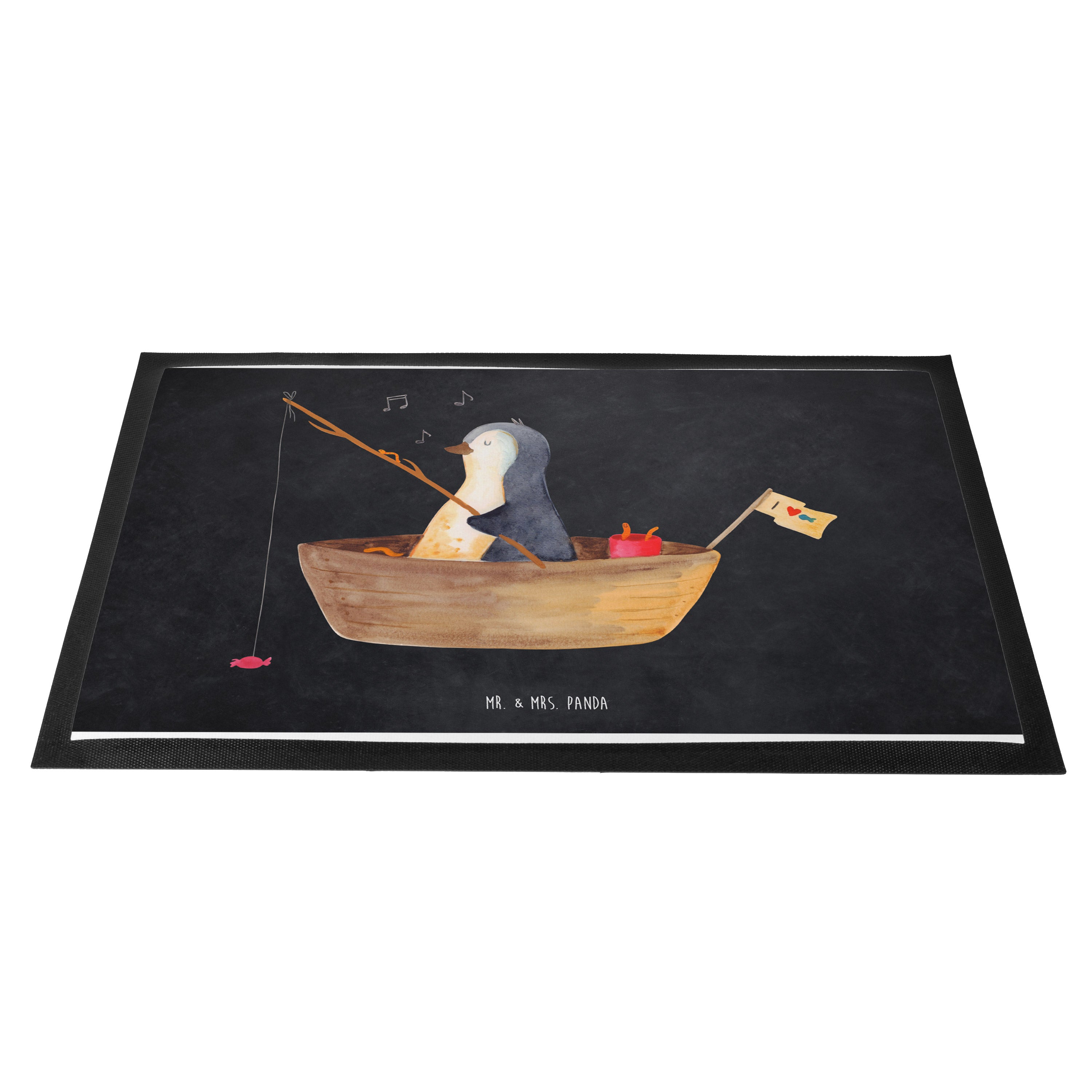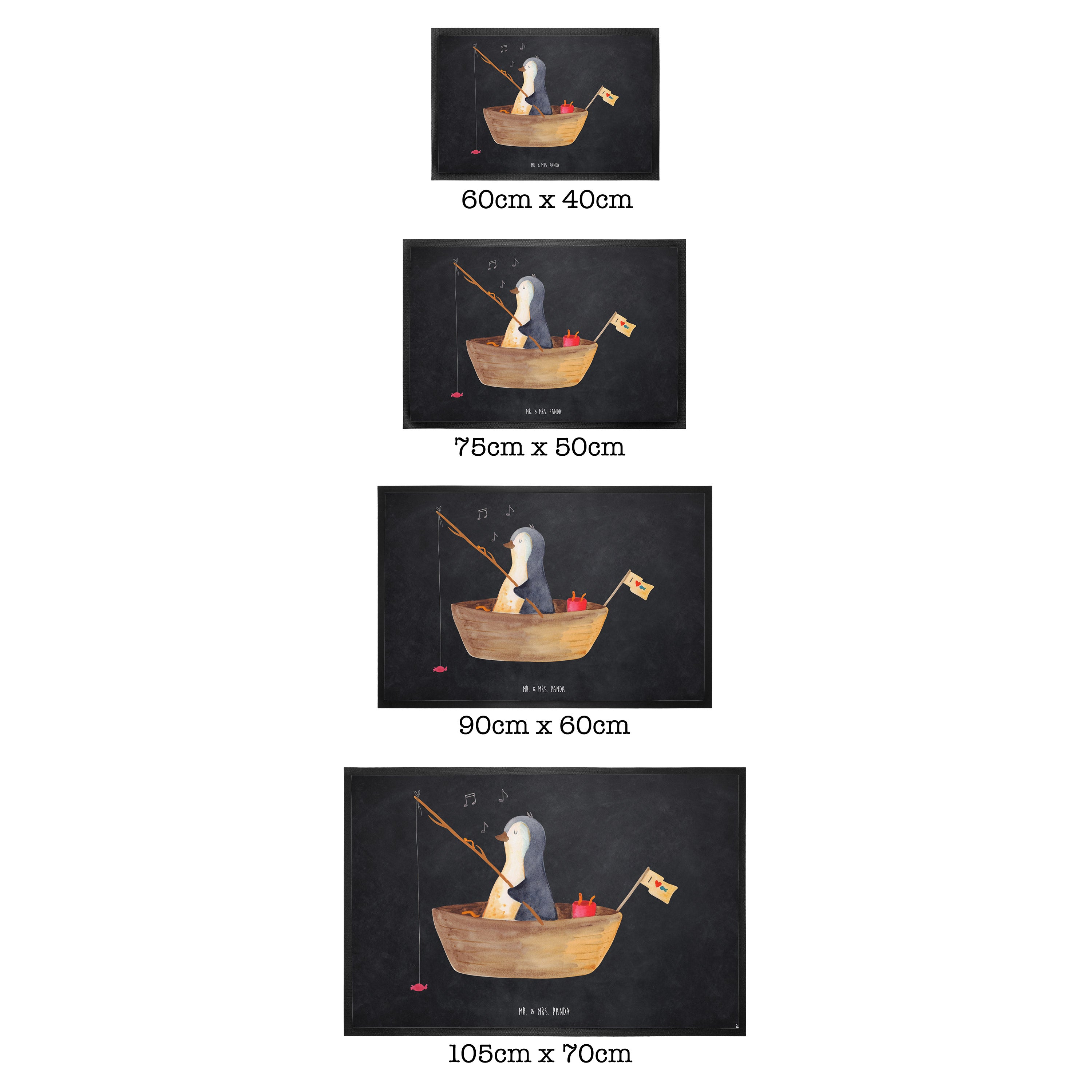 Fußmatte Pinguin Angelboot - 60 x 90 cm - mit Spruch - Kreidetafel