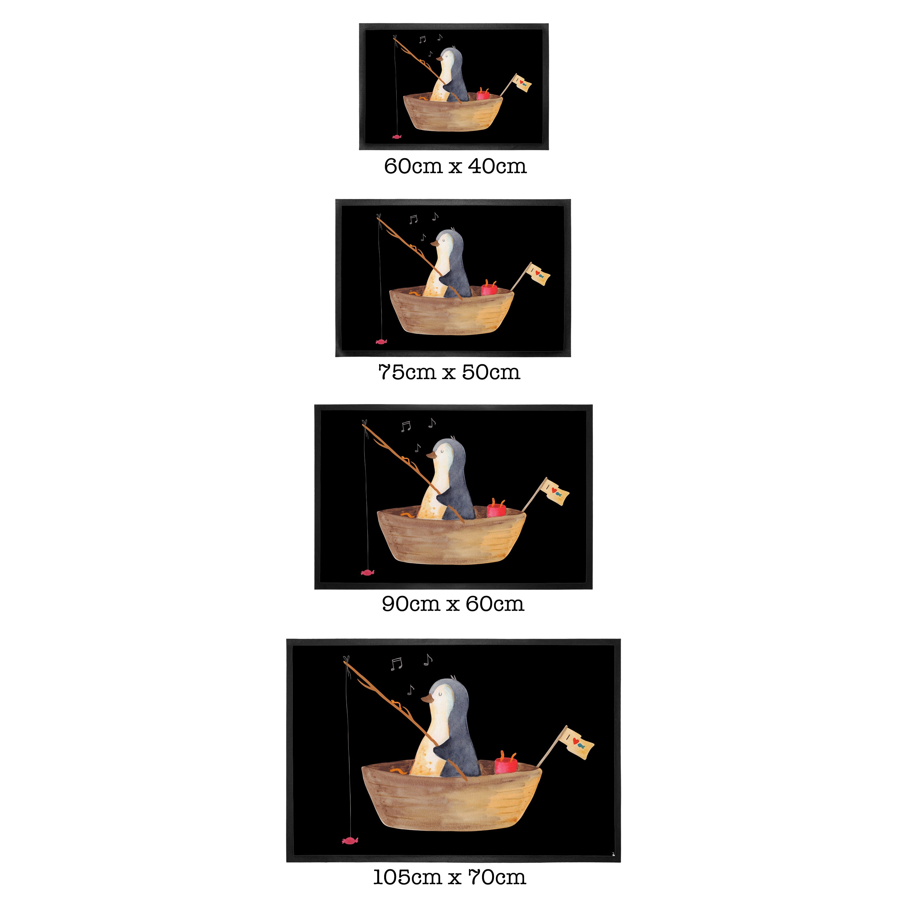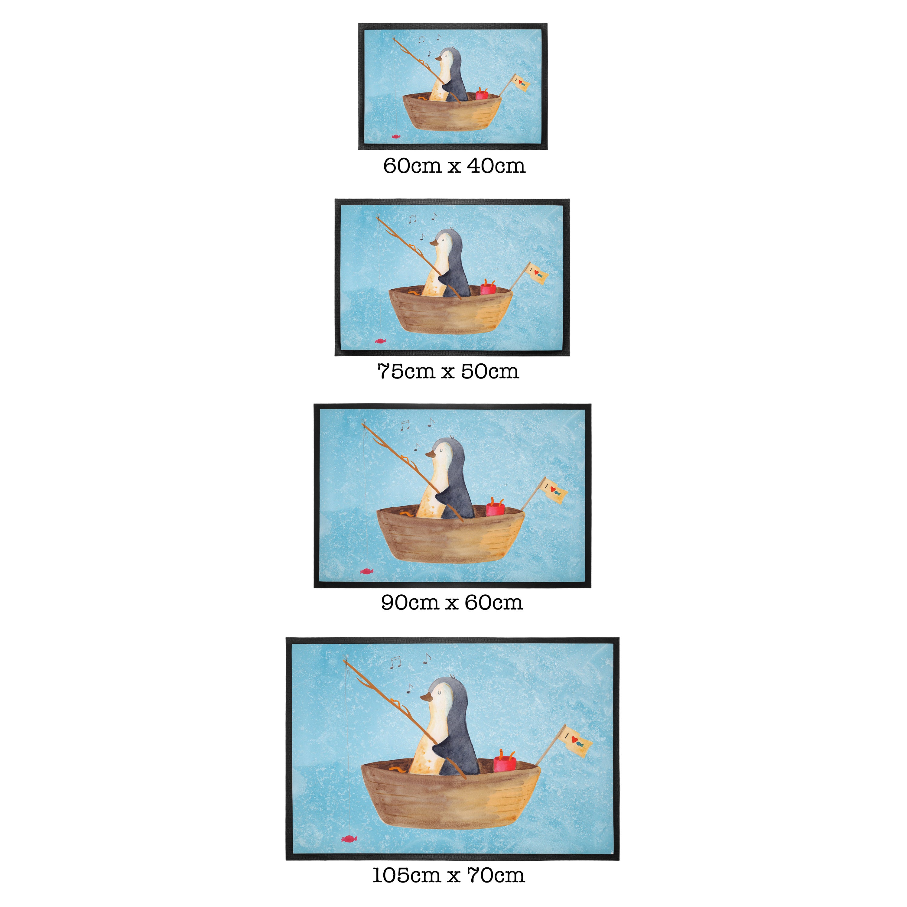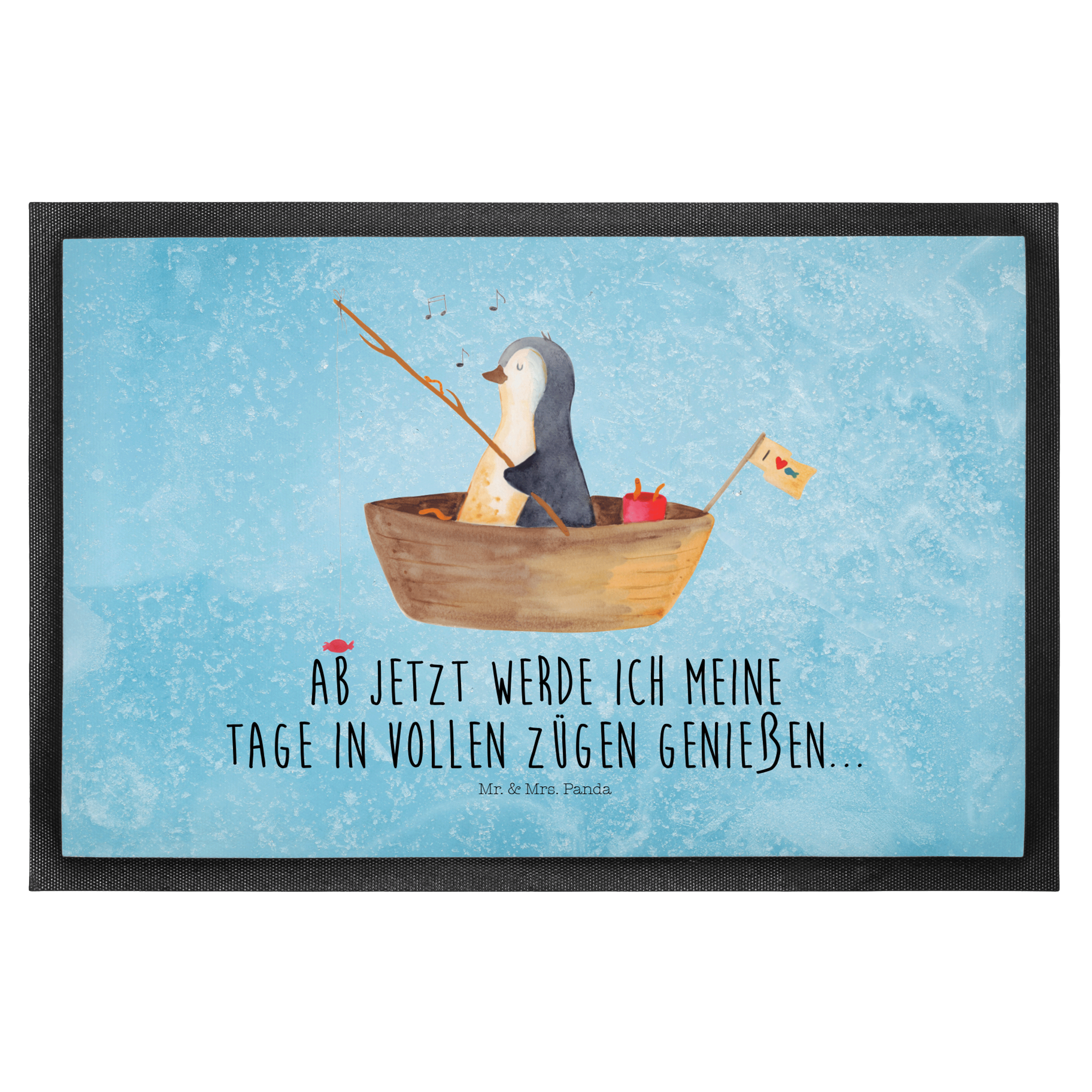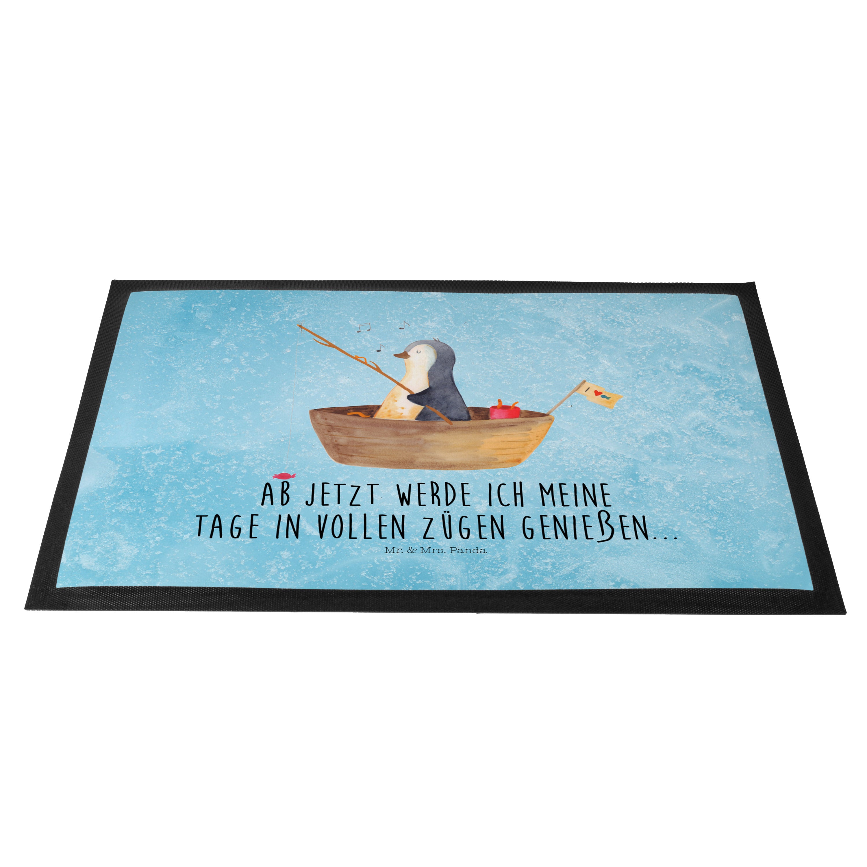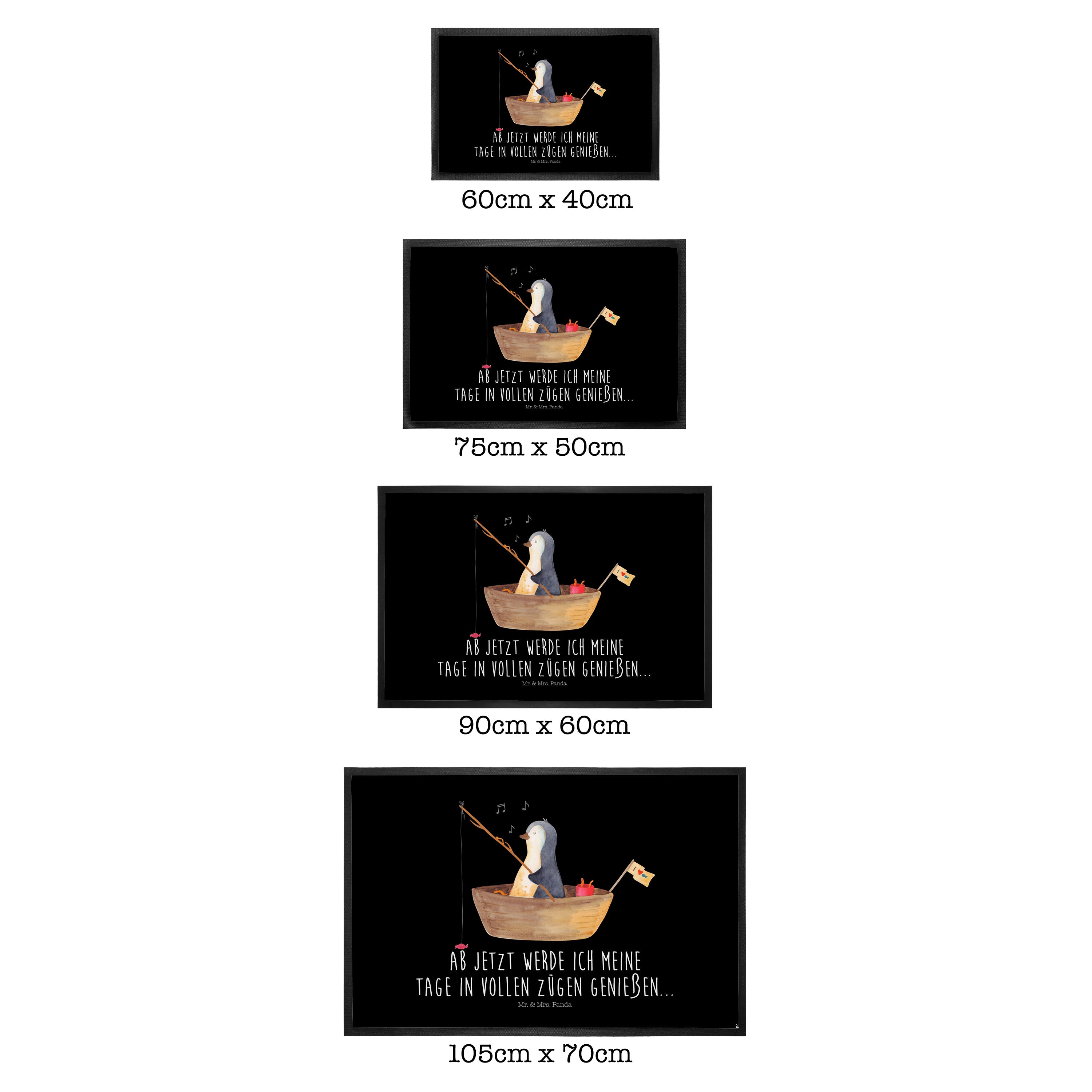 Fußmatte Pinguin Angelboot - 60 x 90 cm - mit Spruch - Kreidetafel