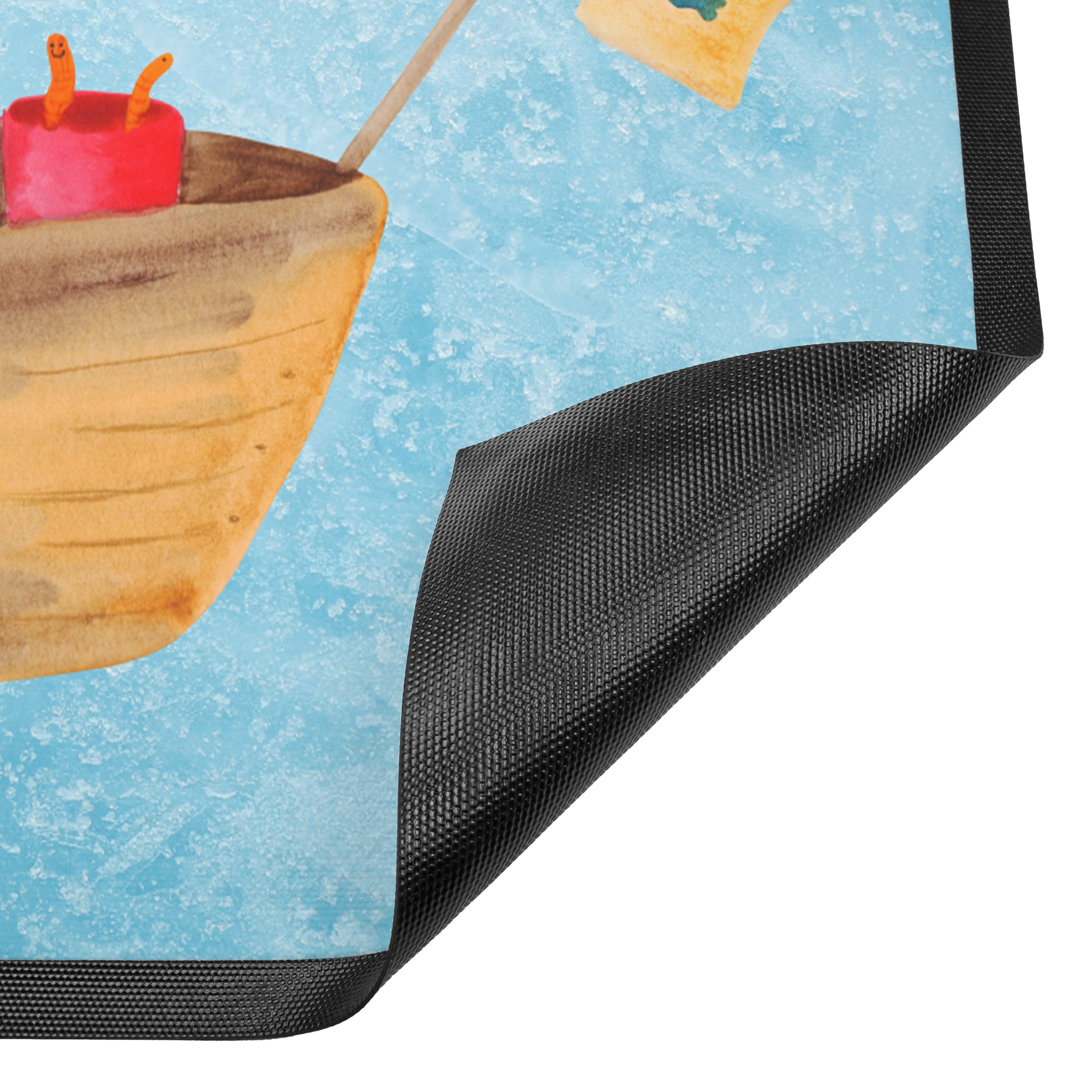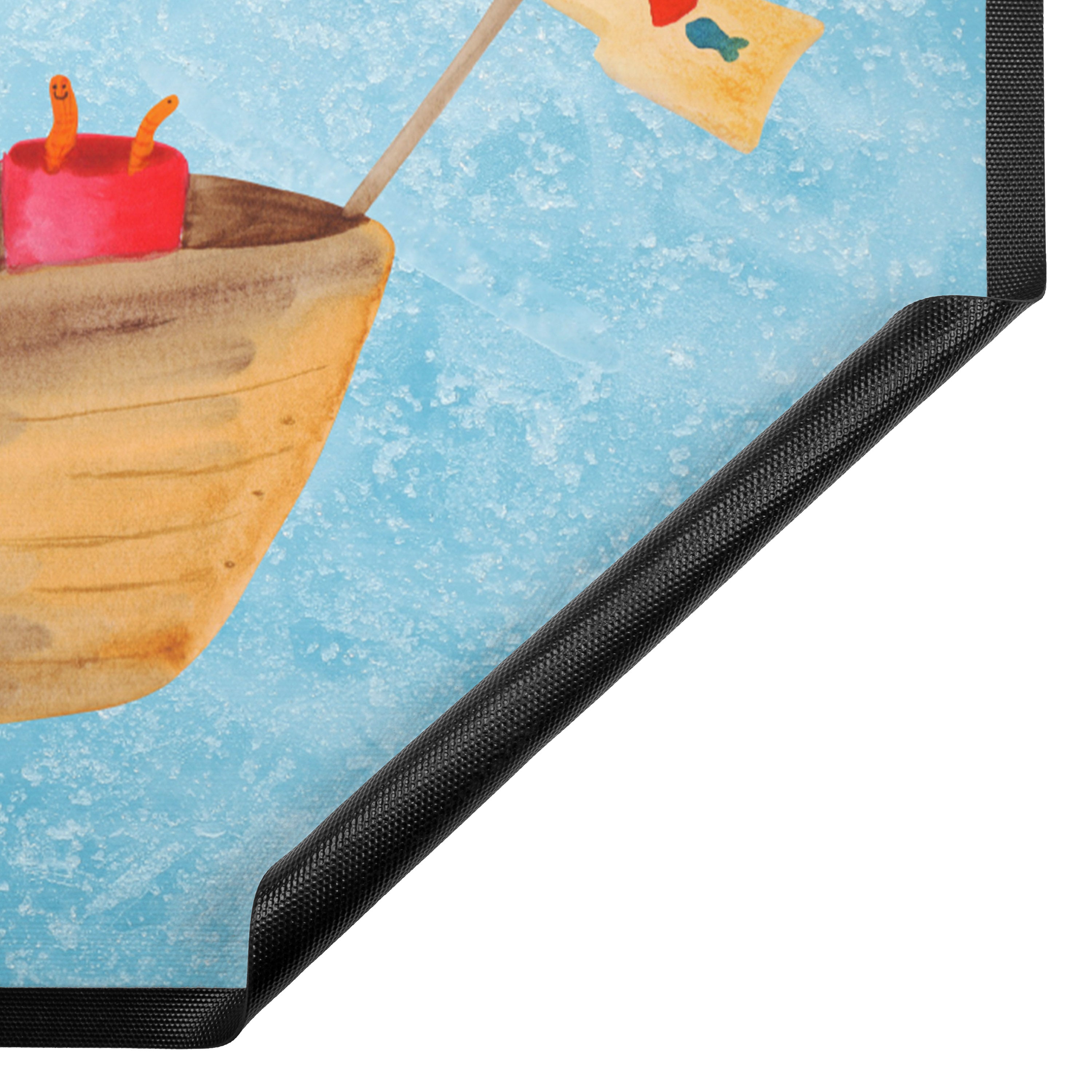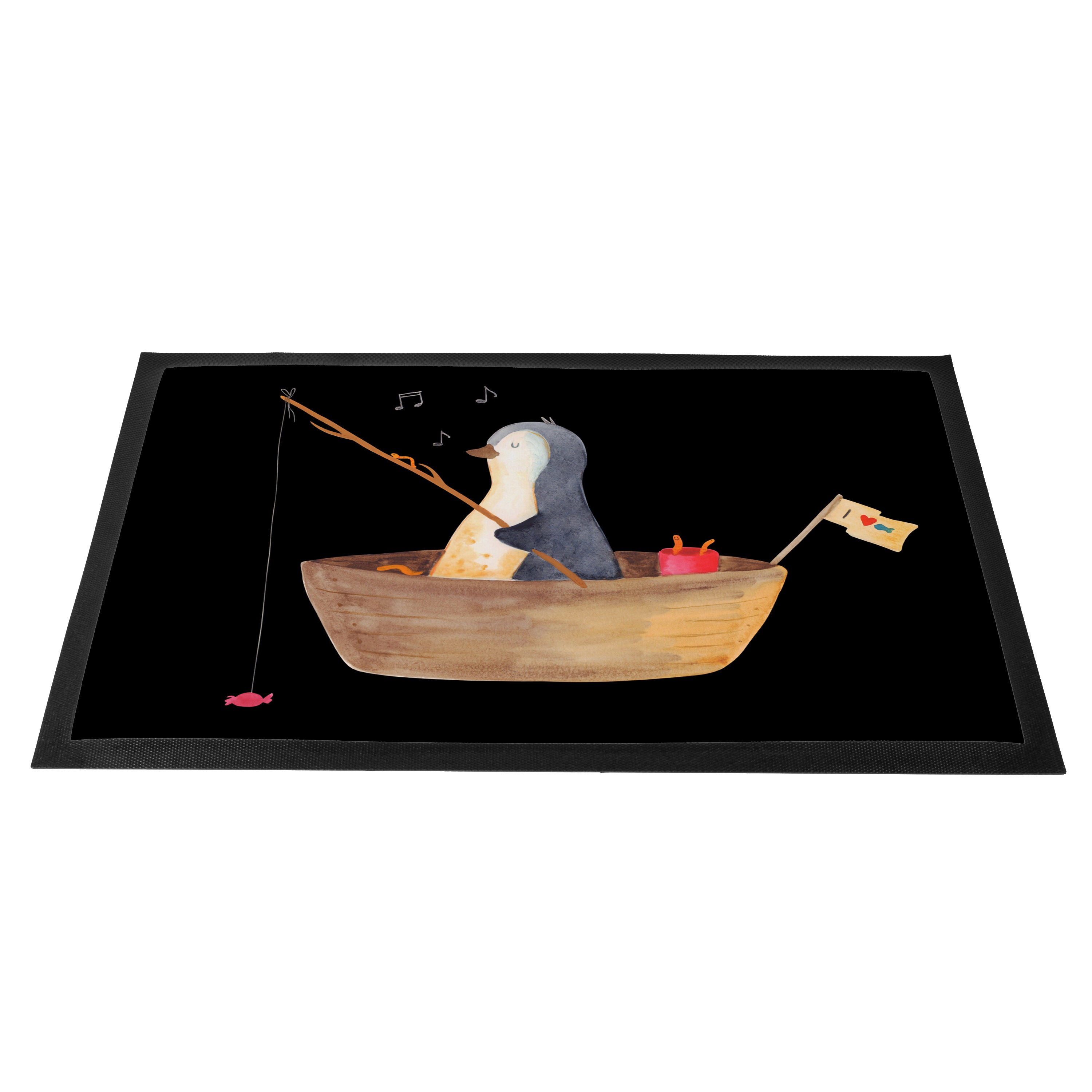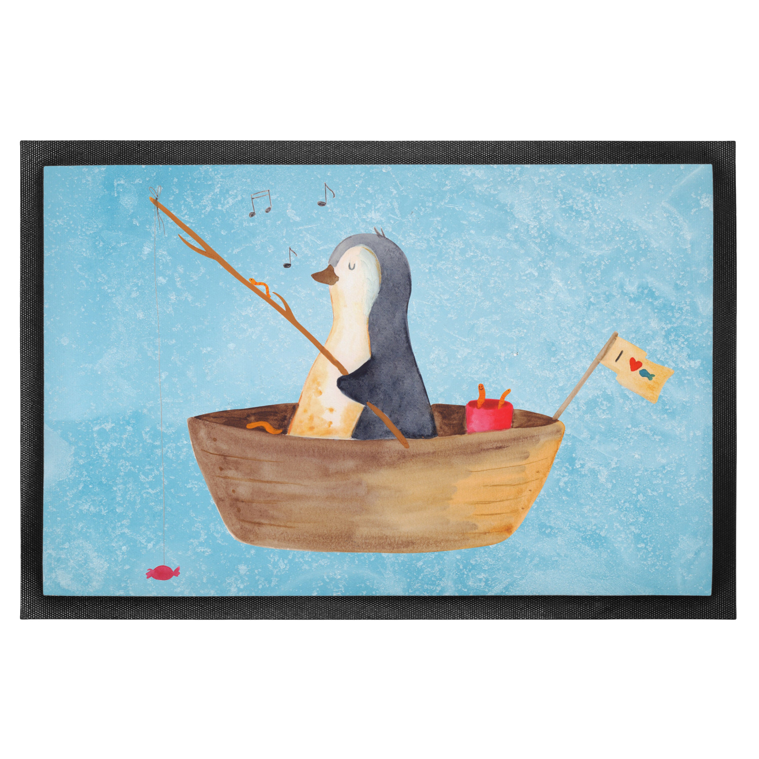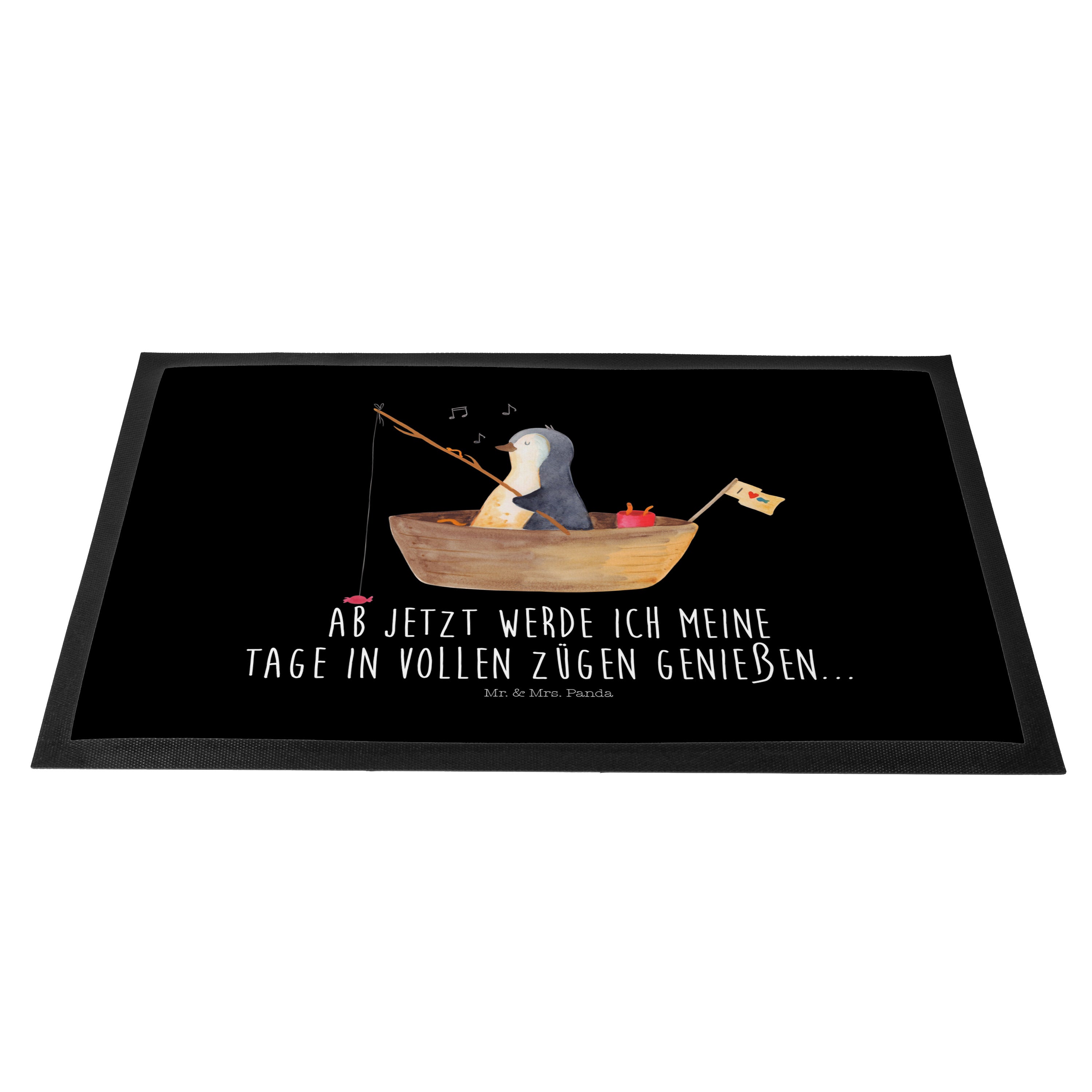 Fußmatte Pinguin Angelboot - 60 x 90 cm - mit Spruch - Kreidetafel