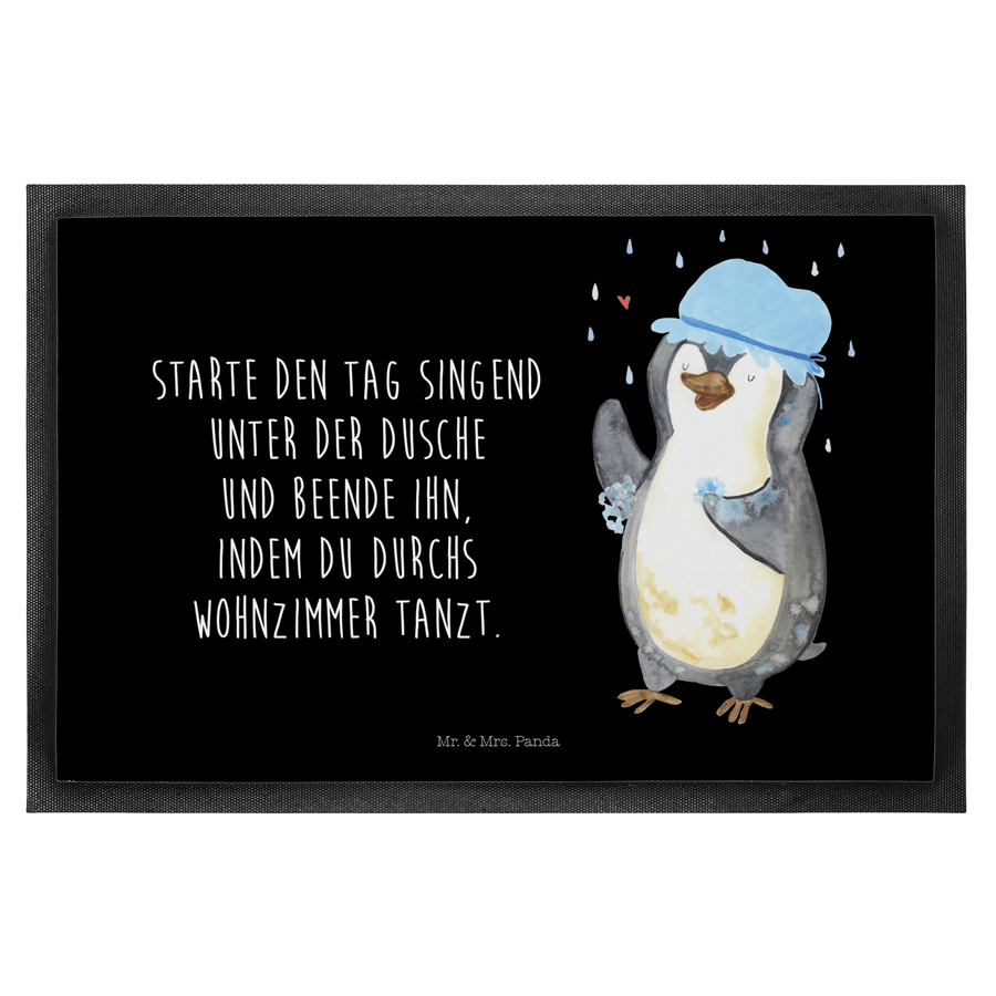 Fußmatte Pinguin duscht - 40 x 60 cm - mit Spruch - Schwarz