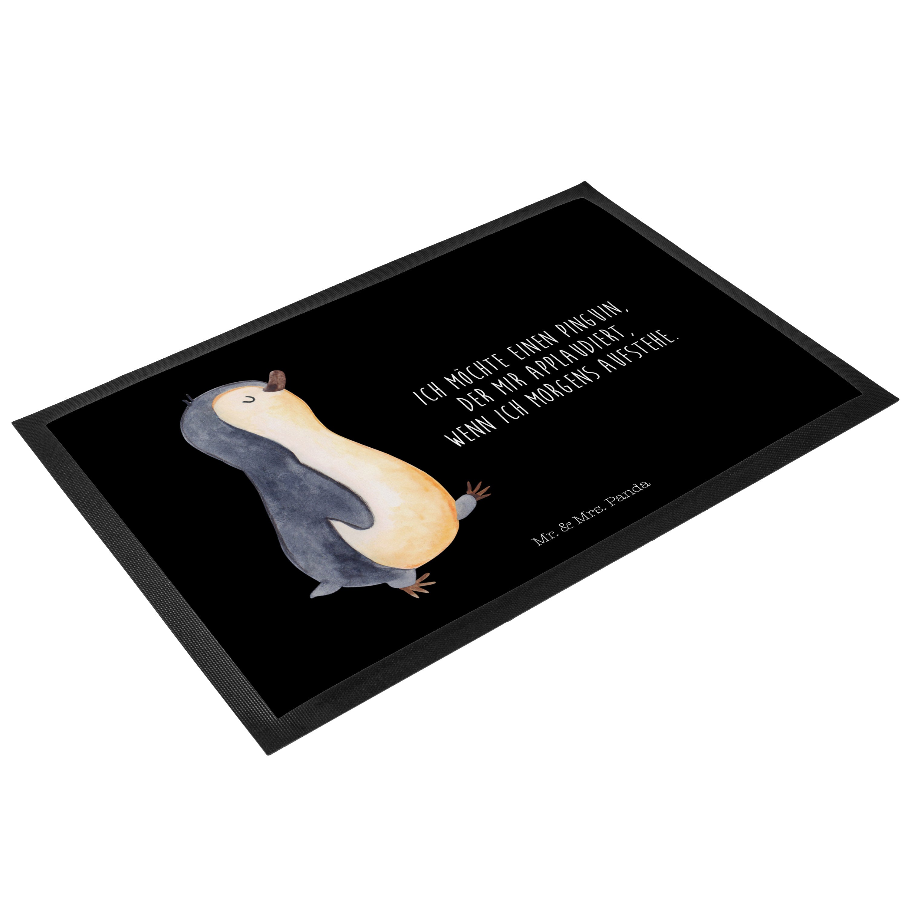 Fußmatte Pinguin marschierend - 60 x 90 cm - mit Spruch - Schwarz