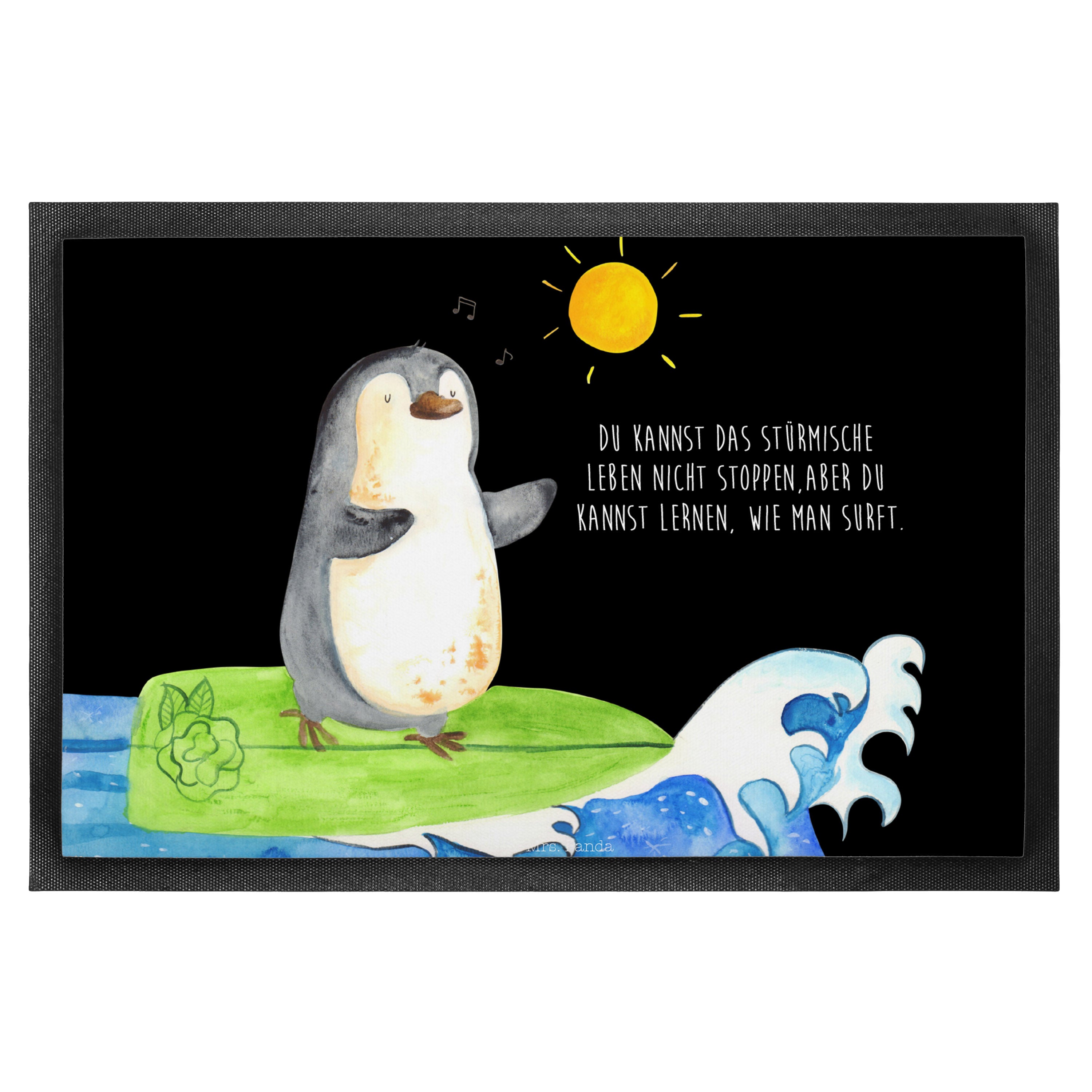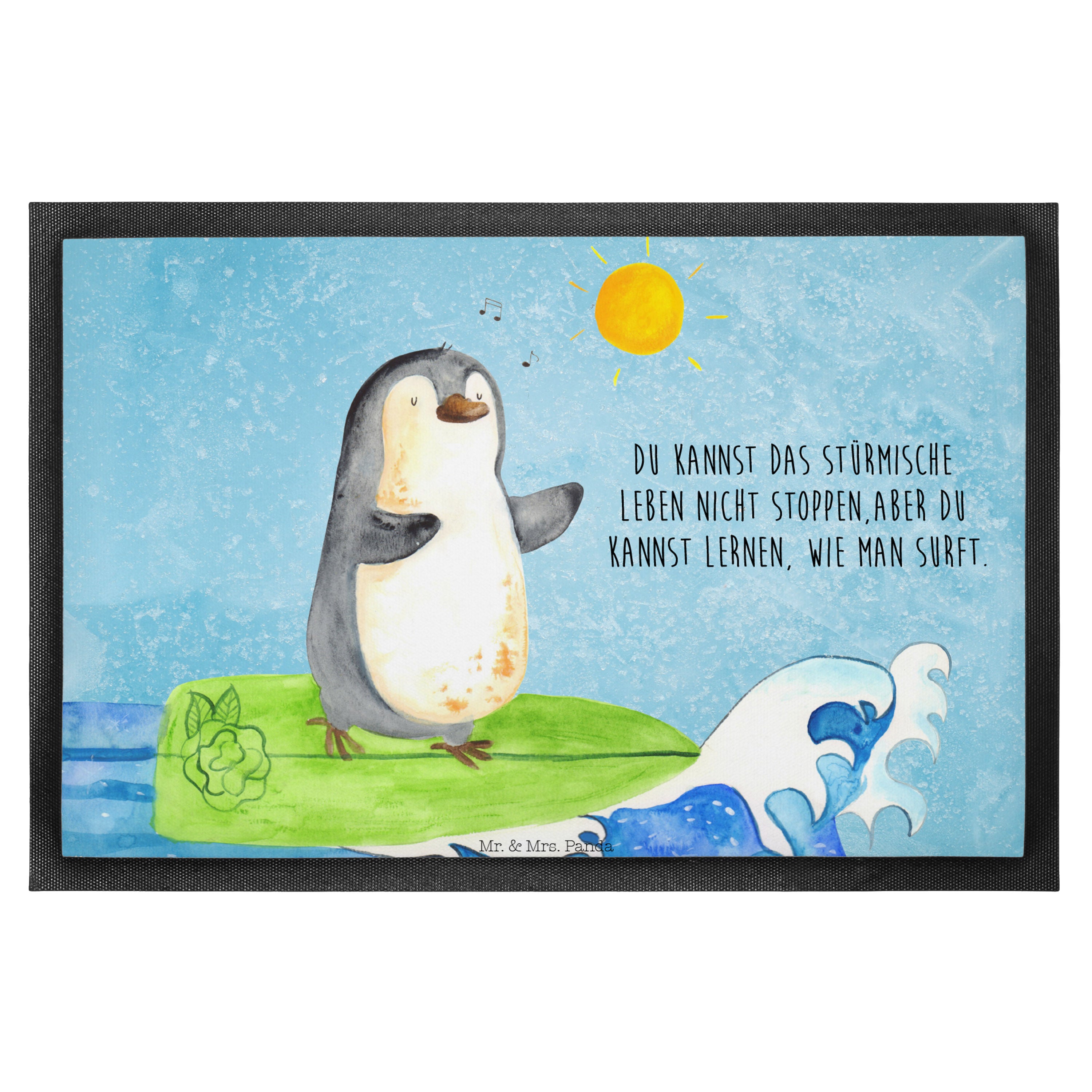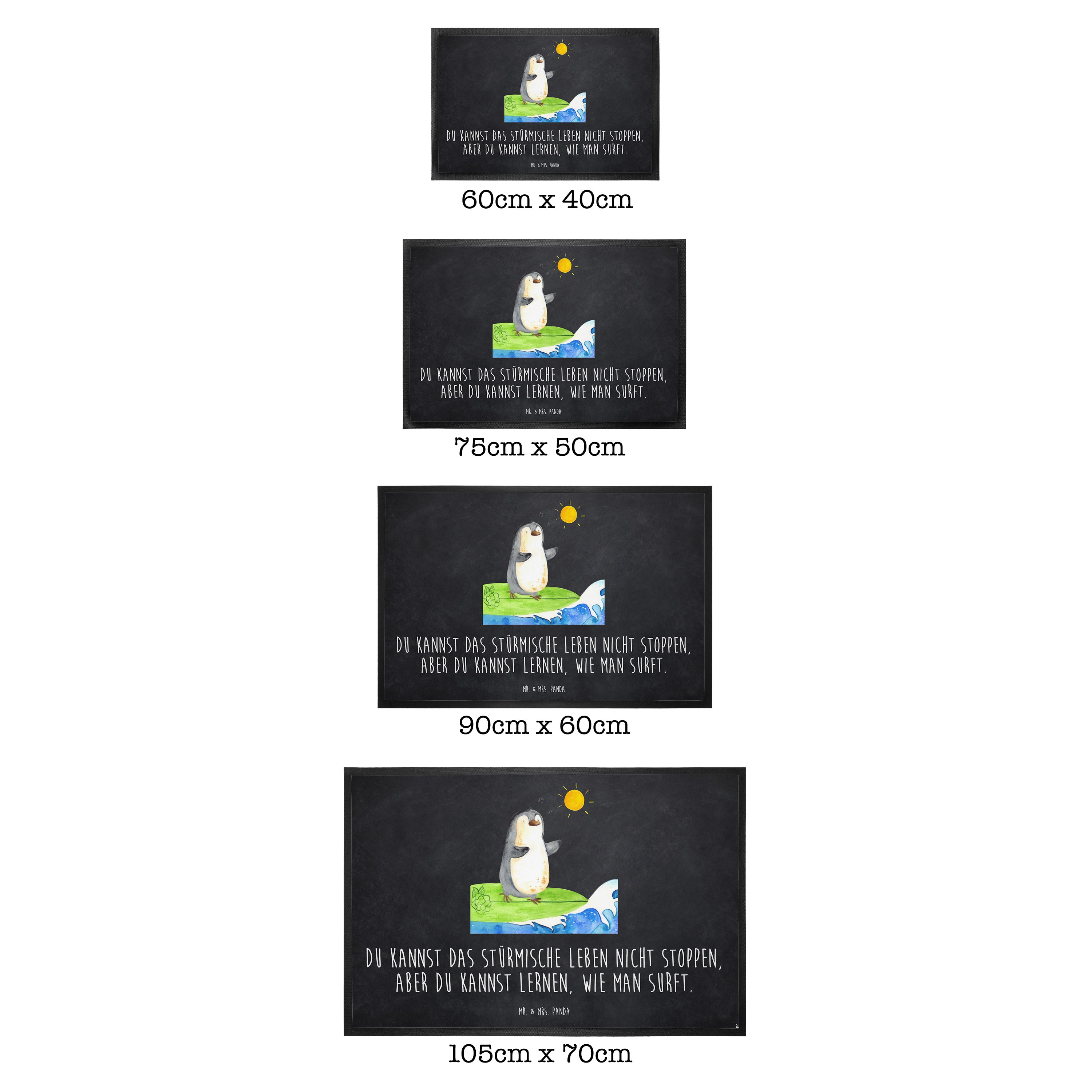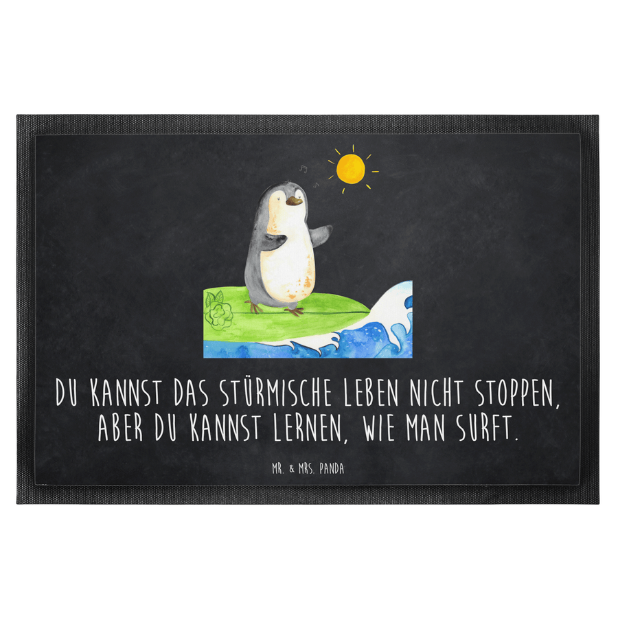 Fußmatte Pinguin Surfer - 60 x 90 cm - mit Spruch - Kreidetafel