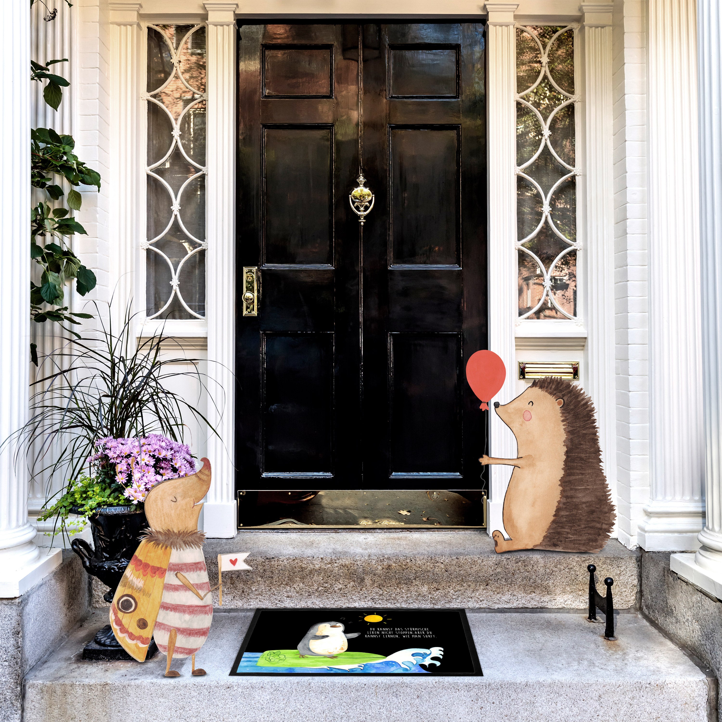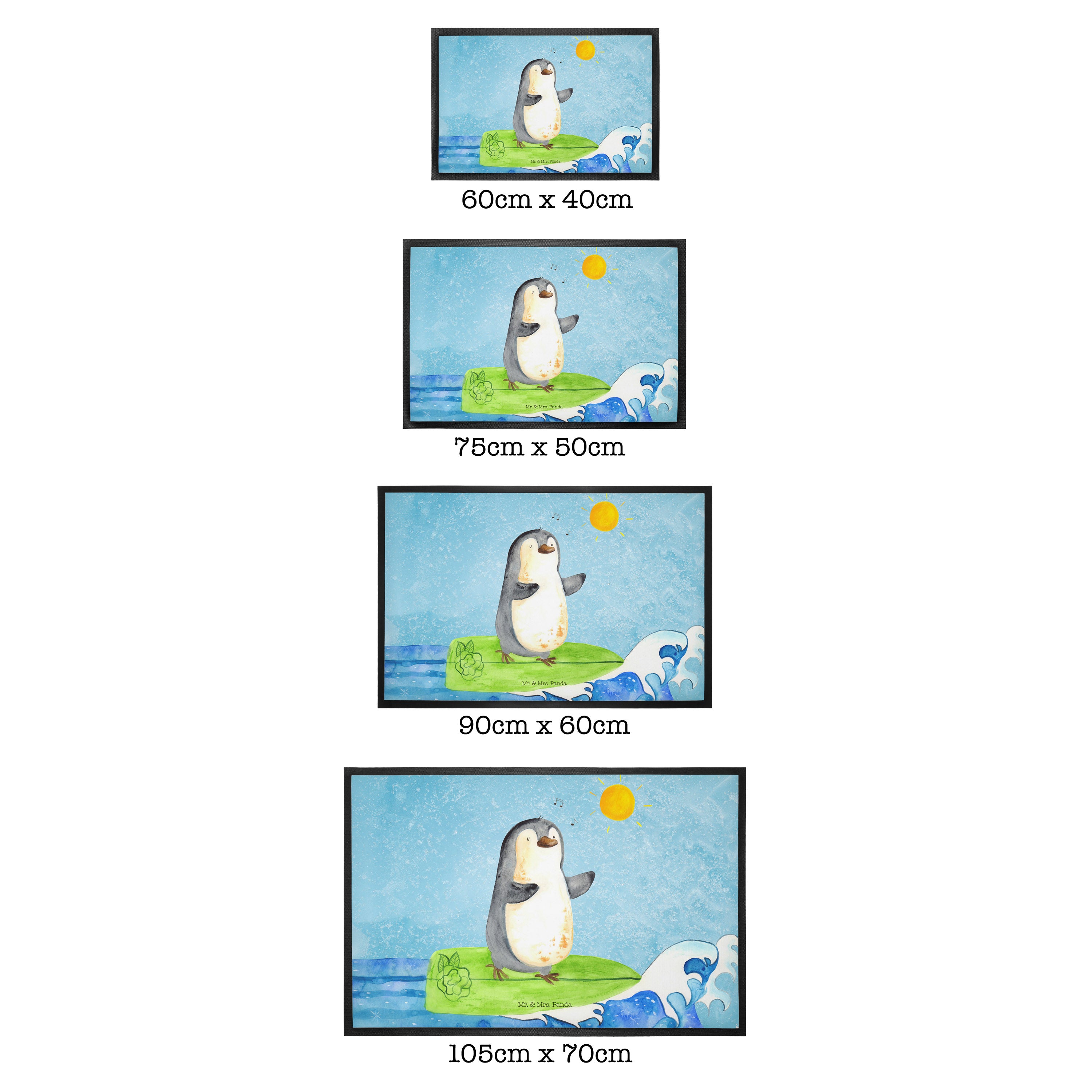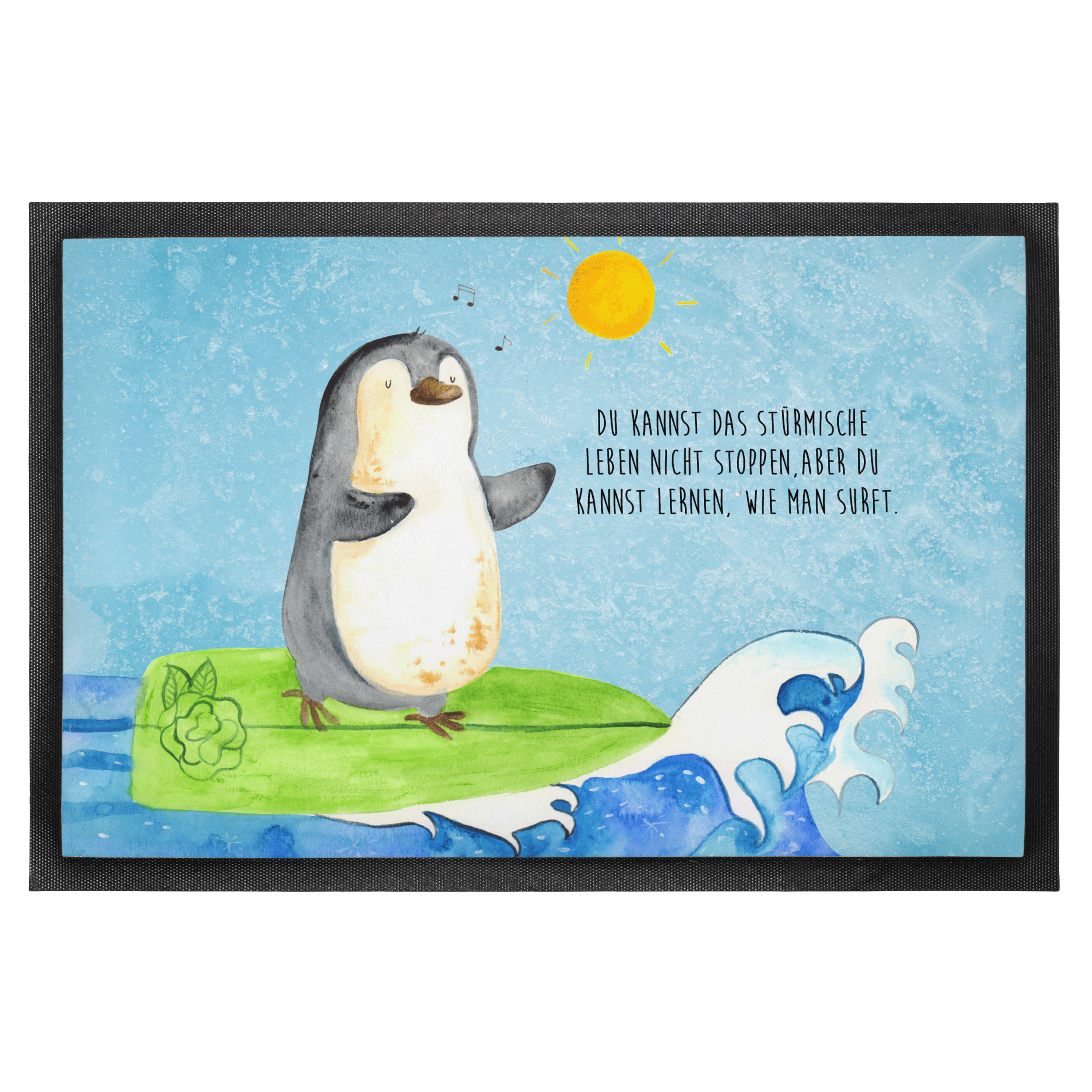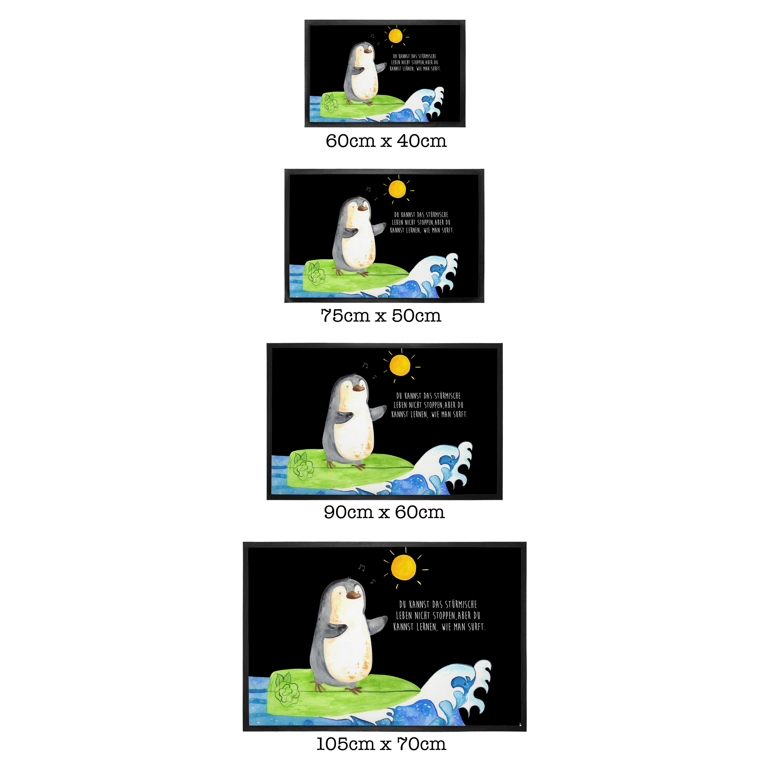 Fußmatte Pinguin Surfer - 60 x 90 cm - mit Spruch - Kreidetafel