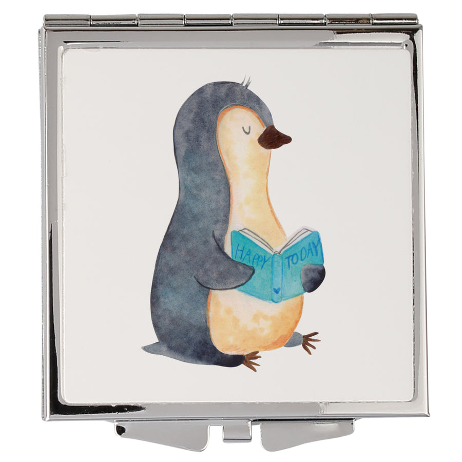 Handtaschenspiegel quadratisch Pinguin Buch - ohne Spruch - Weiß