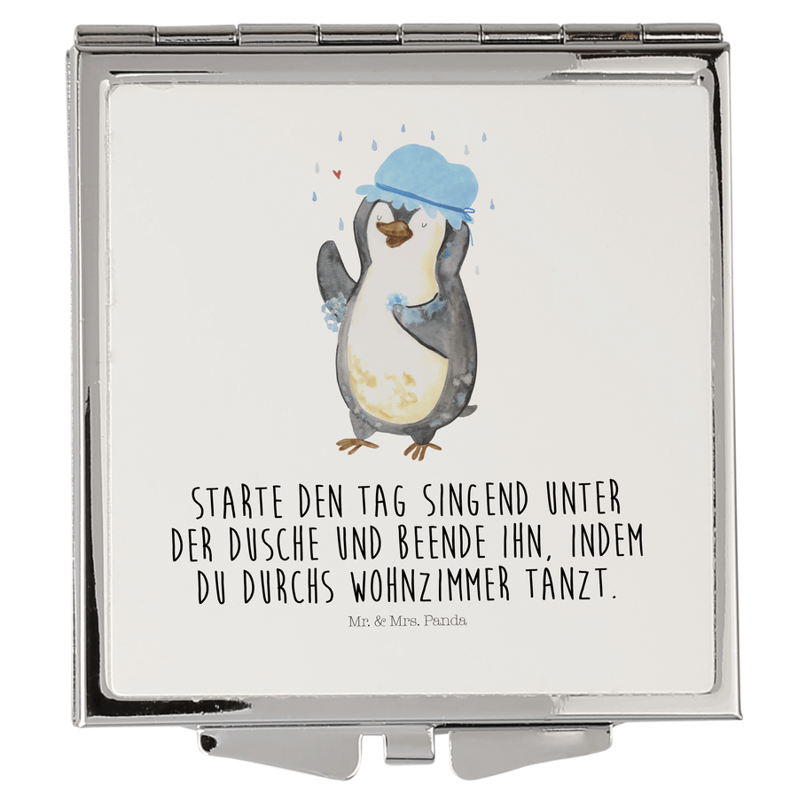 Handtaschenspiegel quadratisch Pinguin duscht - mit Spruch - Weiß
