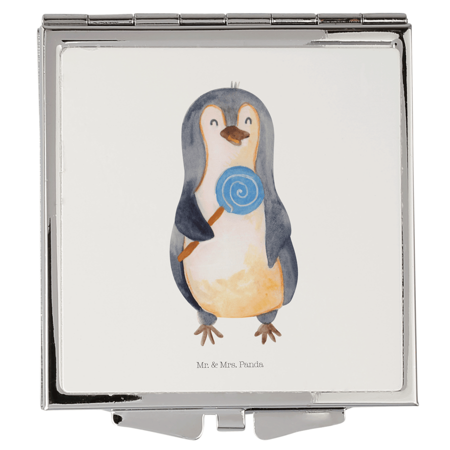Handtaschenspiegel quadratisch Pinguin Lolli - ohne Spruch - Weiß