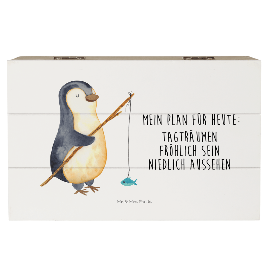 Holzkiste Pinguin Angler Holzkiste, Kiste, Schatzkiste, Truhe, Schatulle, XXL, Erinnerungsbox, Erinnerungskiste, Dekokiste, Aufbewahrungsbox, Pinguin, Pinguine, Angeln, Angler, Tagträume, Hobby, Plan, Planer, Tagesplan, Neustart, Motivation, Geschenk, Freundinnen, Geschenkidee, Urlaub, Wochenende