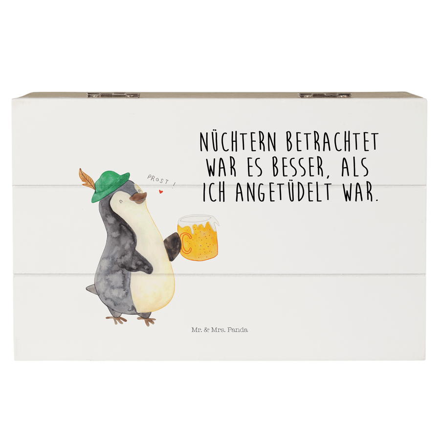 Holzkiste Pinguin Bier - 19 x 12 cm - mit Spruch - Weiß
