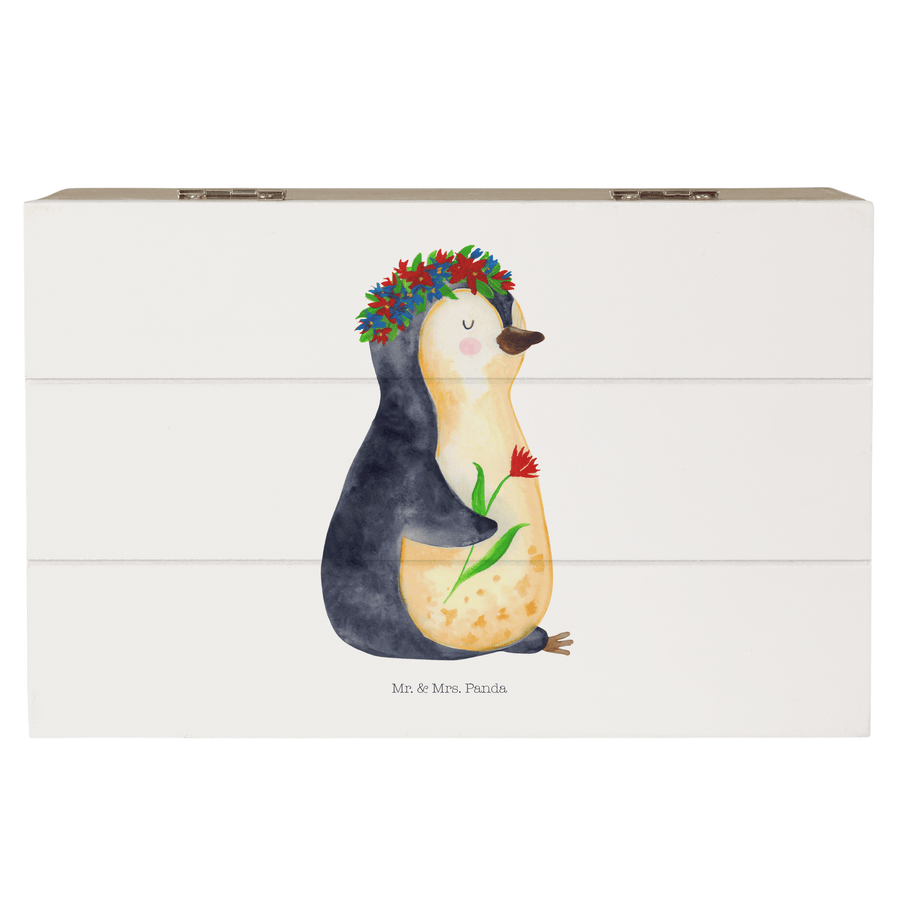 Holzkiste Pinguin Blumenkranz - 19 x 12 cm - ohne Spruch - Weiß