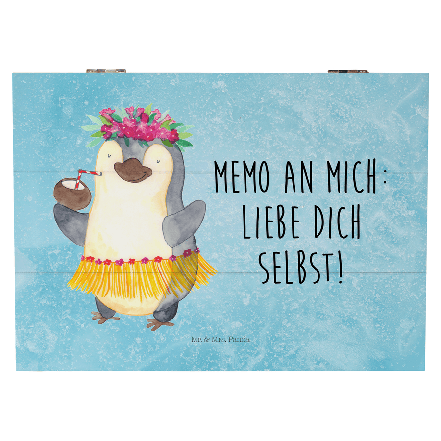 Holzkiste Pinguin Kokosnuss - 25 x 18 cm - mit Spruch - Eisblau