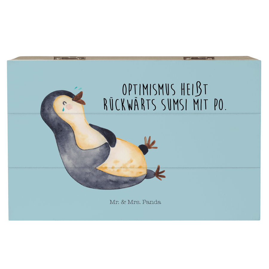 Holzkiste Pinguin lachend - 19 x 12 cm - mit Spruch - Eisblau