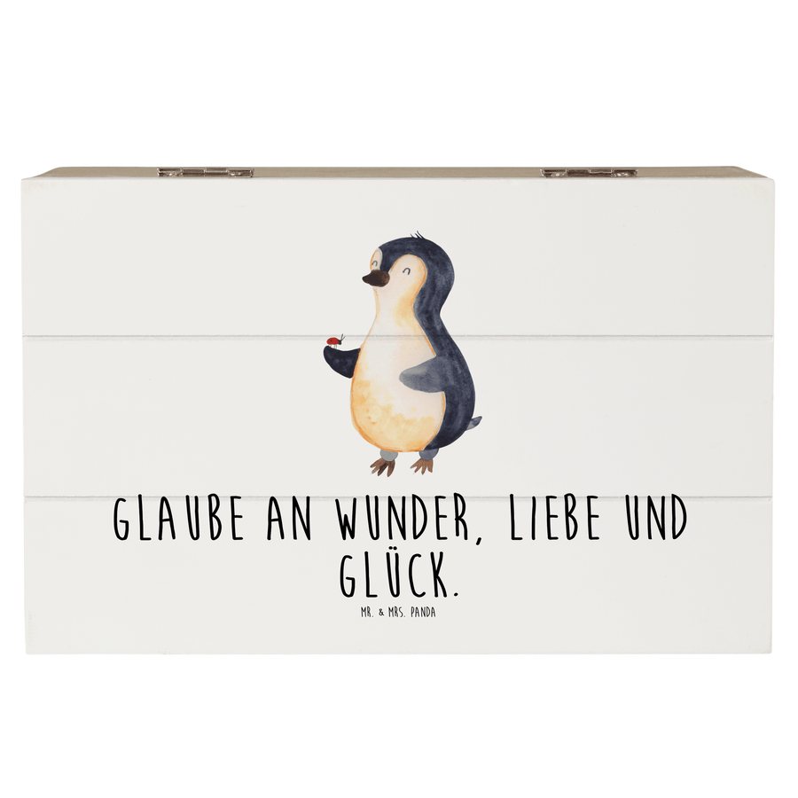 Holzkiste Pinguin Marienkäfer - 19 x 12 cm - mit Spruch - Weiß