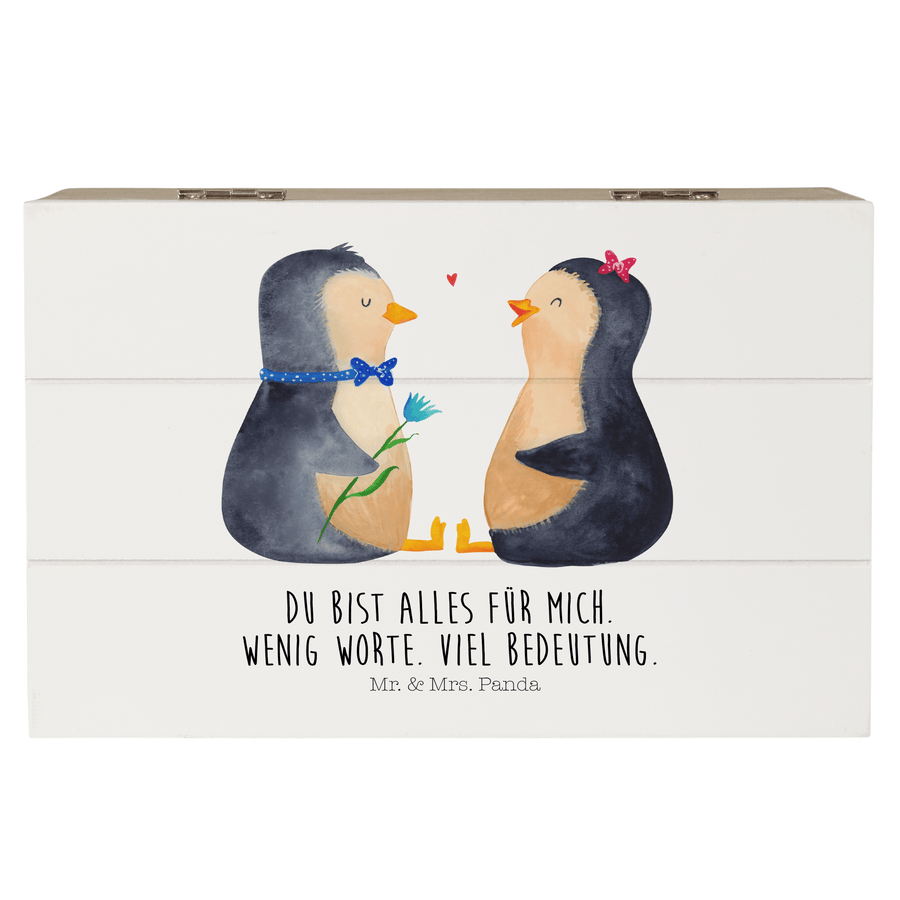 Holzkiste Pinguin Pärchen - 19 x 12 cm - mit Spruch - Weiß