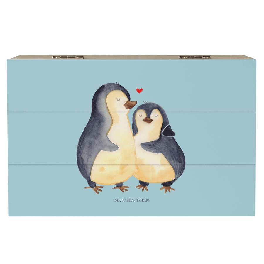 Holzkiste Pinguin umarmend - 19 x 12 cm - ohne Spruch - Eisblau