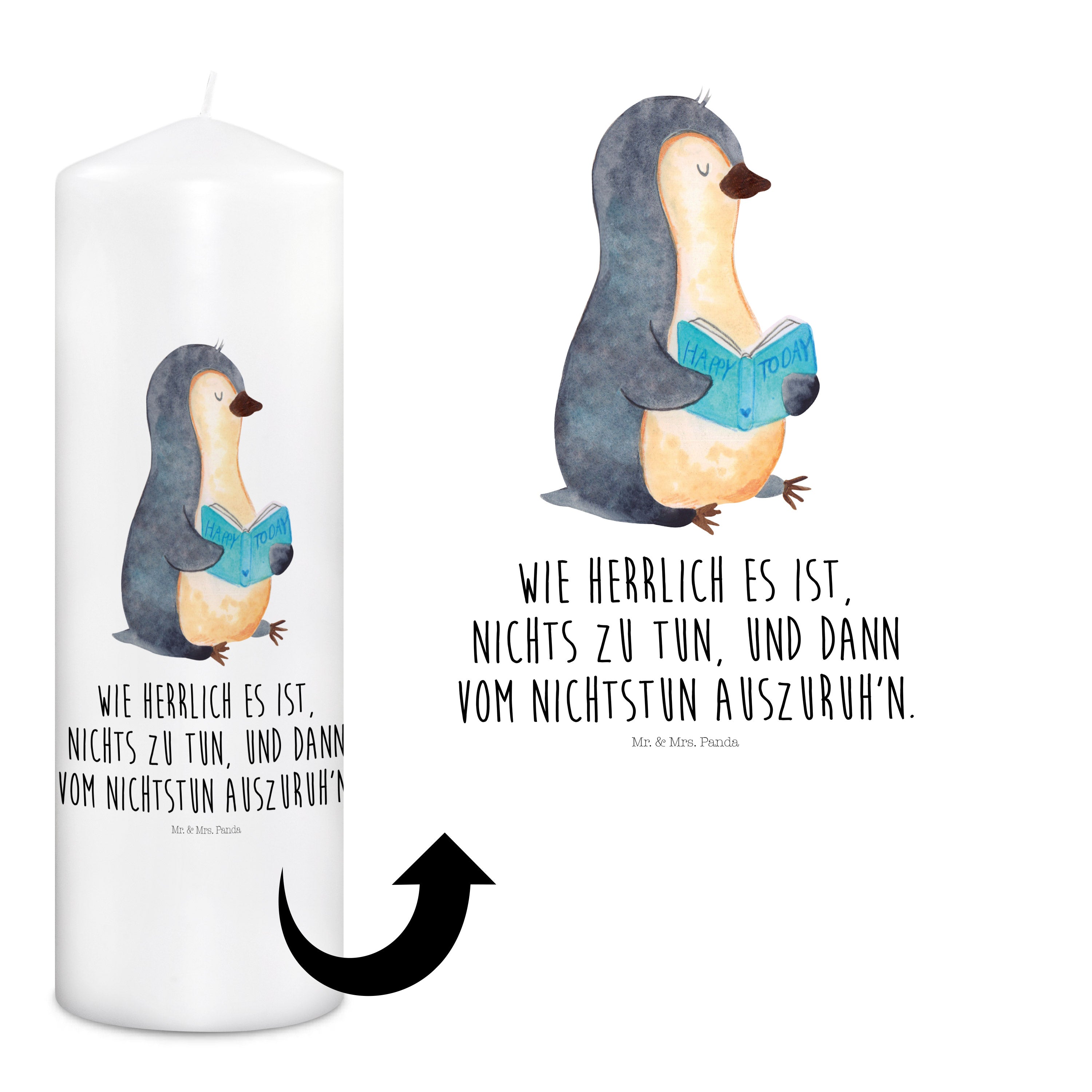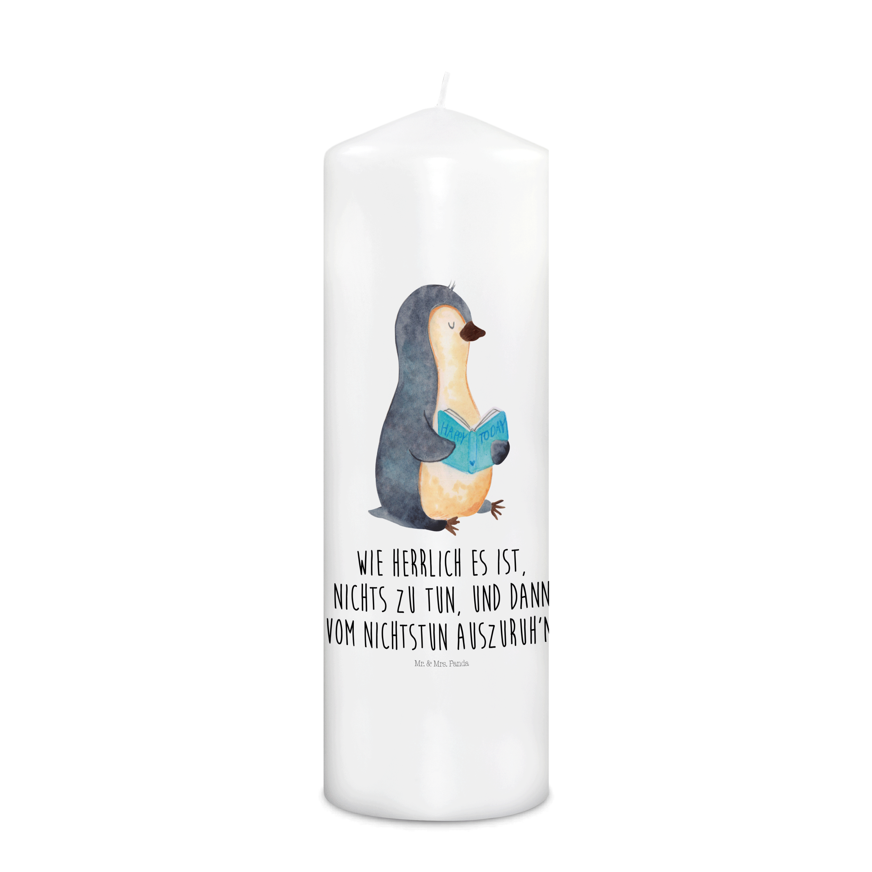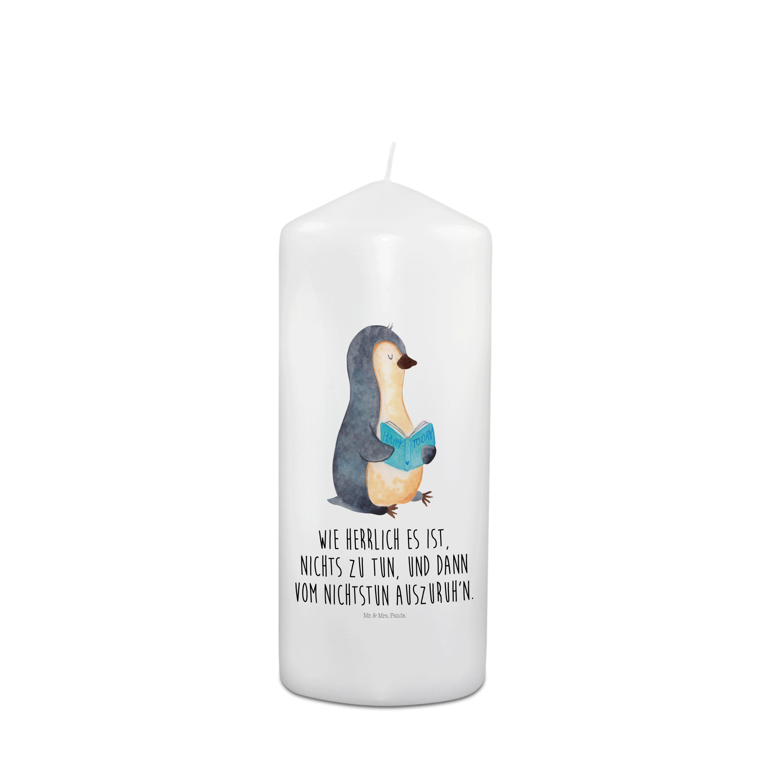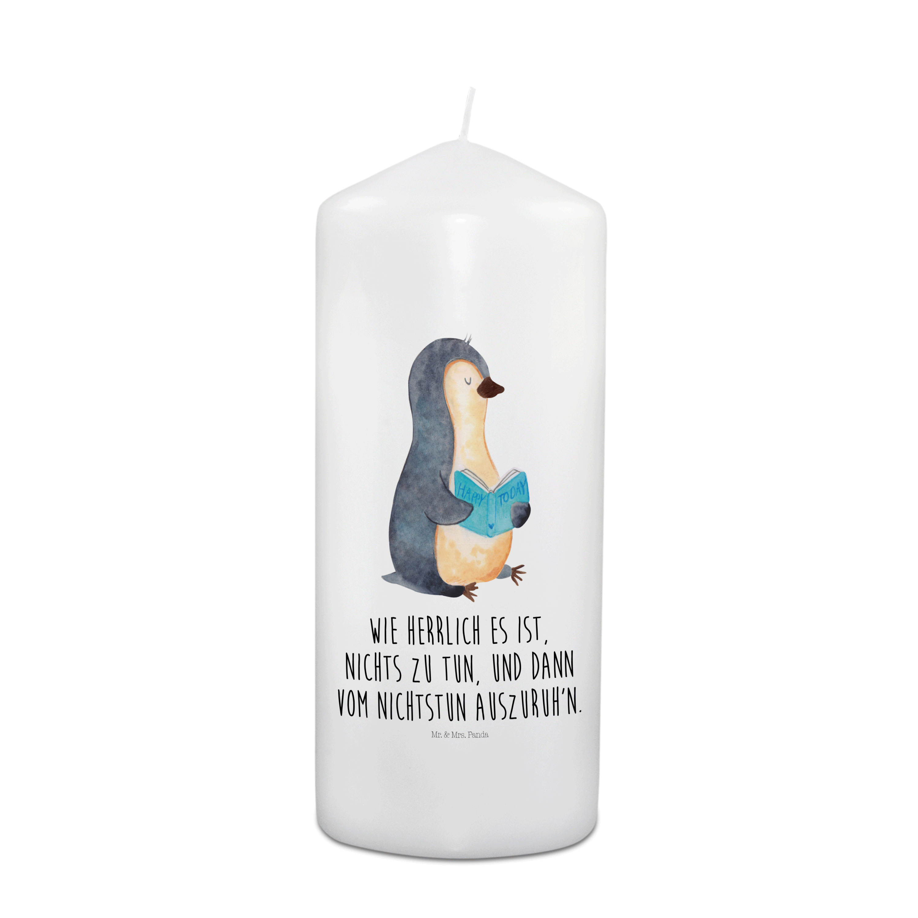 Kerze Pinguin Buch - 15 x 7 cm - mit Spruch