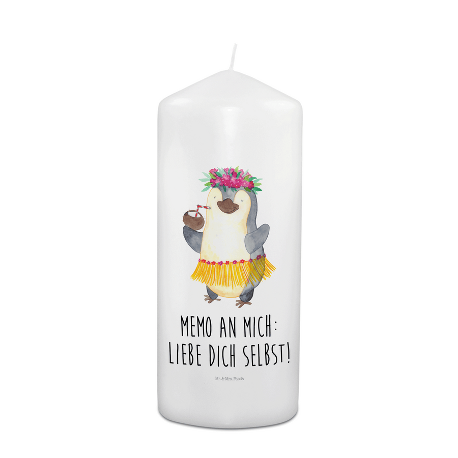 Kerze Pinguin Kokosnuss - 19 x 8 cm - mit Spruch