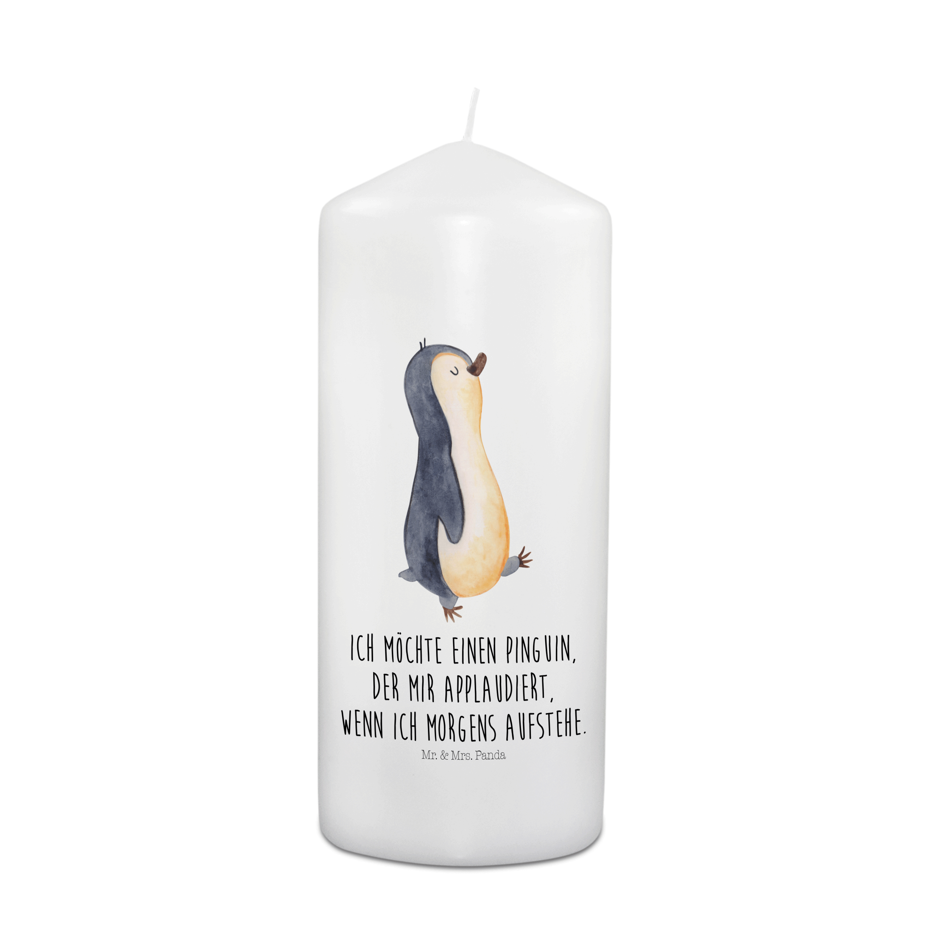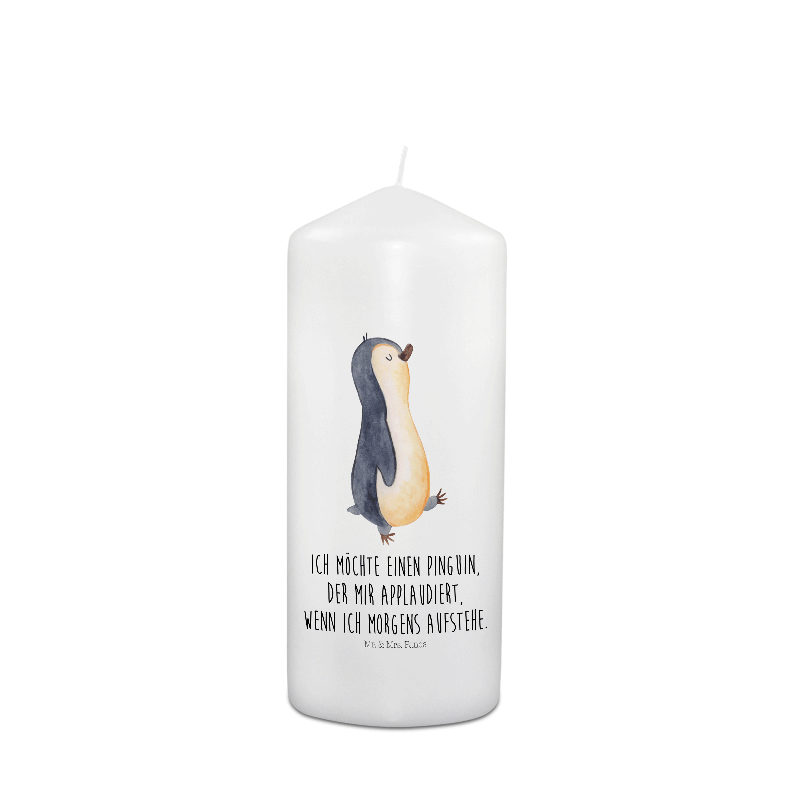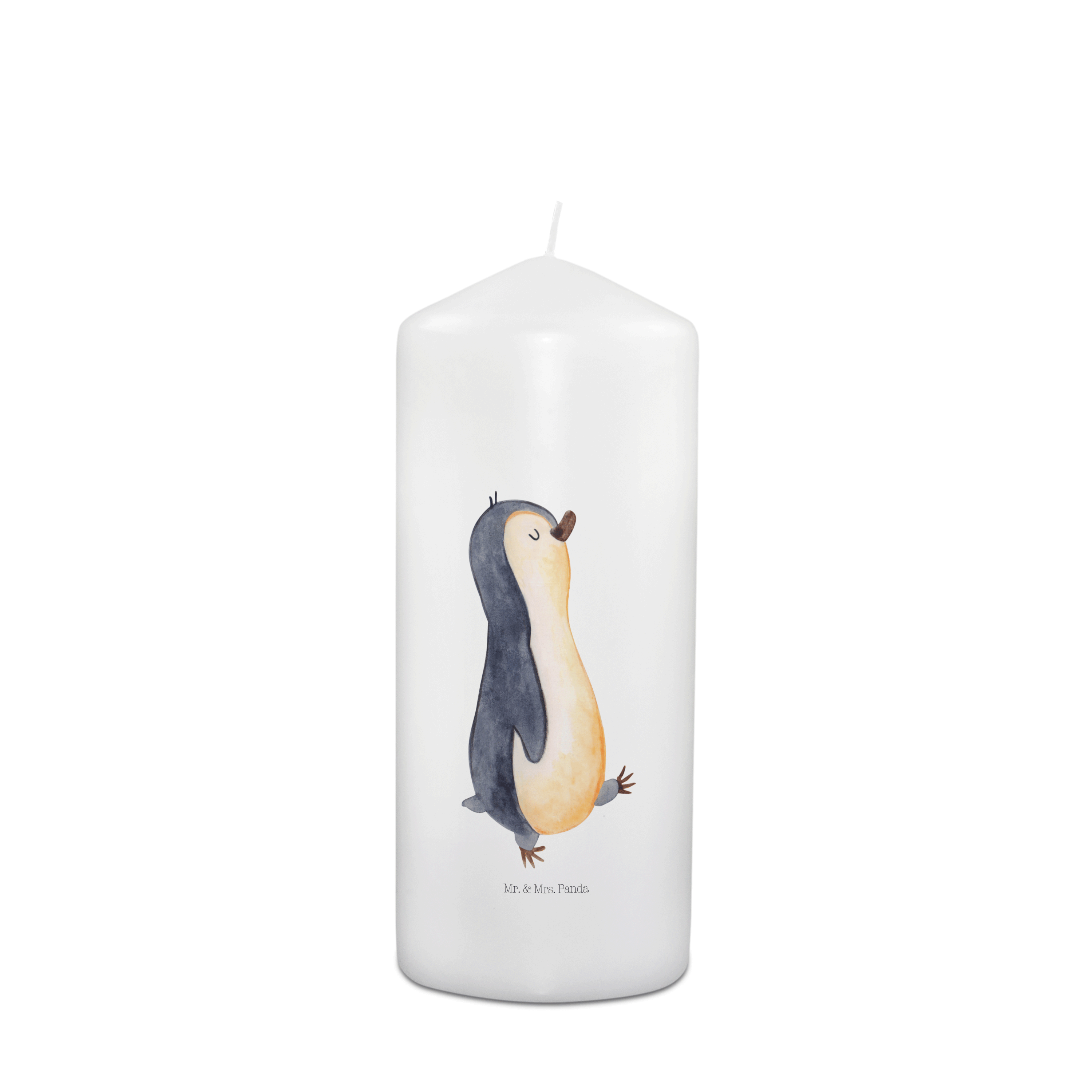 Kerze Pinguin marschierend - 15 x 7 cm - mit Spruch
