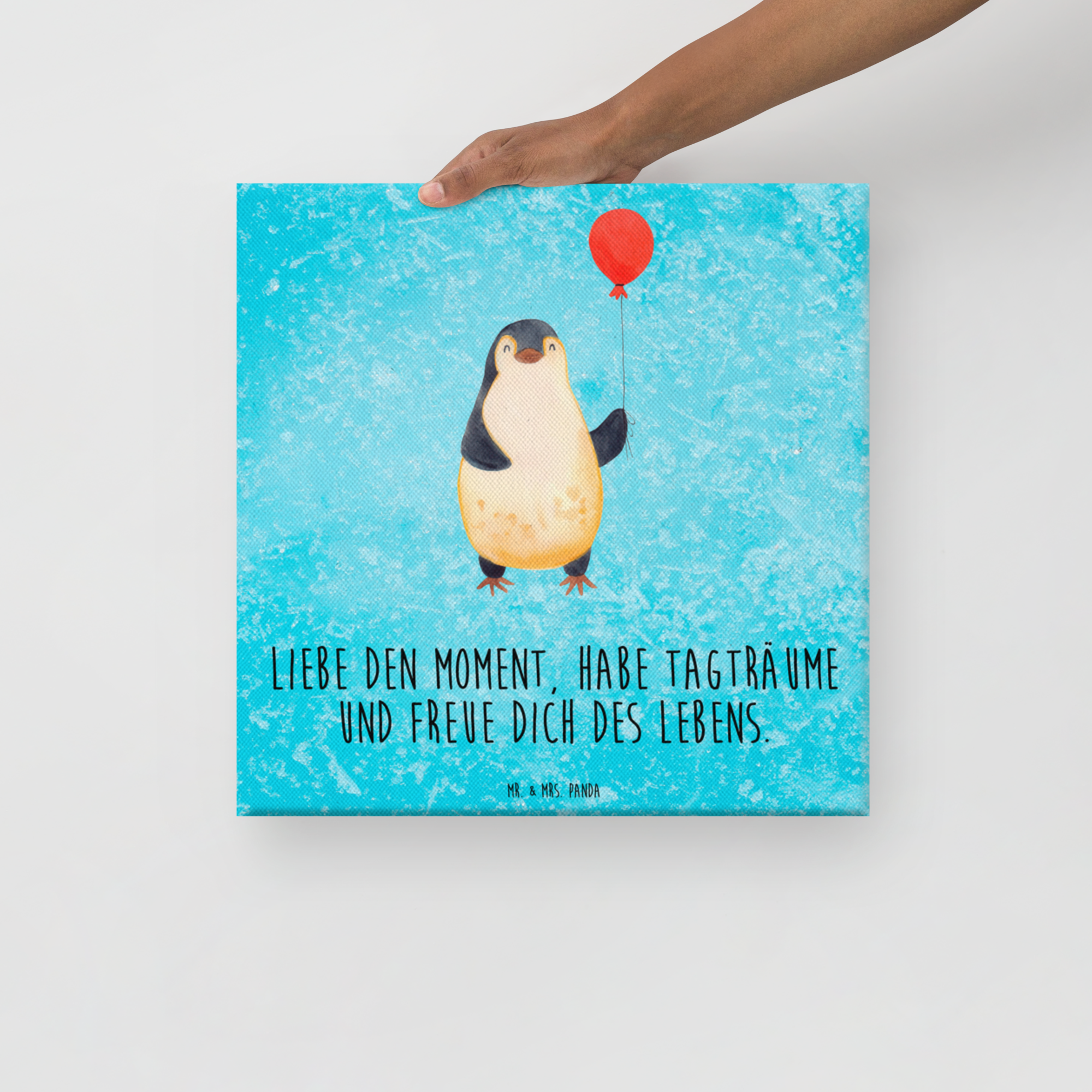 Leinwand Bild Pinguin Luftballon - 40 x 40 cm - mit Spruch
