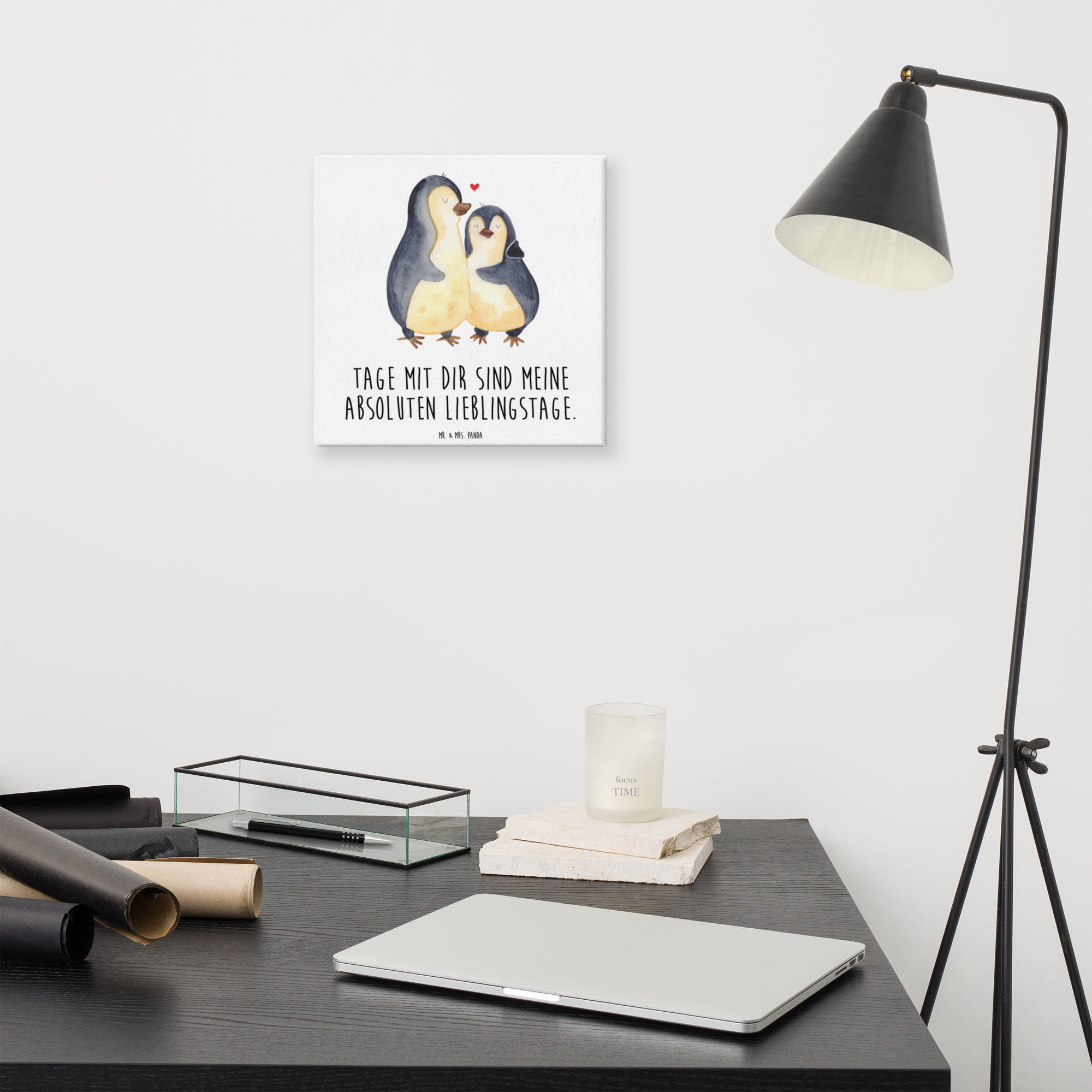 Leinwand Bild Pinguin umarmend - 40 x 40 cm - mit Spruch