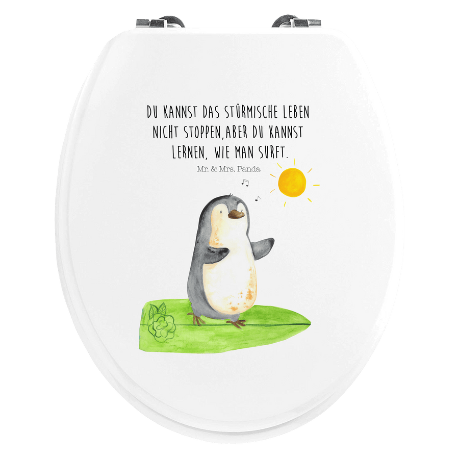 Motiv WC Sitz Pinguin Surfer - mit Spruch - Weiß