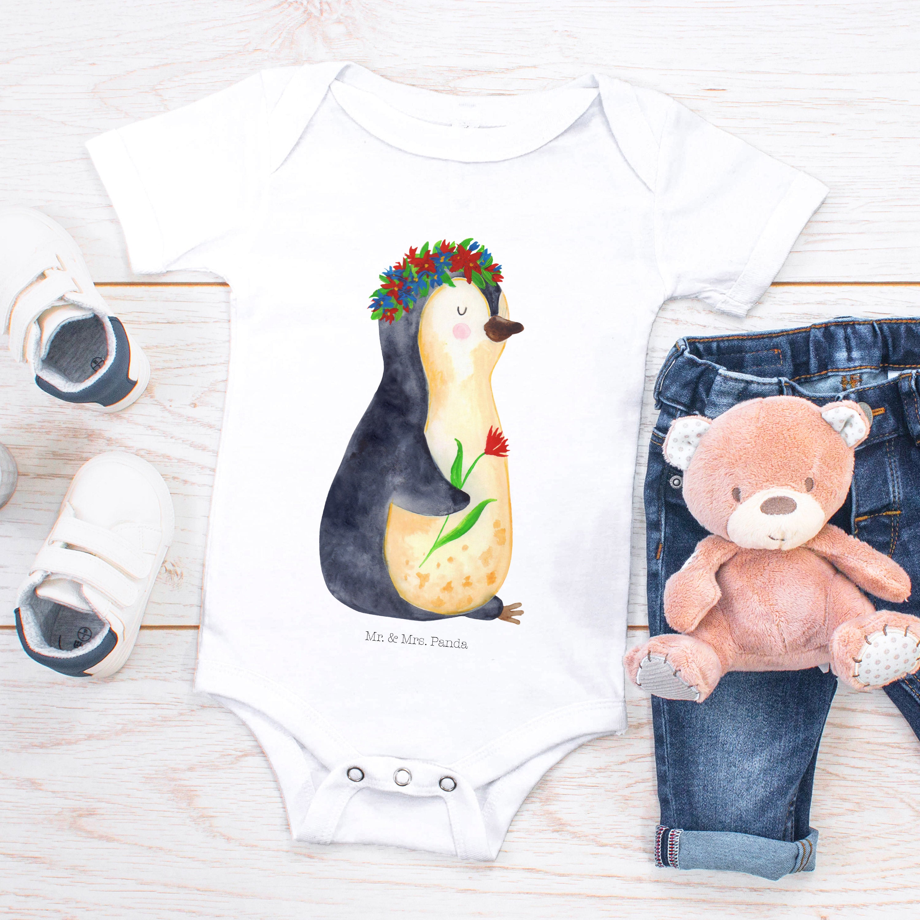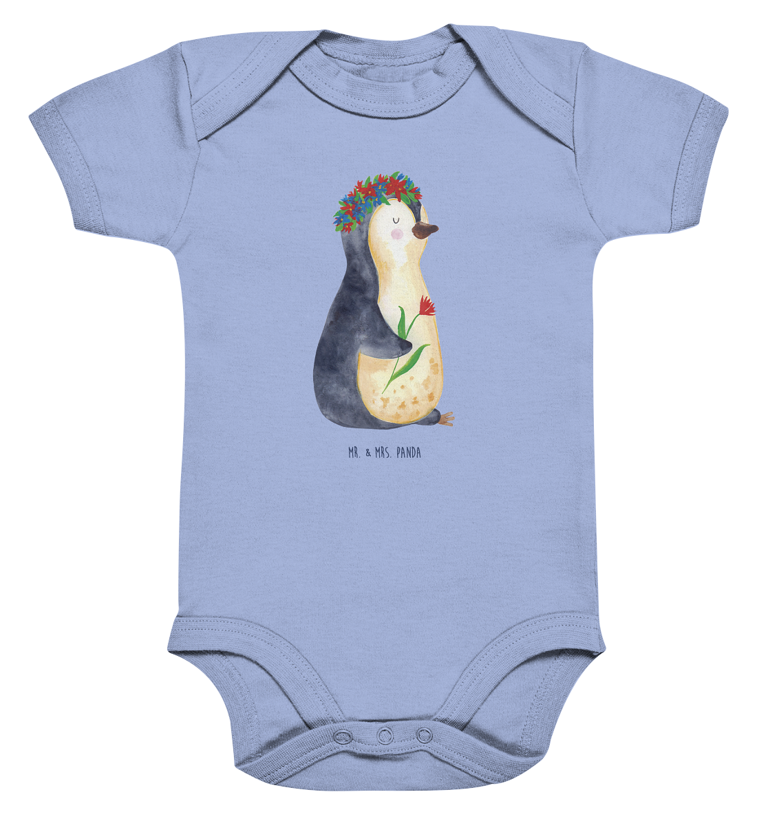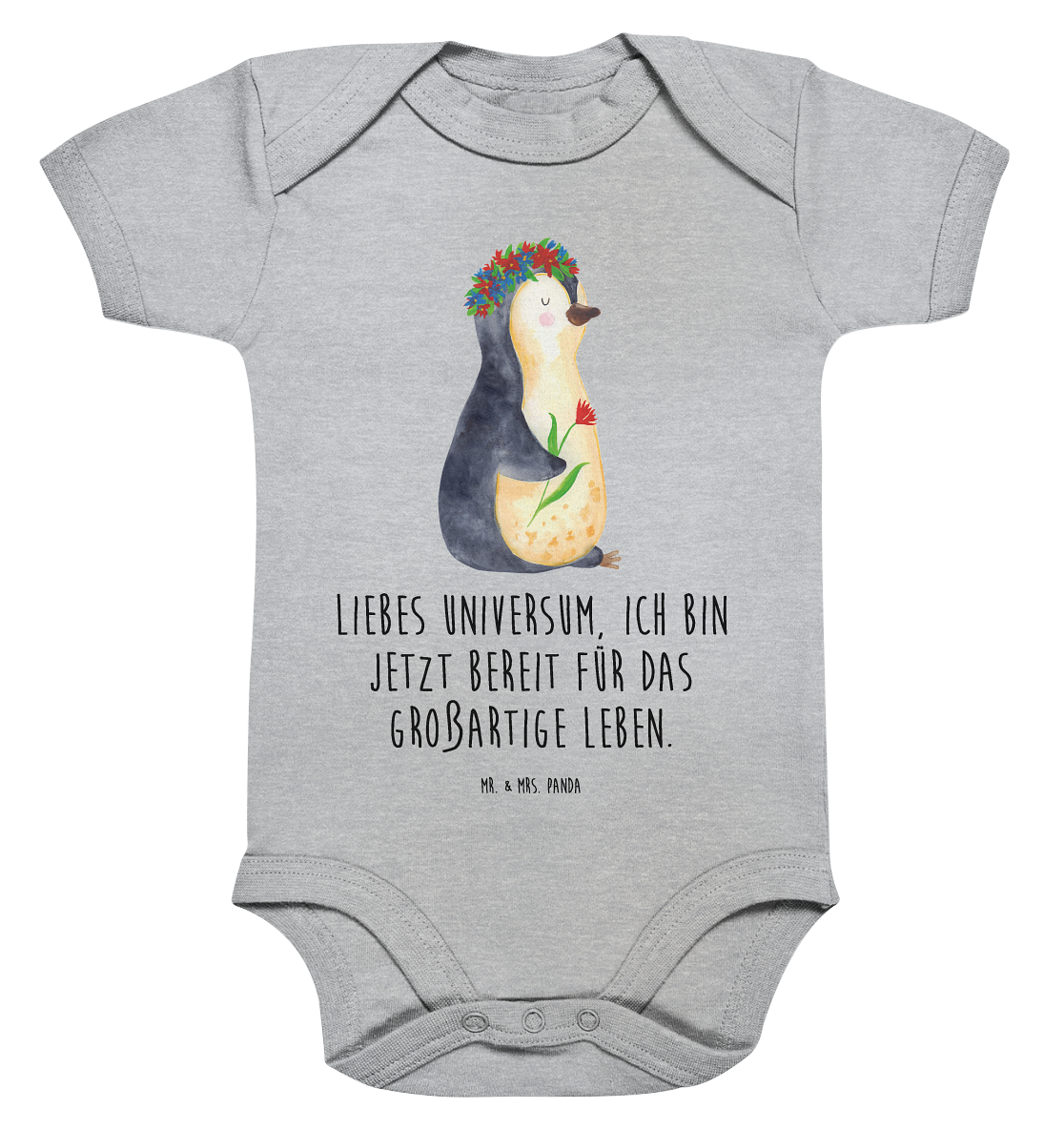 Organic Baby Body Pinguin Blumenkranz - 12. - 18. Monat - mit Spruch - Schwarz