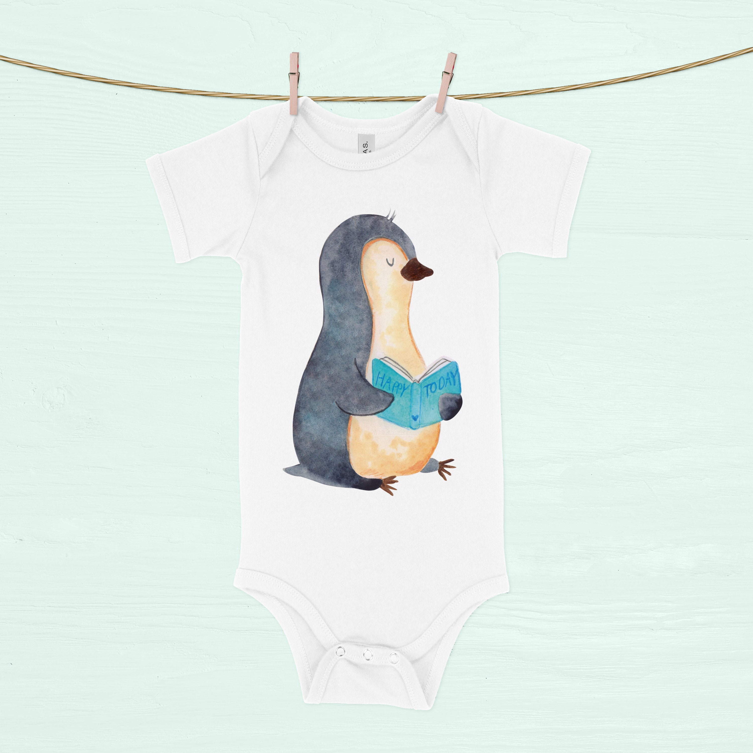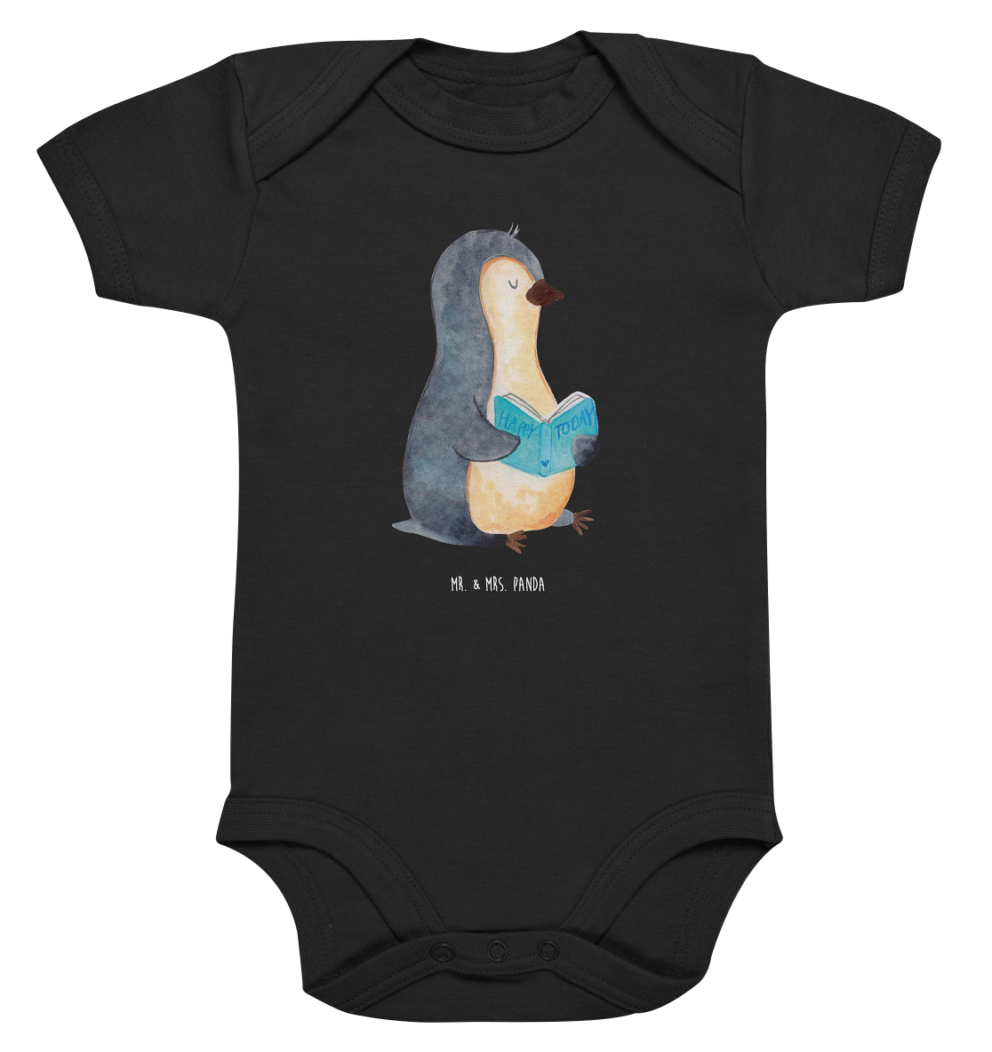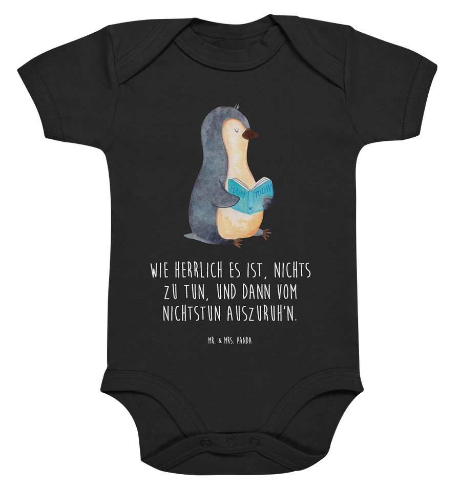 Organic Baby Body Pinguin Buch - 12. - 18. Monat - mit Spruch - Schwarz