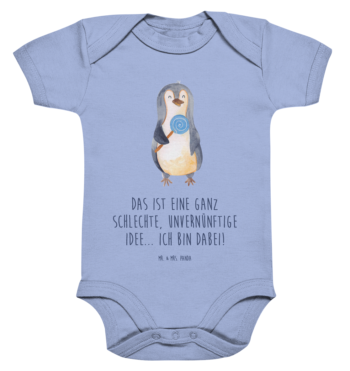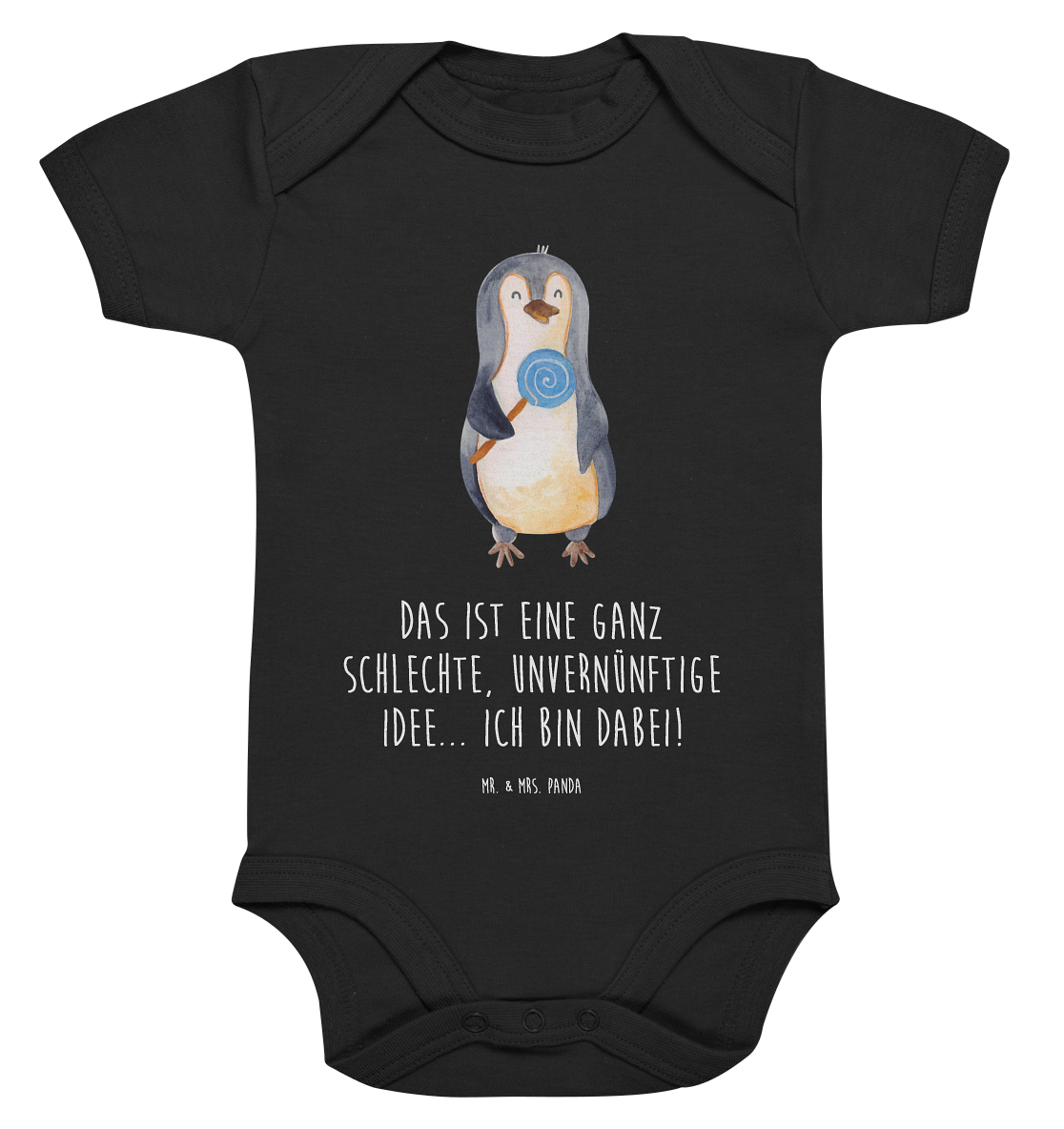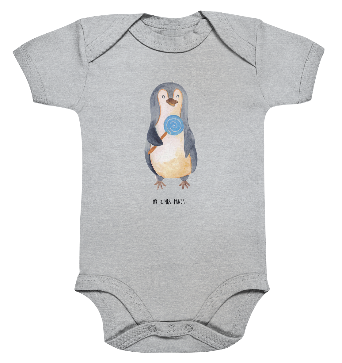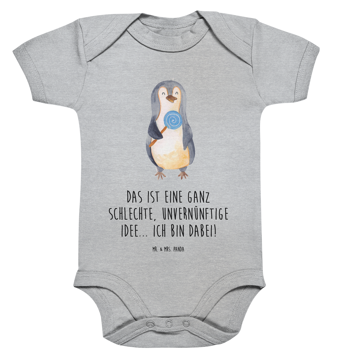 Organic Baby Body Pinguin Lolli - 3. - 6. Monat - mit Spruch - Heather Grey