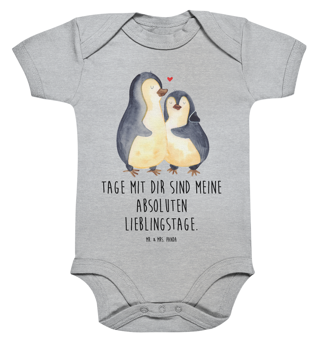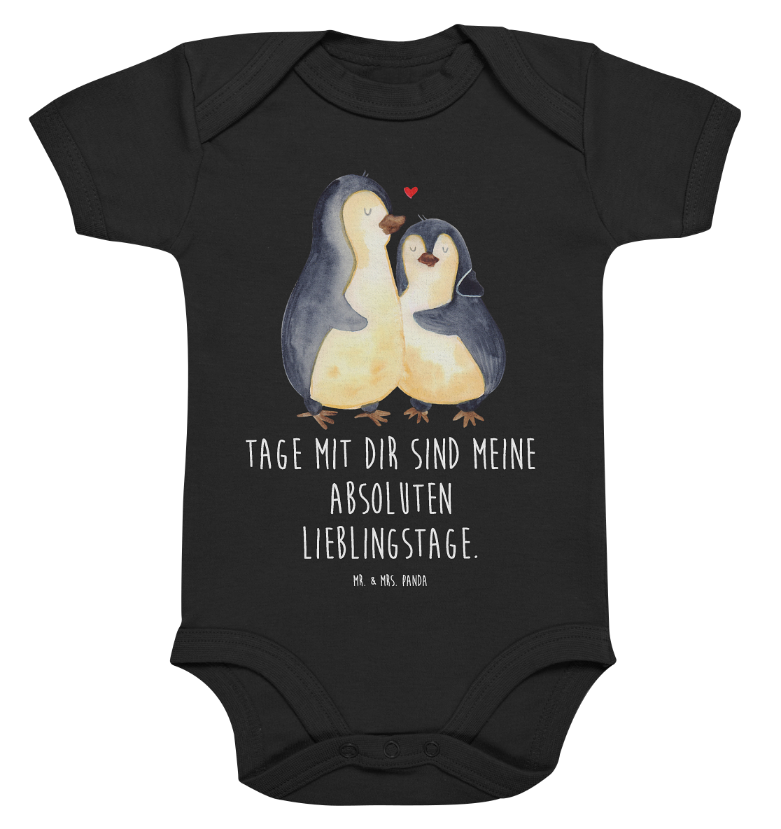Organic Baby Body Pinguin umarmend - 12. - 18. Monat - mit Spruch - Schwarz