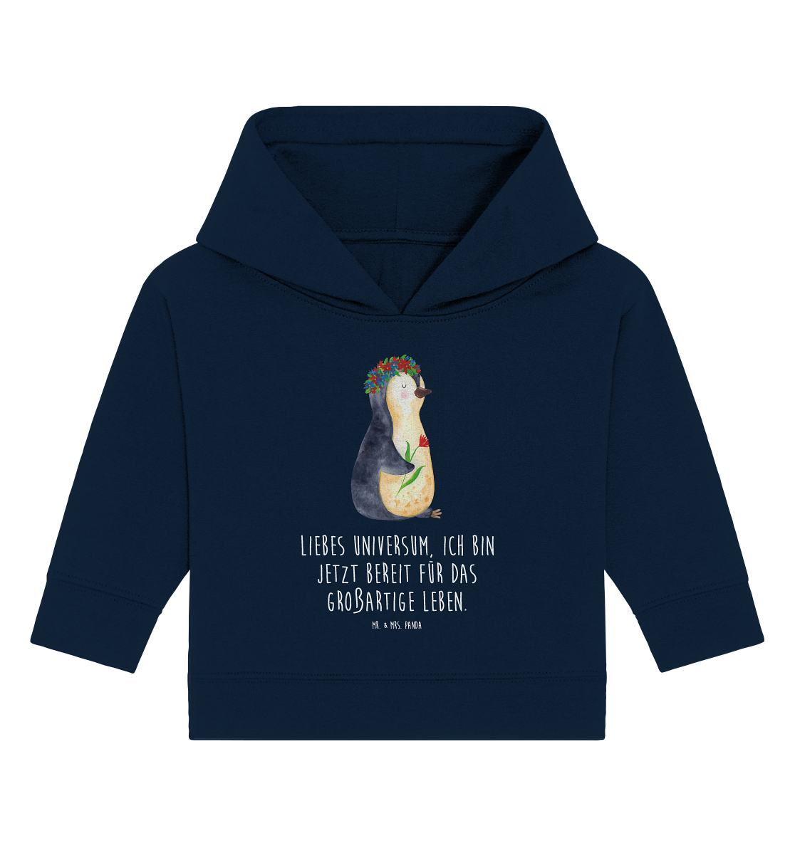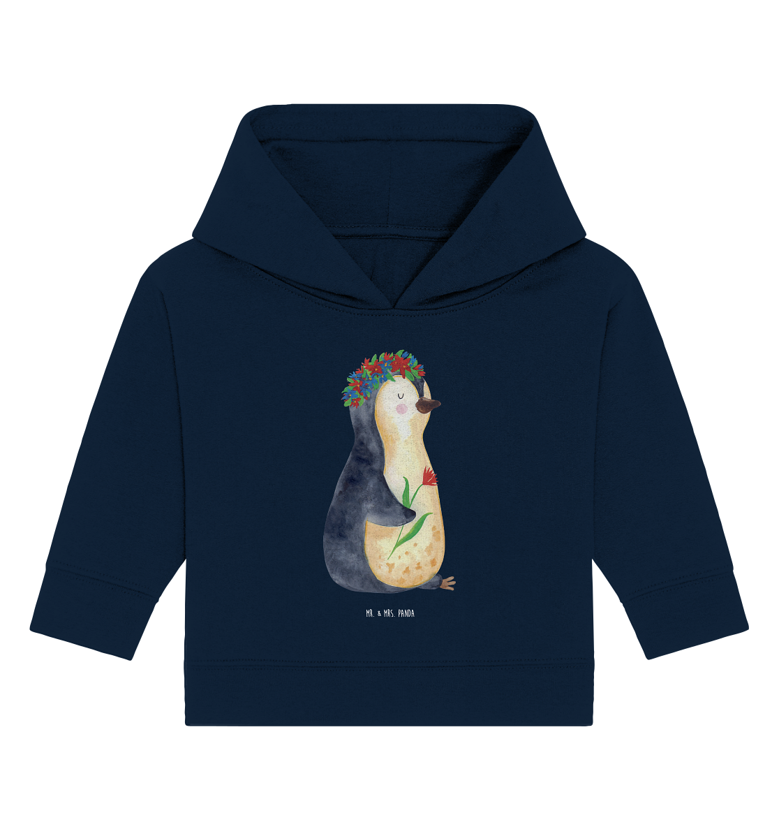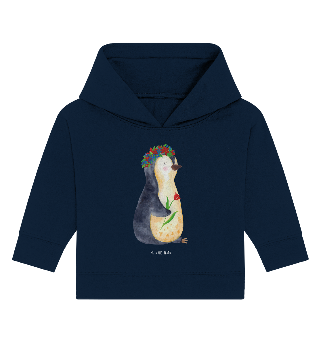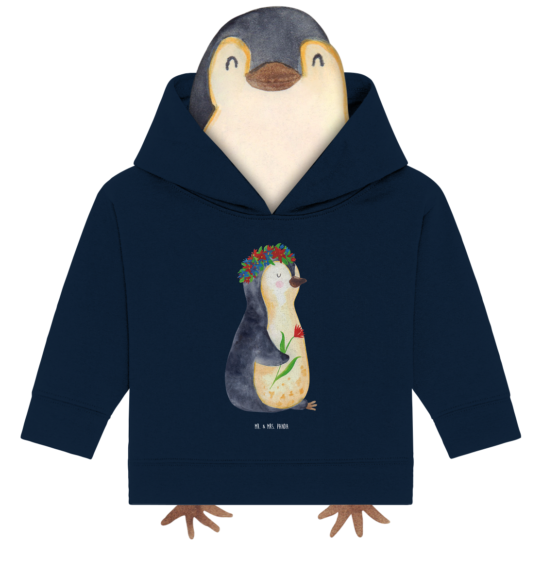 Organic Baby Hoodie Pinguin Blumenkranz - 12. - 18. Monat - mit Spruch - French Navy