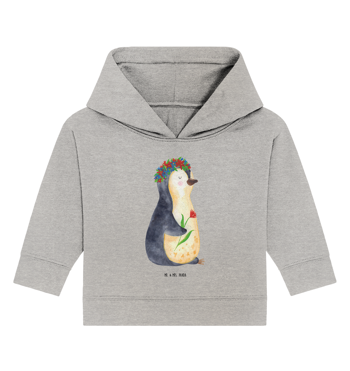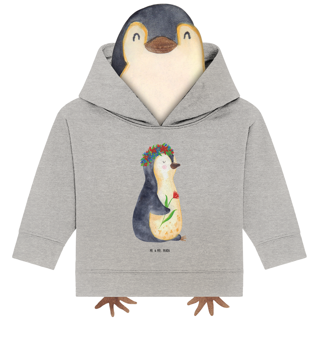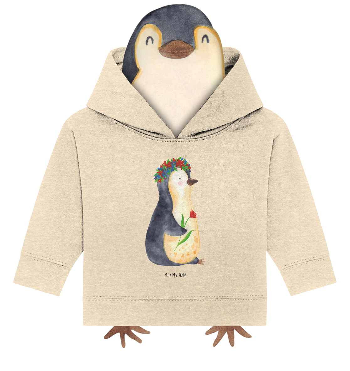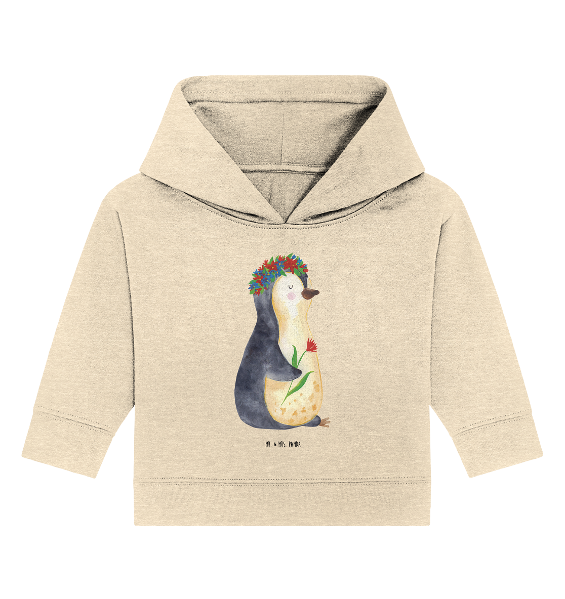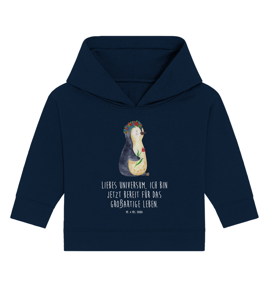 Organic Baby Hoodie Pinguin Blumenkranz - 12. - 18. Monat - mit Spruch - French Navy