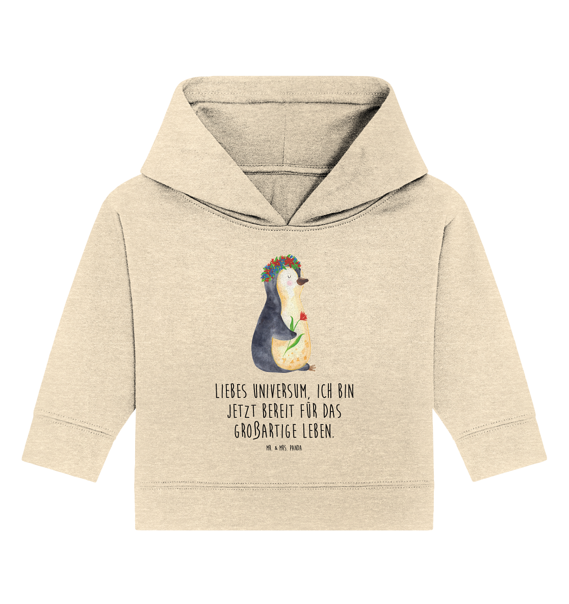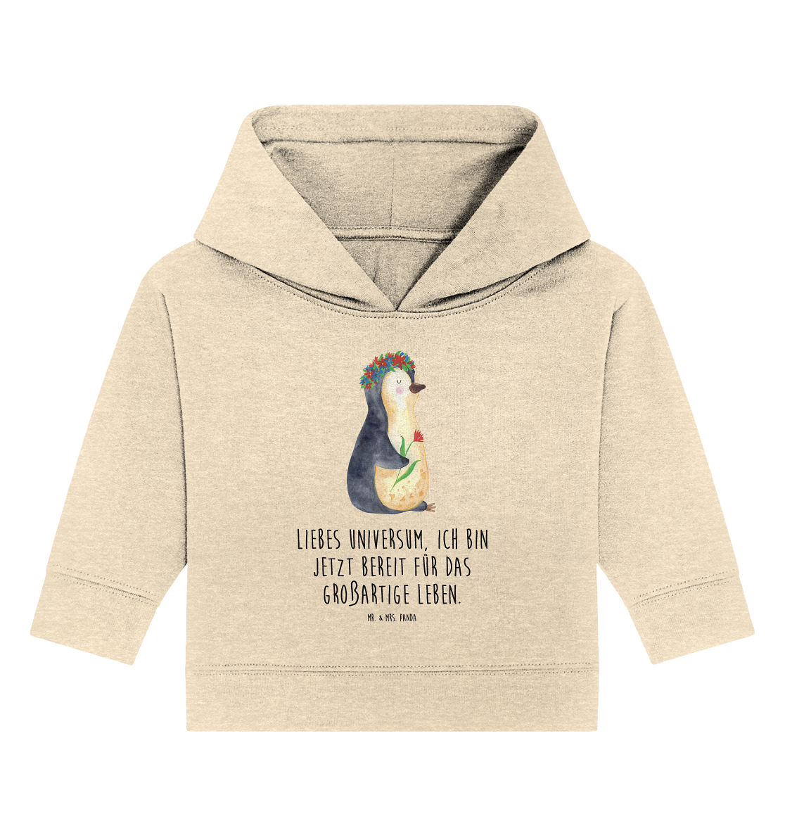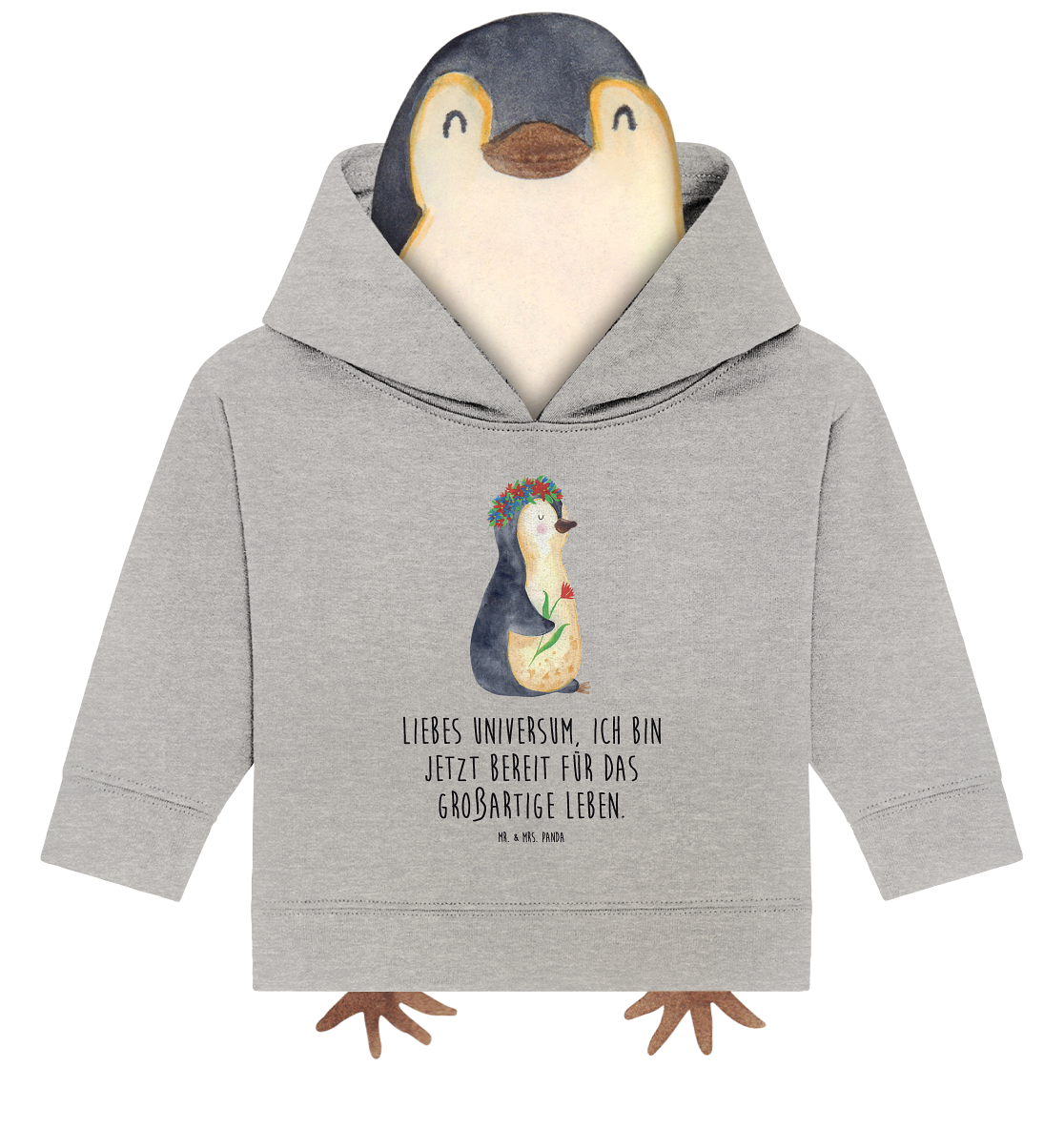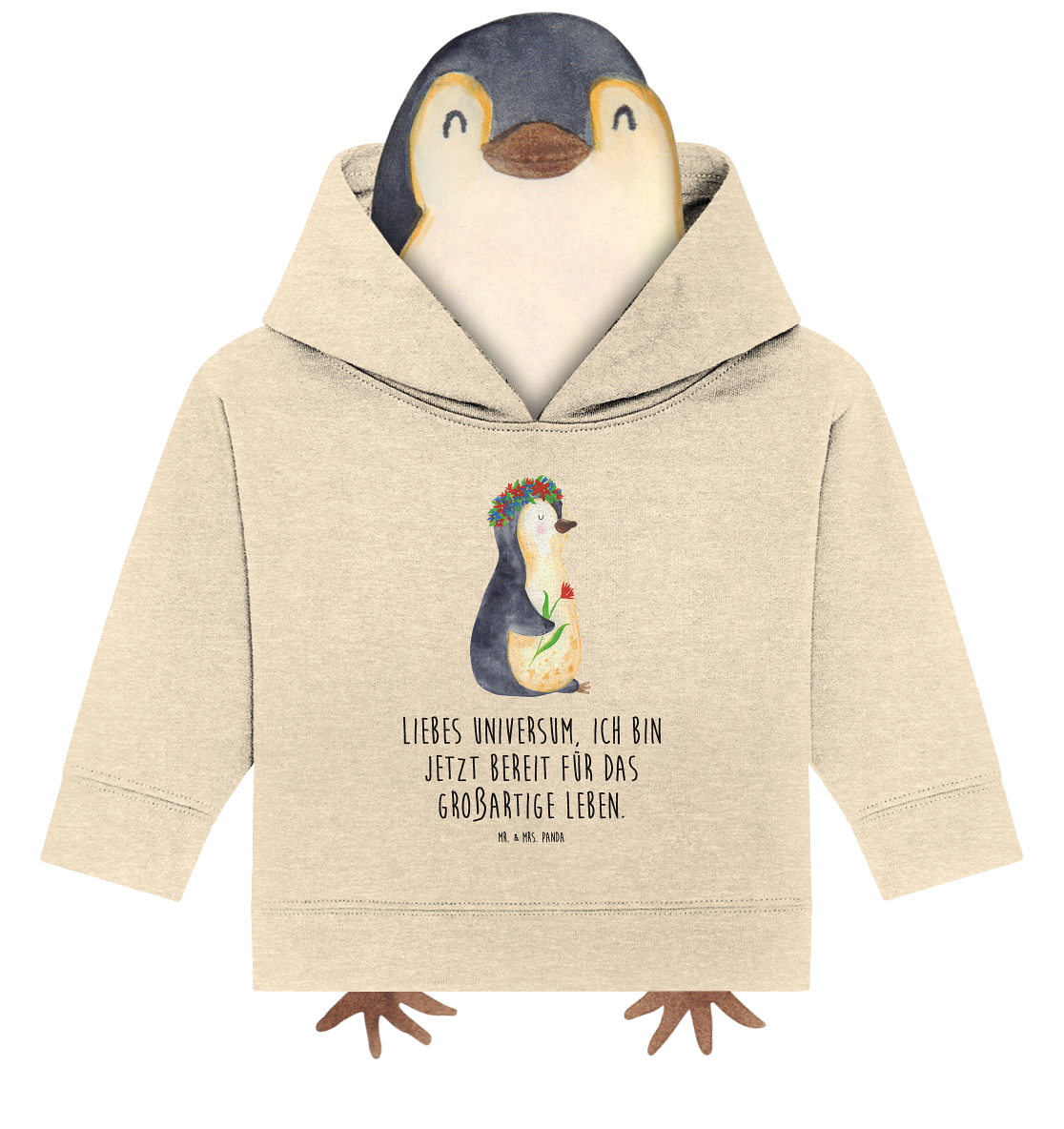 Organic Baby Hoodie Pinguin Blumenkranz - 12. - 18. Monat - mit Spruch - French Navy