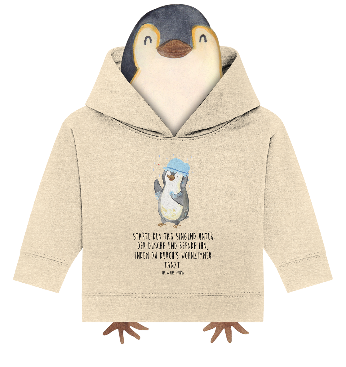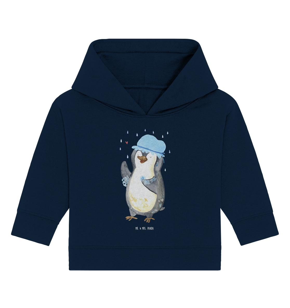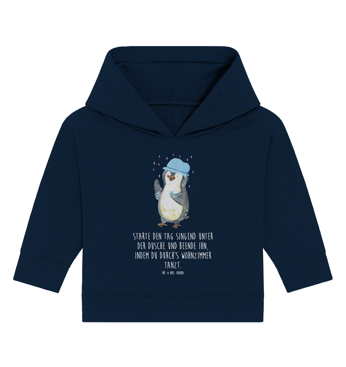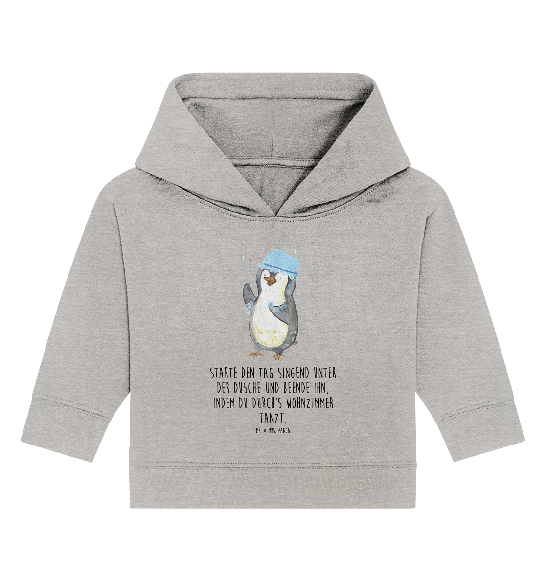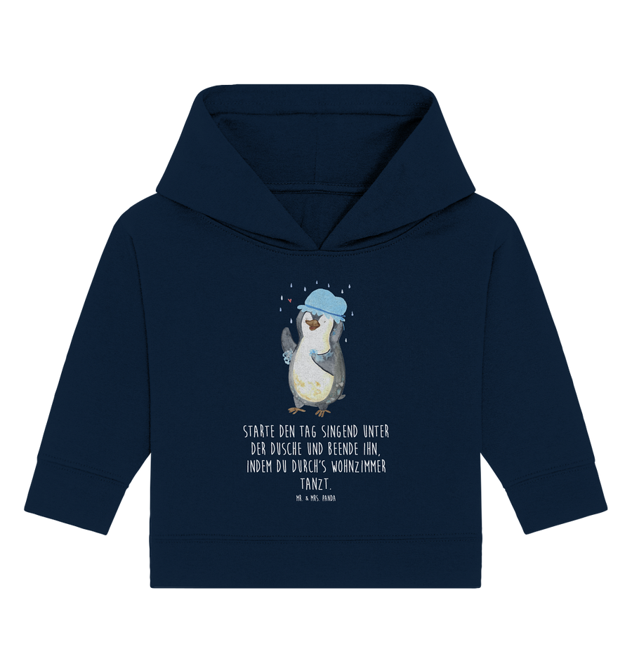 Organic Baby Hoodie Pinguin duscht Baby Kapuzenshirt, Baby Kapuzensweatshirt, Baby Hoodie, Baby Pullover, Pinguin, Pinguine, Dusche, duschen, Lebensmotto, Motivation, Neustart, Neuanfang, glücklich sein