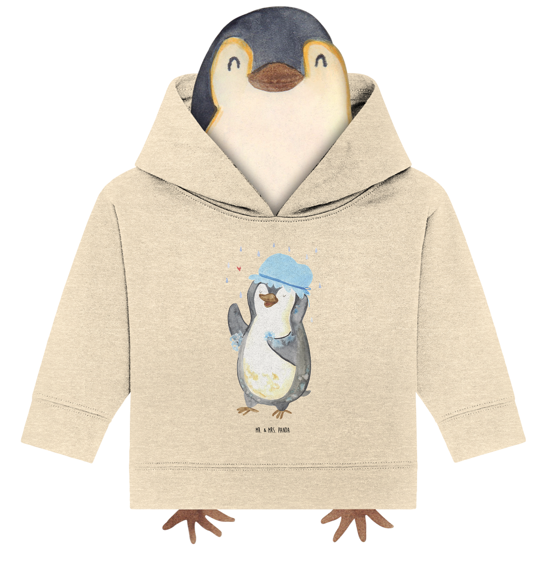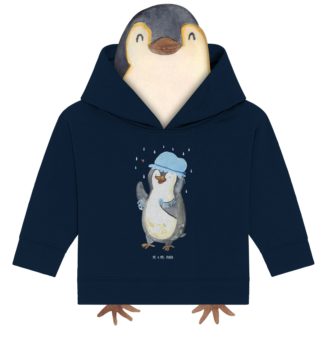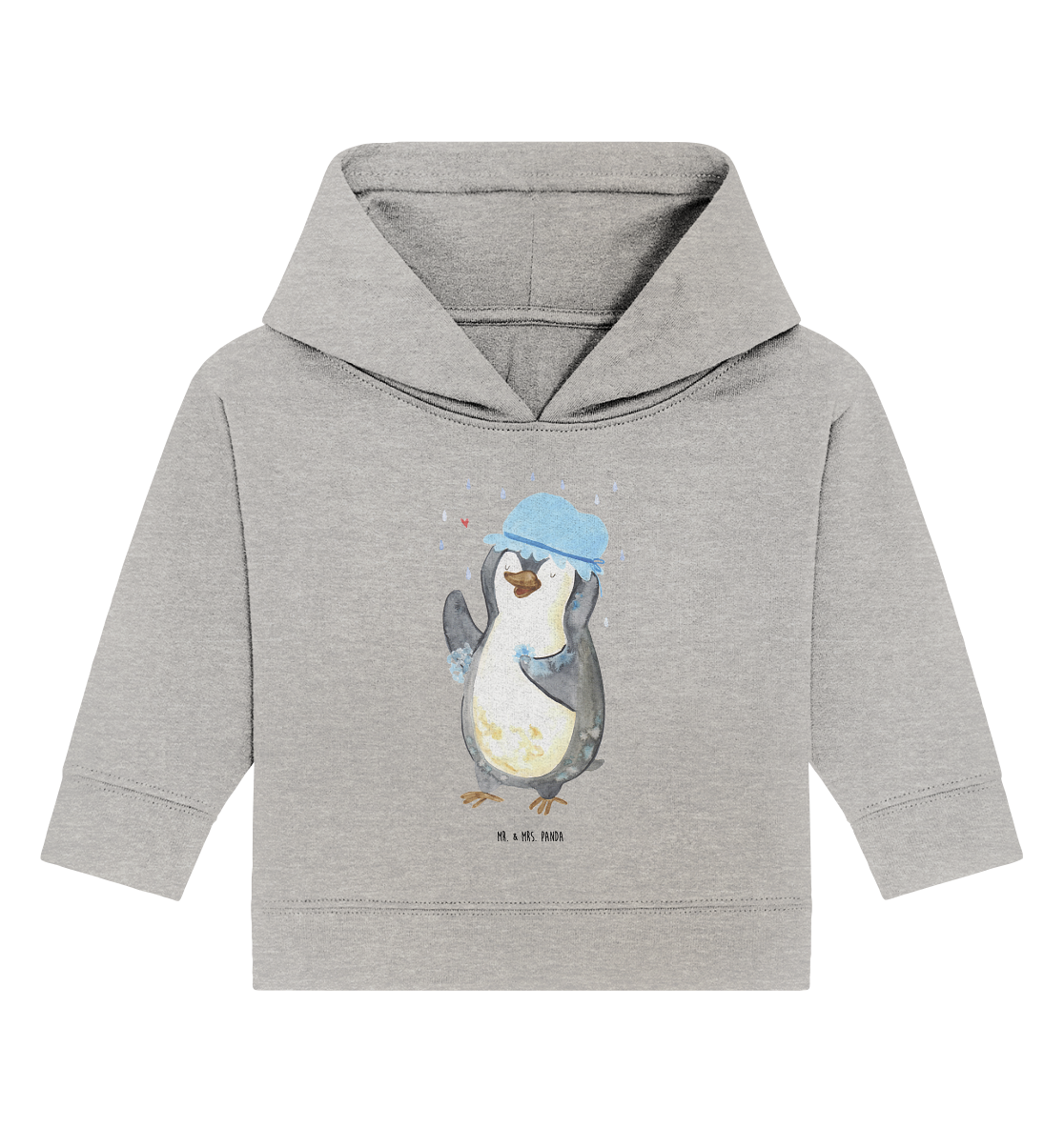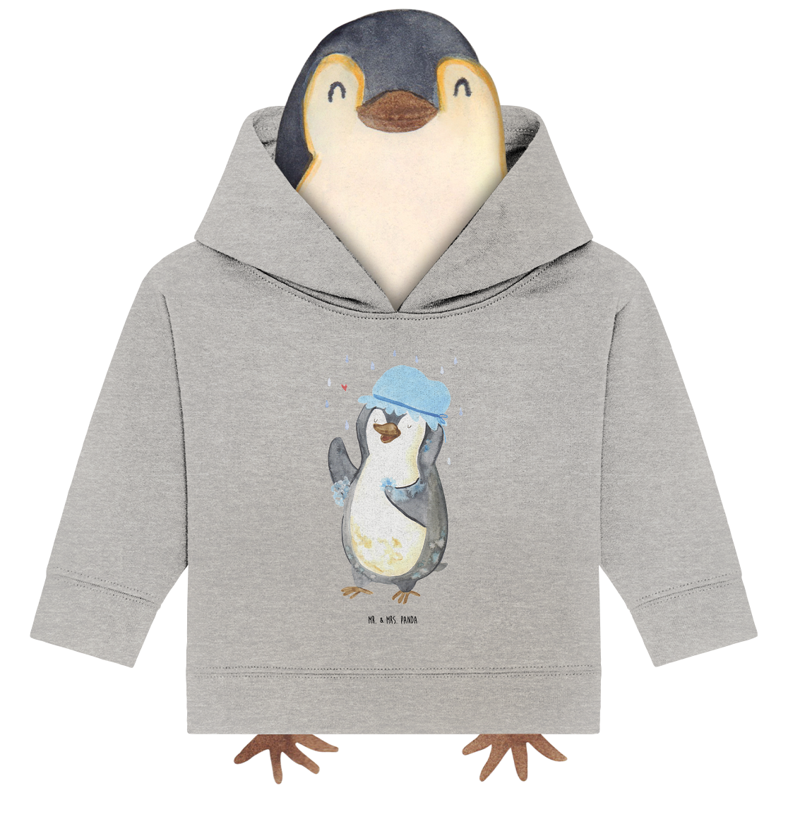 Organic Baby Hoodie Pinguin duscht Baby Kapuzenshirt, Baby Kapuzensweatshirt, Baby Hoodie, Baby Pullover, Pinguin, Pinguine, Dusche, duschen, Lebensmotto, Motivation, Neustart, Neuanfang, glücklich sein