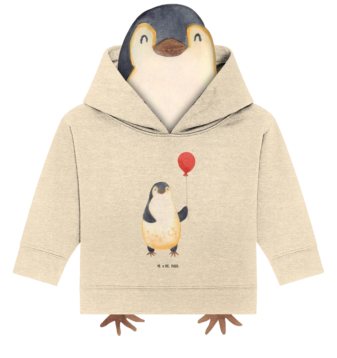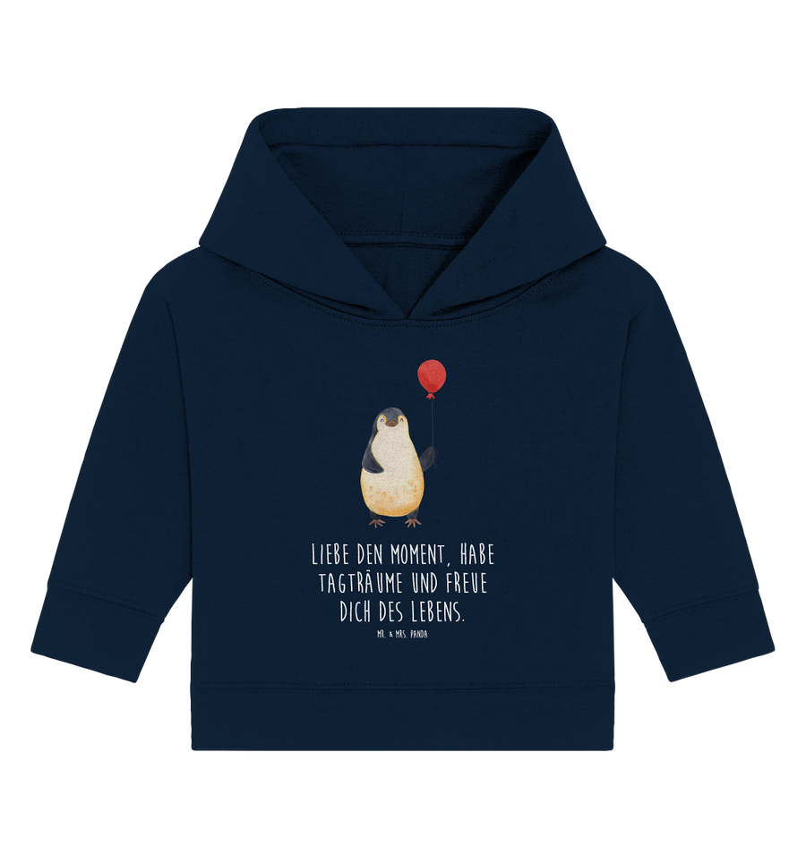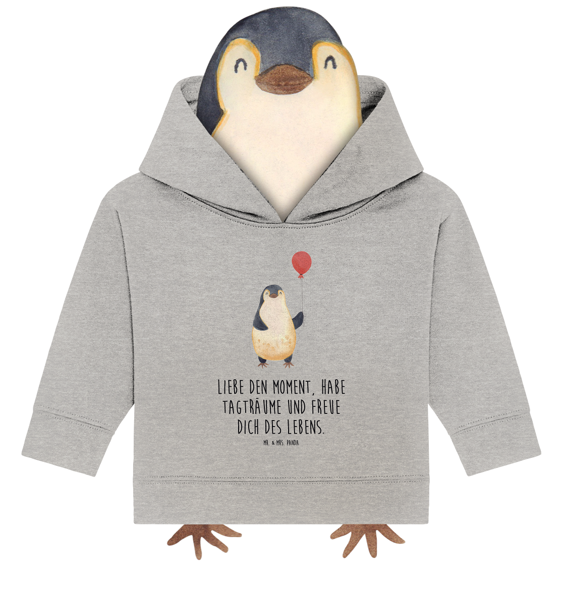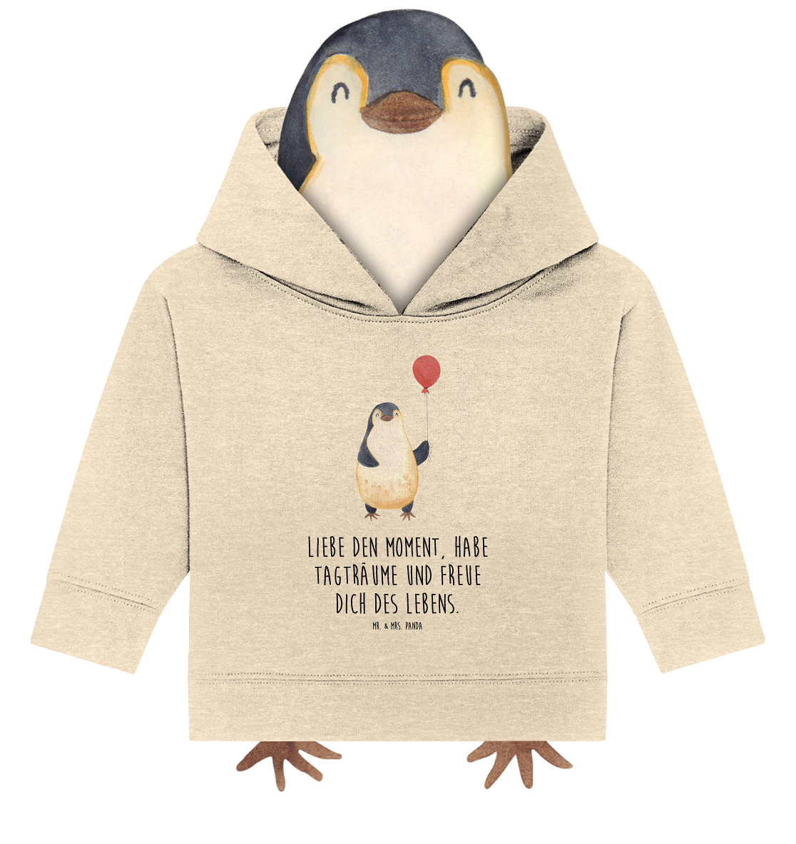 Organic Baby Hoodie Pinguin Luftballon Baby Kapuzenshirt, Baby Kapuzensweatshirt, Baby Hoodie, Baby Pullover, Pinguin, Pinguine, Luftballon, Tagträume, Lebenslust, Geschenk Freundin, Geschenkidee, beste Freundin, Motivation, Neustart, neues Leben, Liebe, Glück