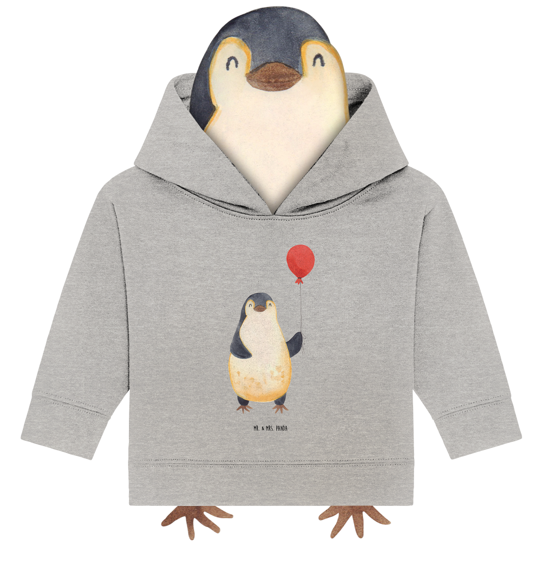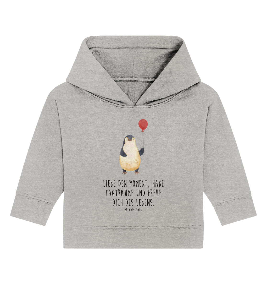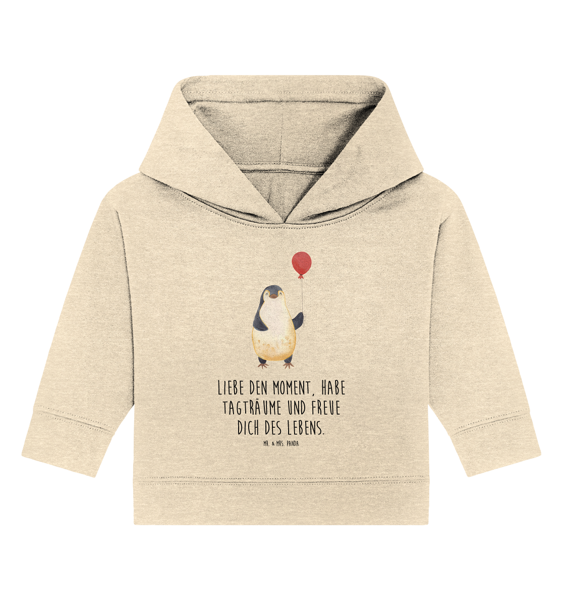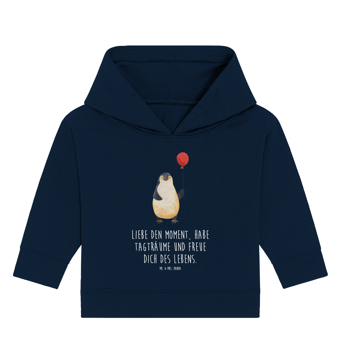 Organic Baby Hoodie Pinguin Luftballon Baby Kapuzenshirt, Baby Kapuzensweatshirt, Baby Hoodie, Baby Pullover, Pinguin, Pinguine, Luftballon, Tagträume, Lebenslust, Geschenk Freundin, Geschenkidee, beste Freundin, Motivation, Neustart, neues Leben, Liebe, Glück