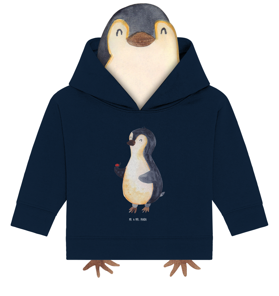Organic Baby Hoodie Pinguin Marienkäfer - 12. - 18. Monat - mit Spruch - French Navy