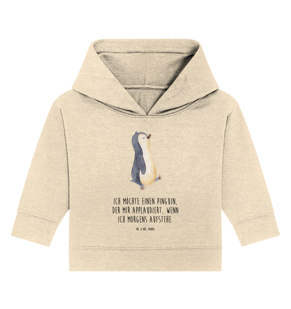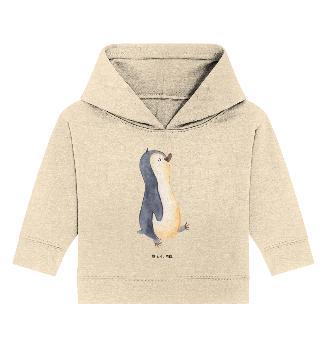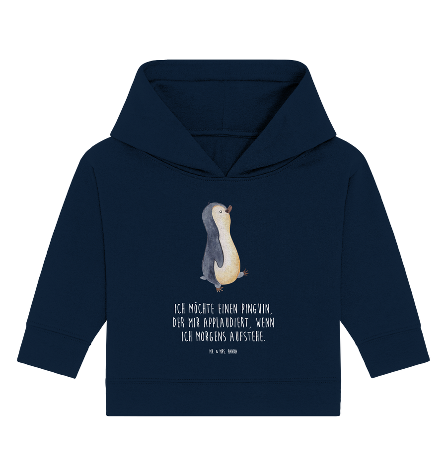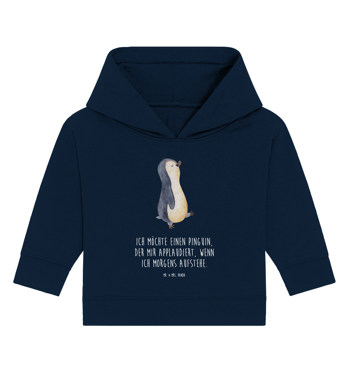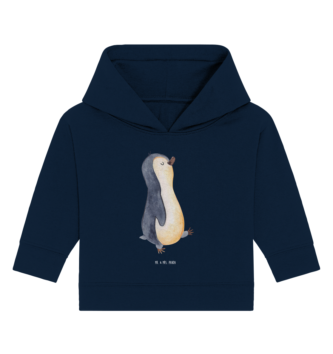 Organic Baby Hoodie Pinguin marschierend - 12. - 18. Monat - mit Spruch - French Navy