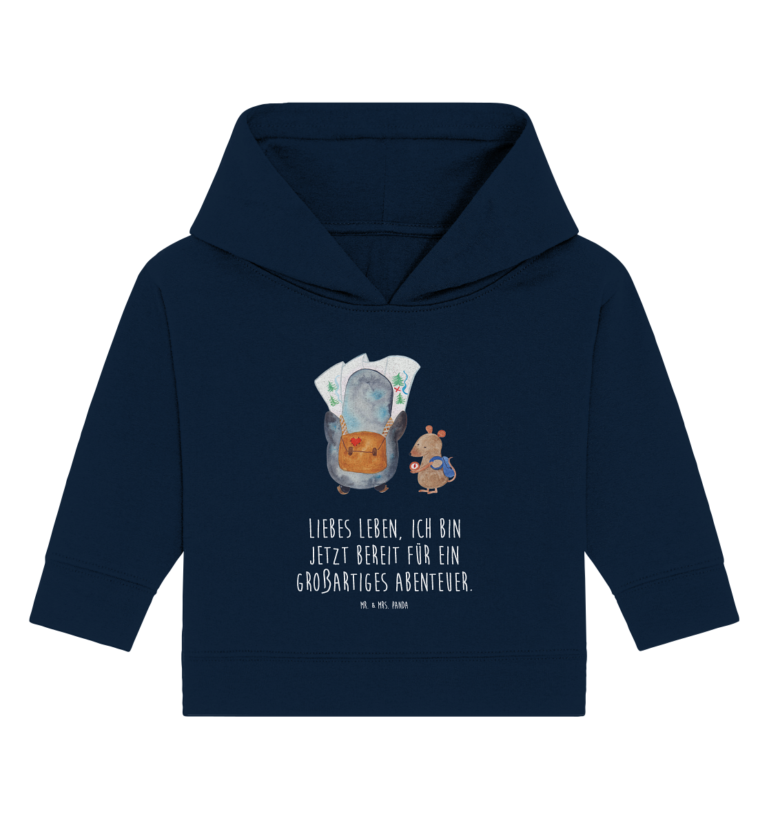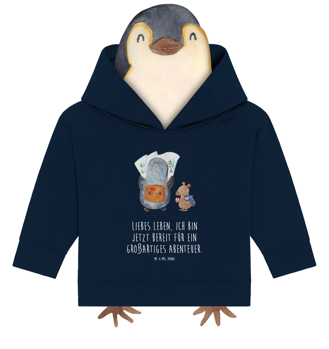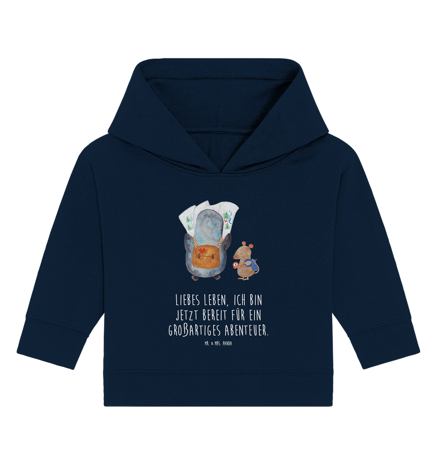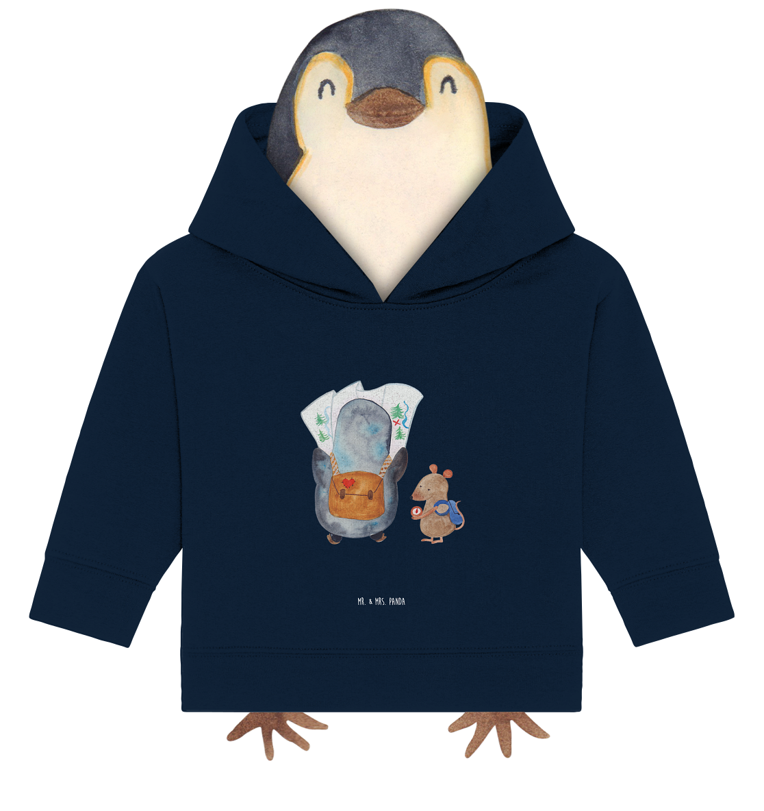 Organic Baby Hoodie Pinguin & Maus Wanderer - 12. - 18. Monat - mit Spruch - French Navy